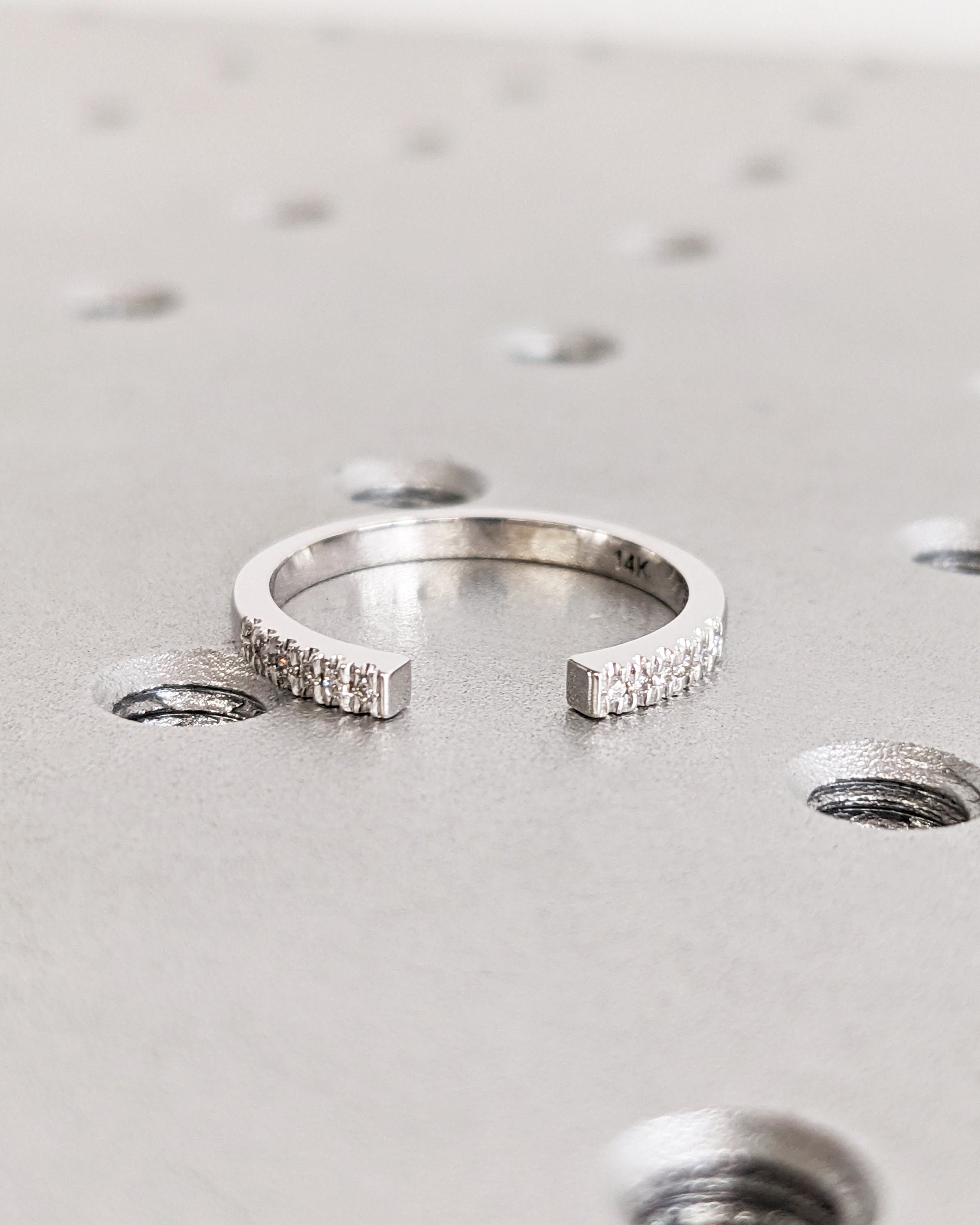 Open Gap Round Diamond Matching Engagement Ring, 14K Solid White Gold Pavé Wedding Band, Dainty Promise Ring