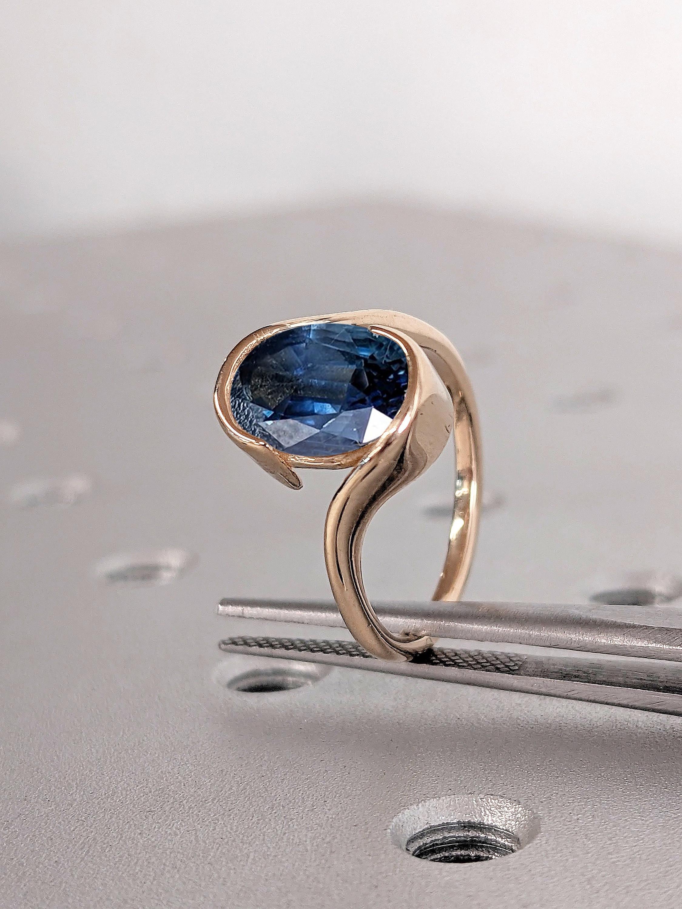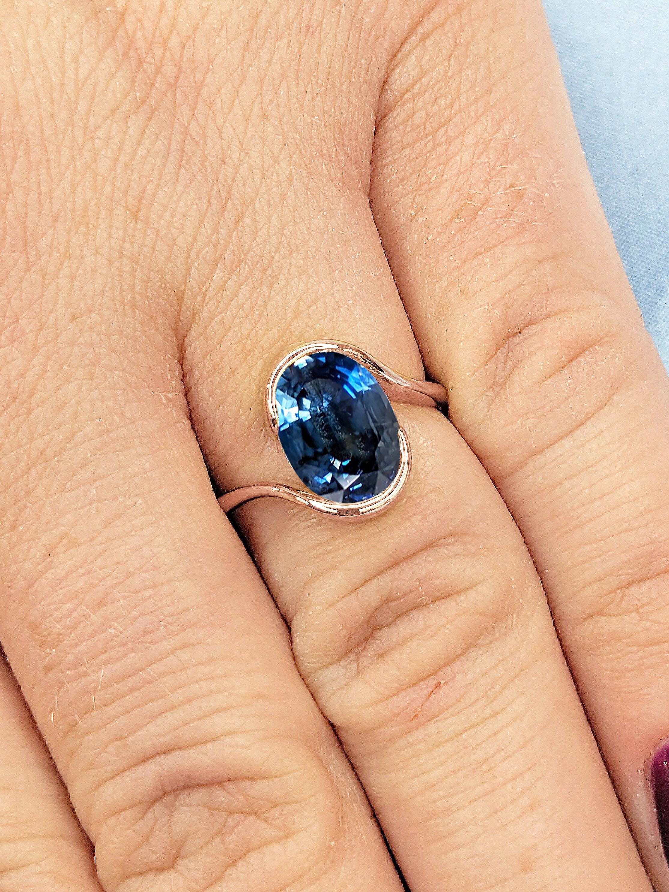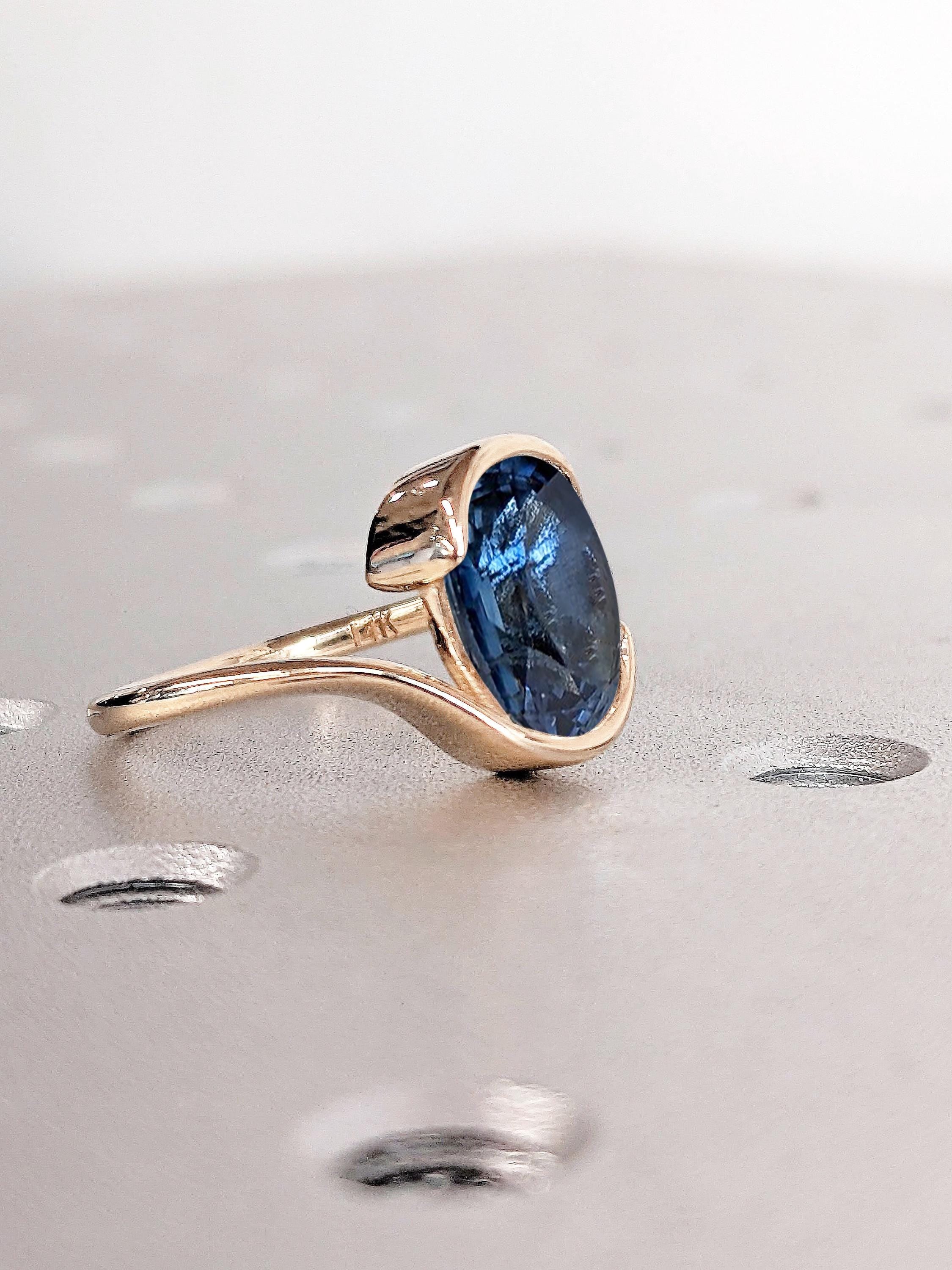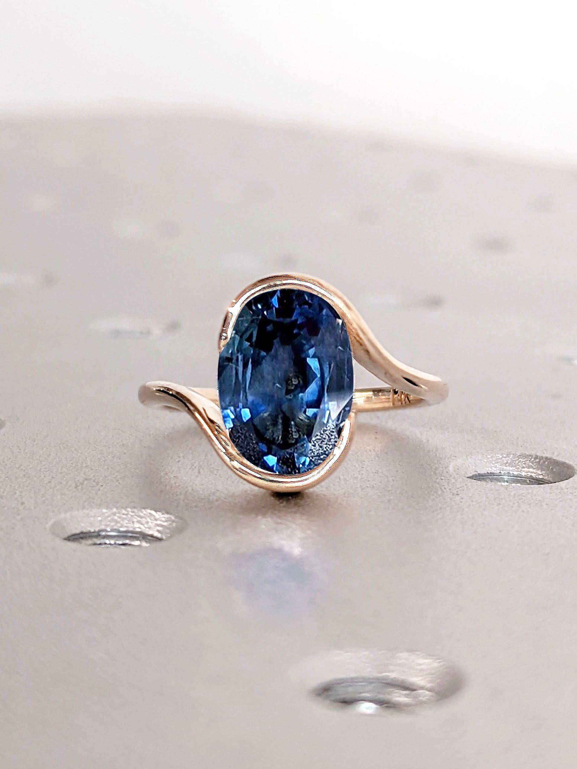 Oval Blue Sapphire Engagement Ring | 14k Rose Gold Bypass Promise Ring | Bezel set Solitaire Sapphire Ring for Women | September Birthstone