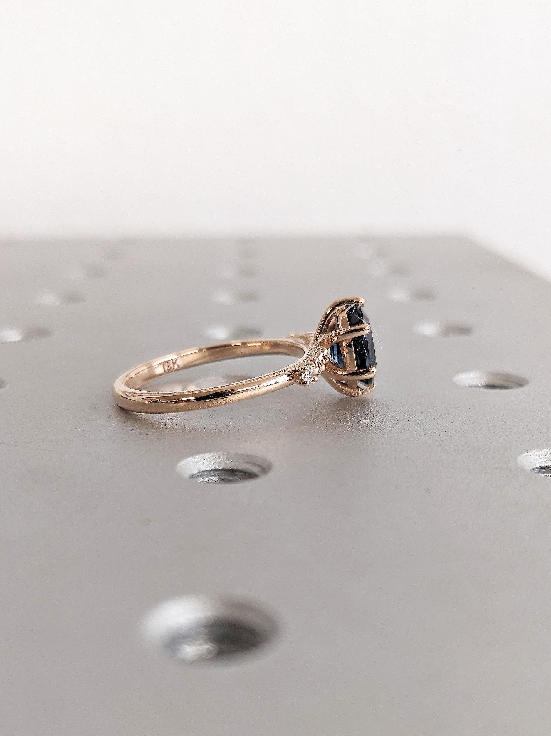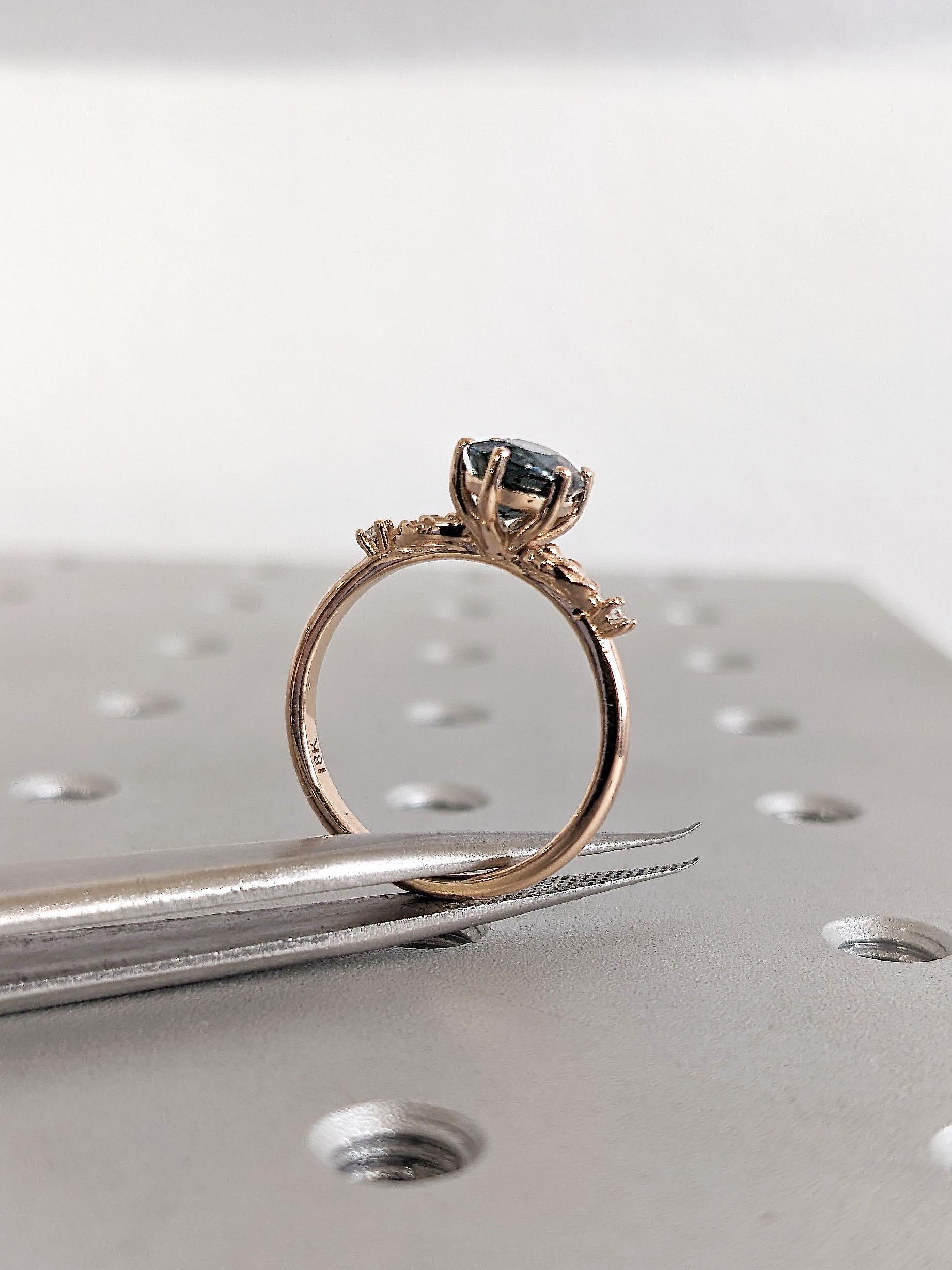 Oval cut Blue Green Sapphire and Diamond Engagement Ring | Nature Inspired Engagement Ring | 14k 18k Solid Gold Sapphire Ring Gift for Wife
