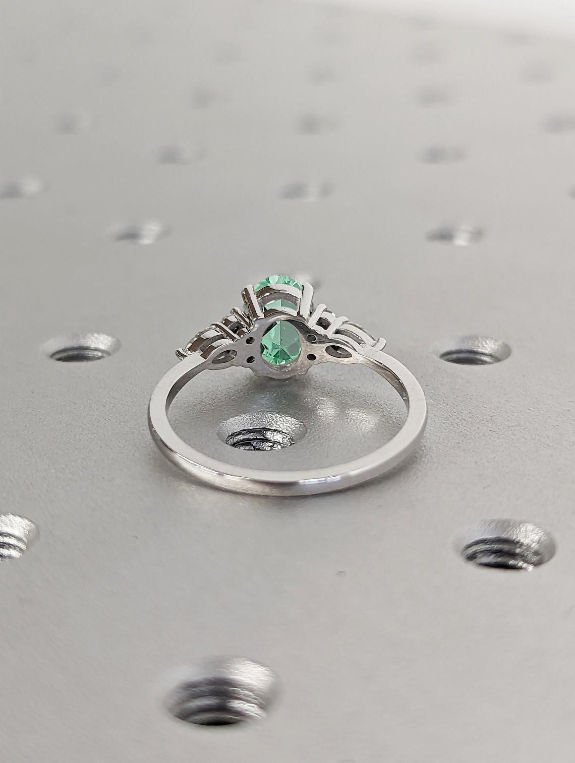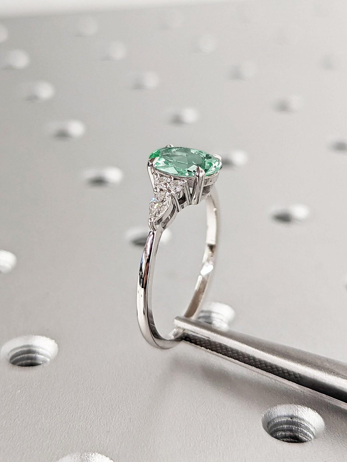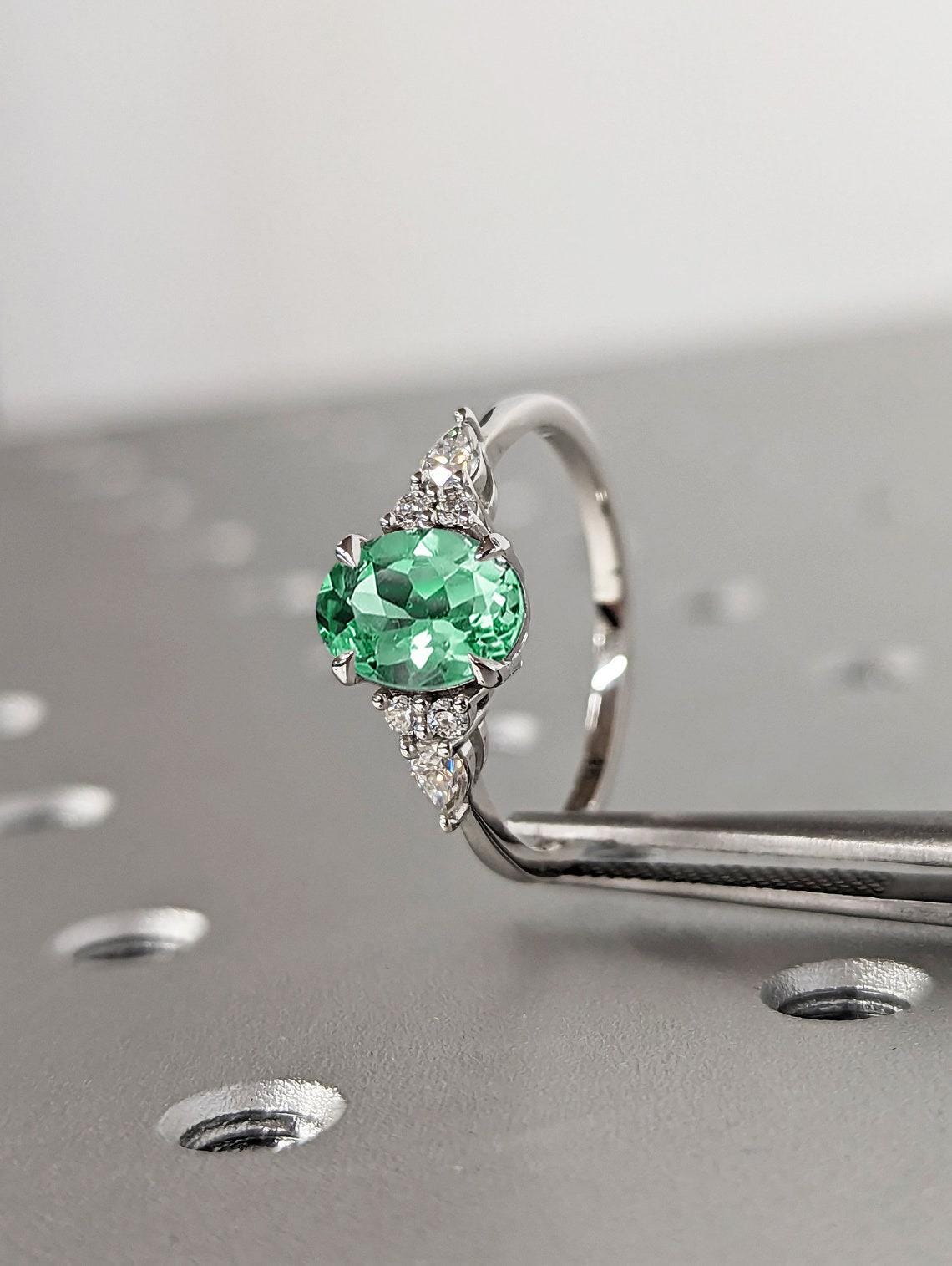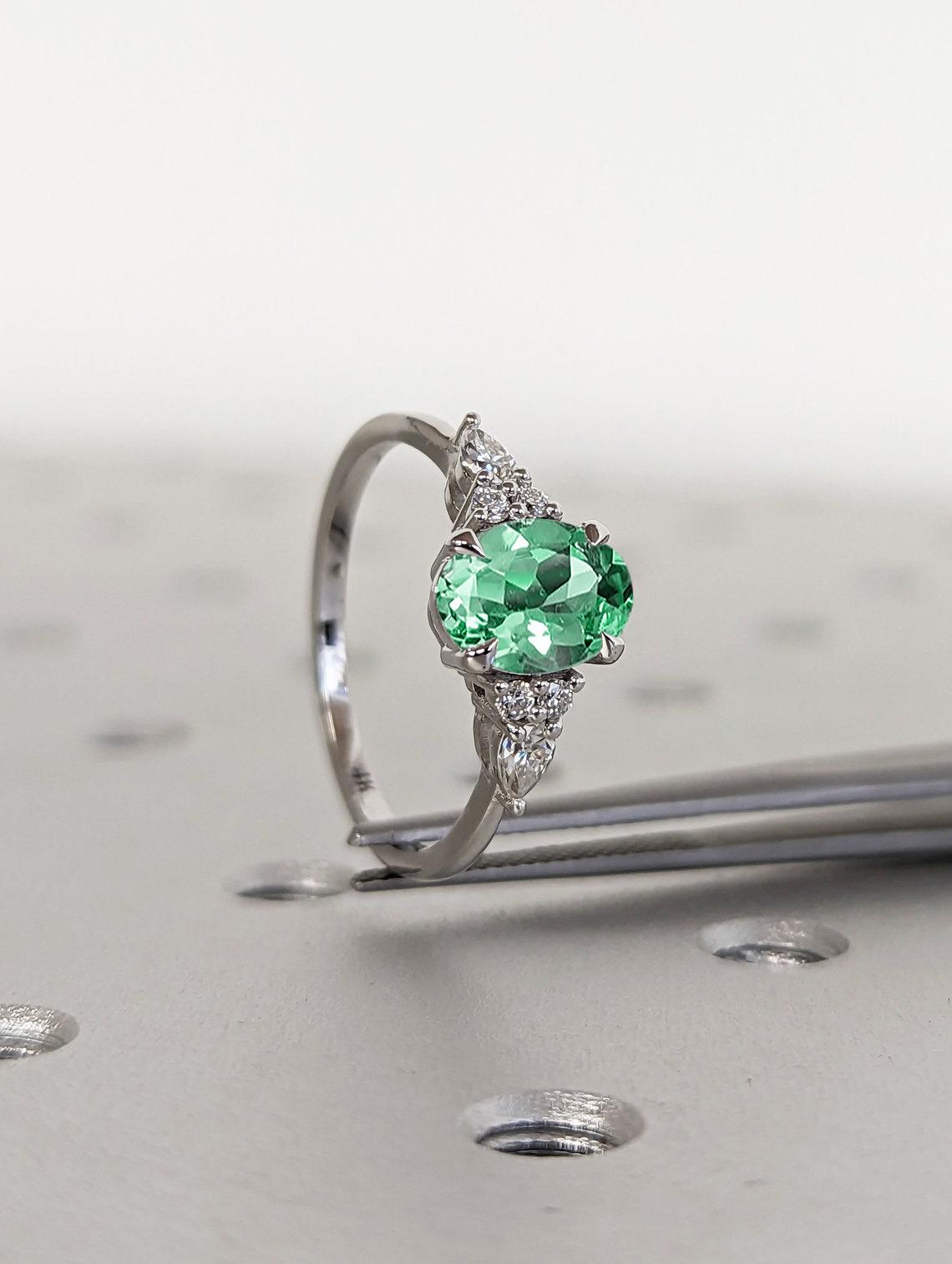 Oval Cut Green Sapphire Engagement Ring, 14k White Gold Anniversary Ring, Vintage Green Sapphire Ring, Moissanite / Lab Diamond Cluster Ring