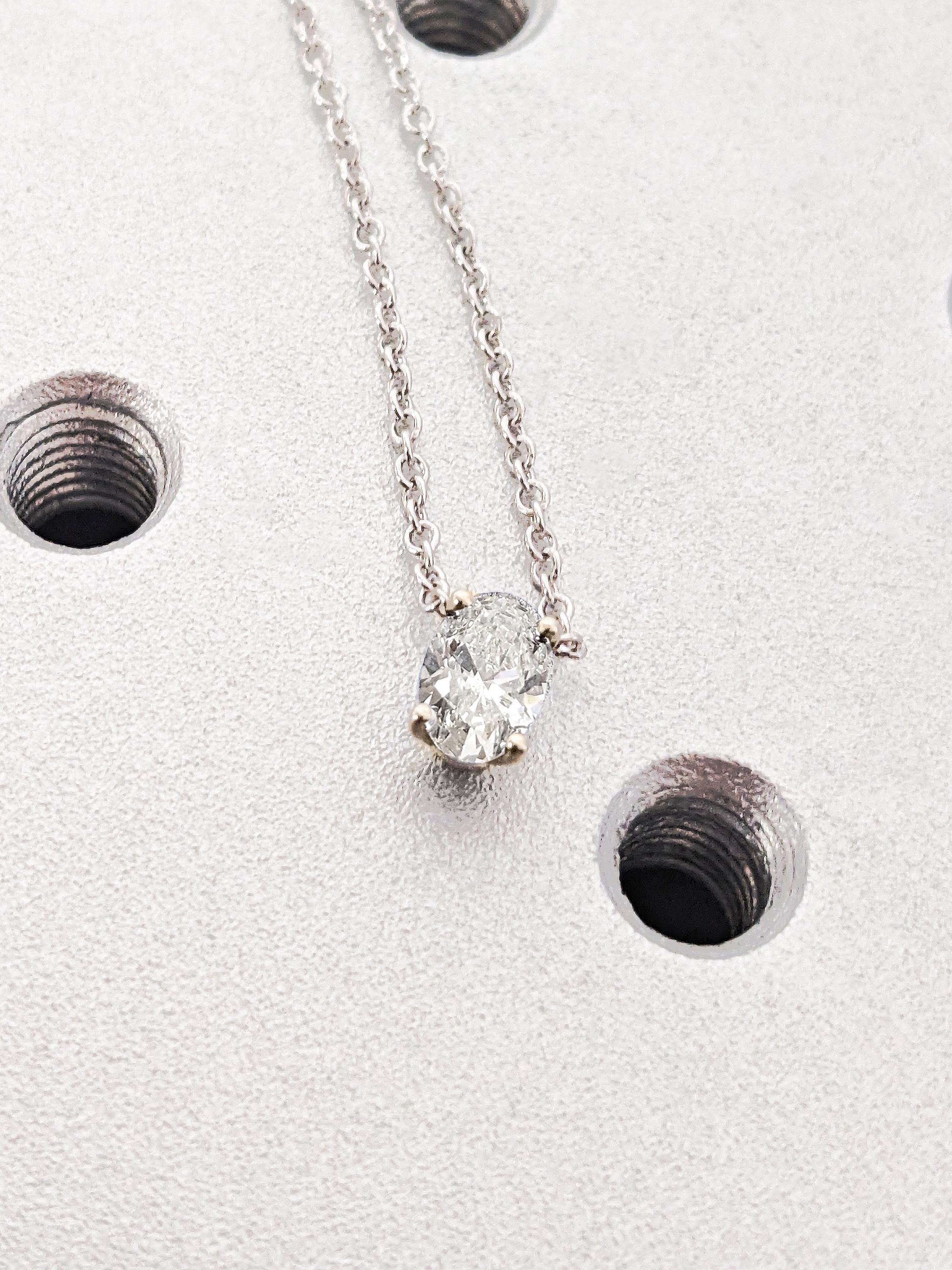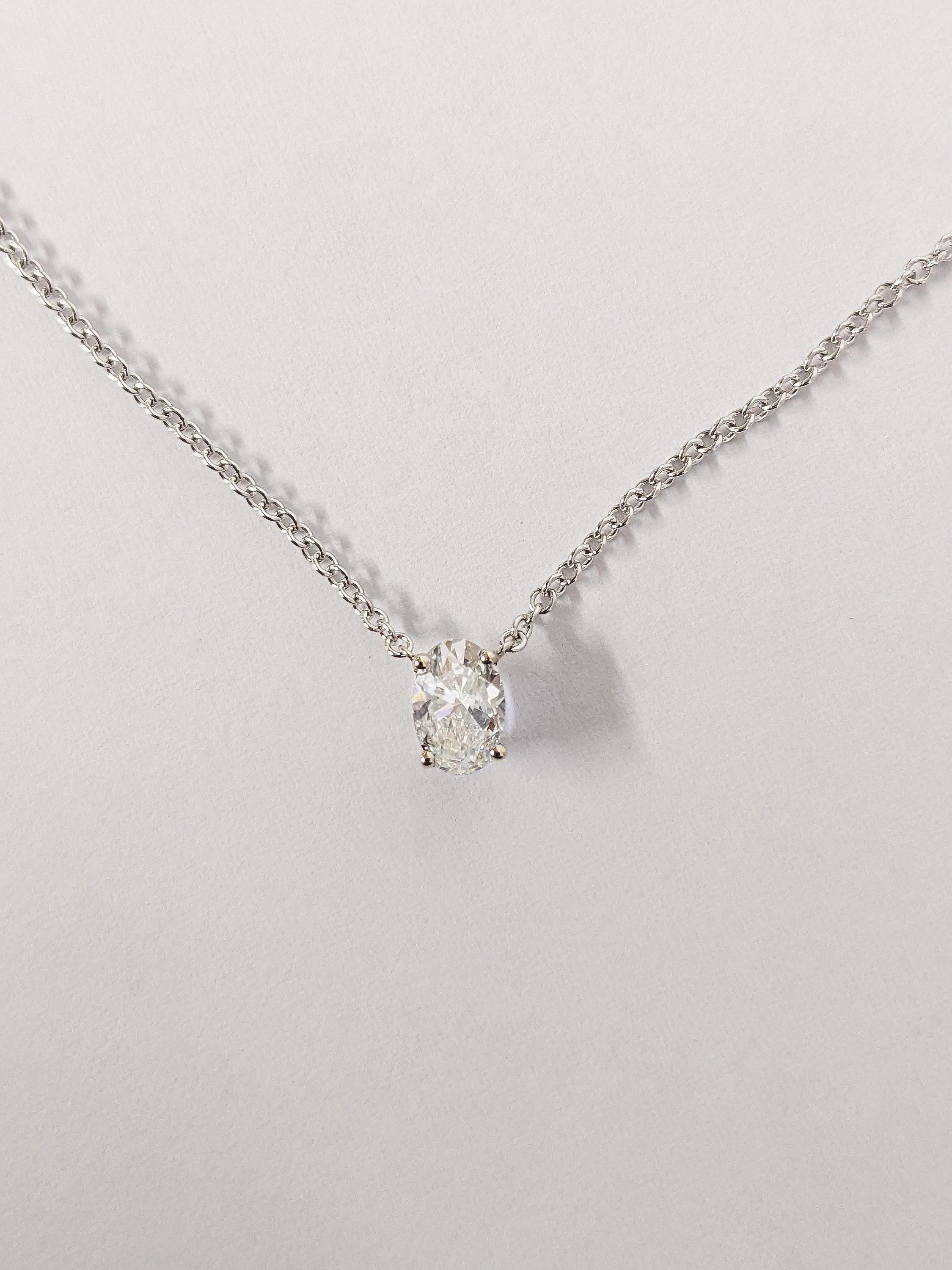 Oval Cut Lab Diamond Bridal Necklace, 14K Solid White Gold Diamond Necklace, Lab Grown Diamond Solitaire Pendant, Wedding Anniversary Gift