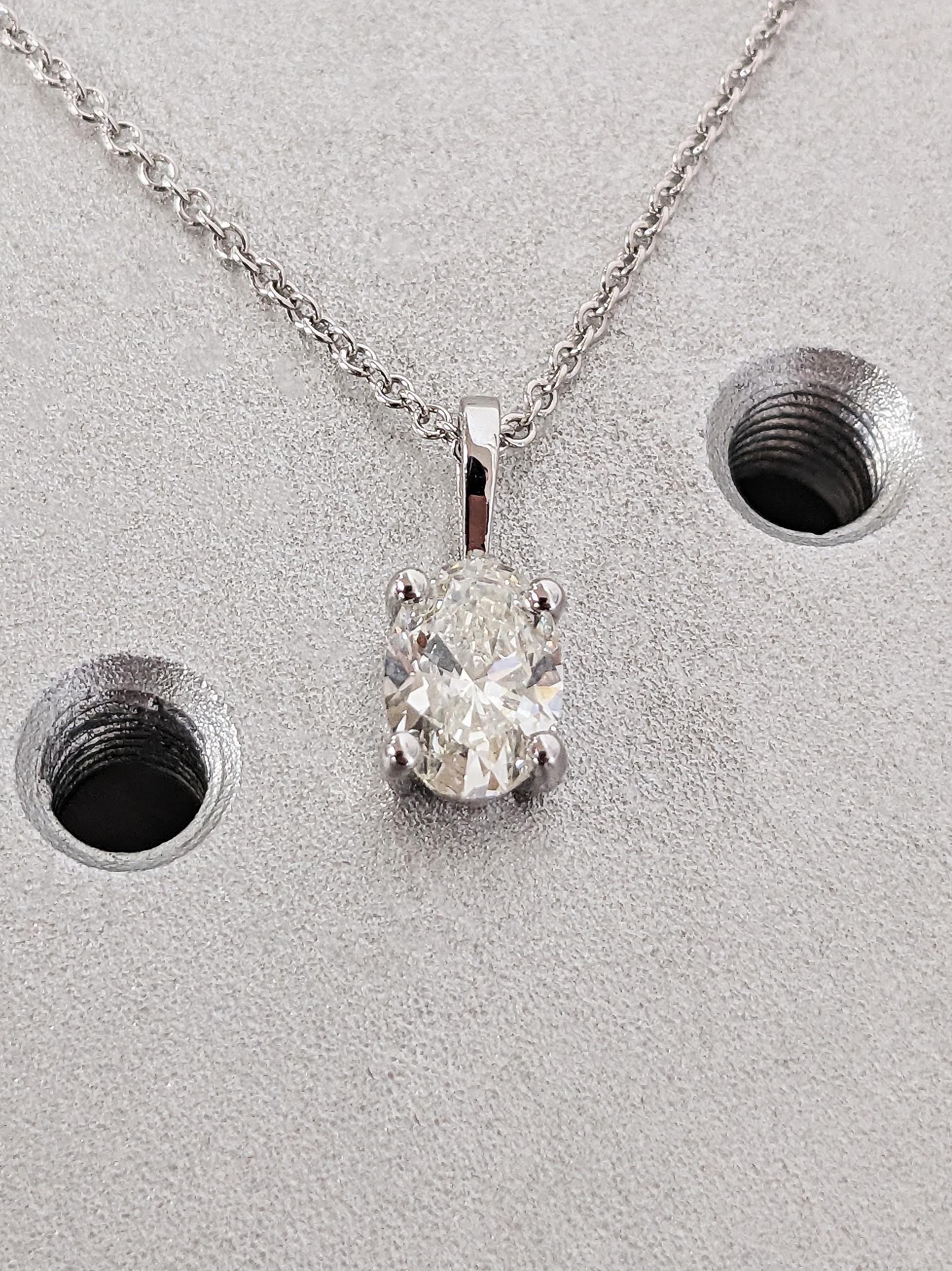 Oval Cut Lab Grown Diamond Pendant Necklace, Minimalist White Gold Solitaire Diamond, Timeless Layering Necklace For Women, 14K White Gold