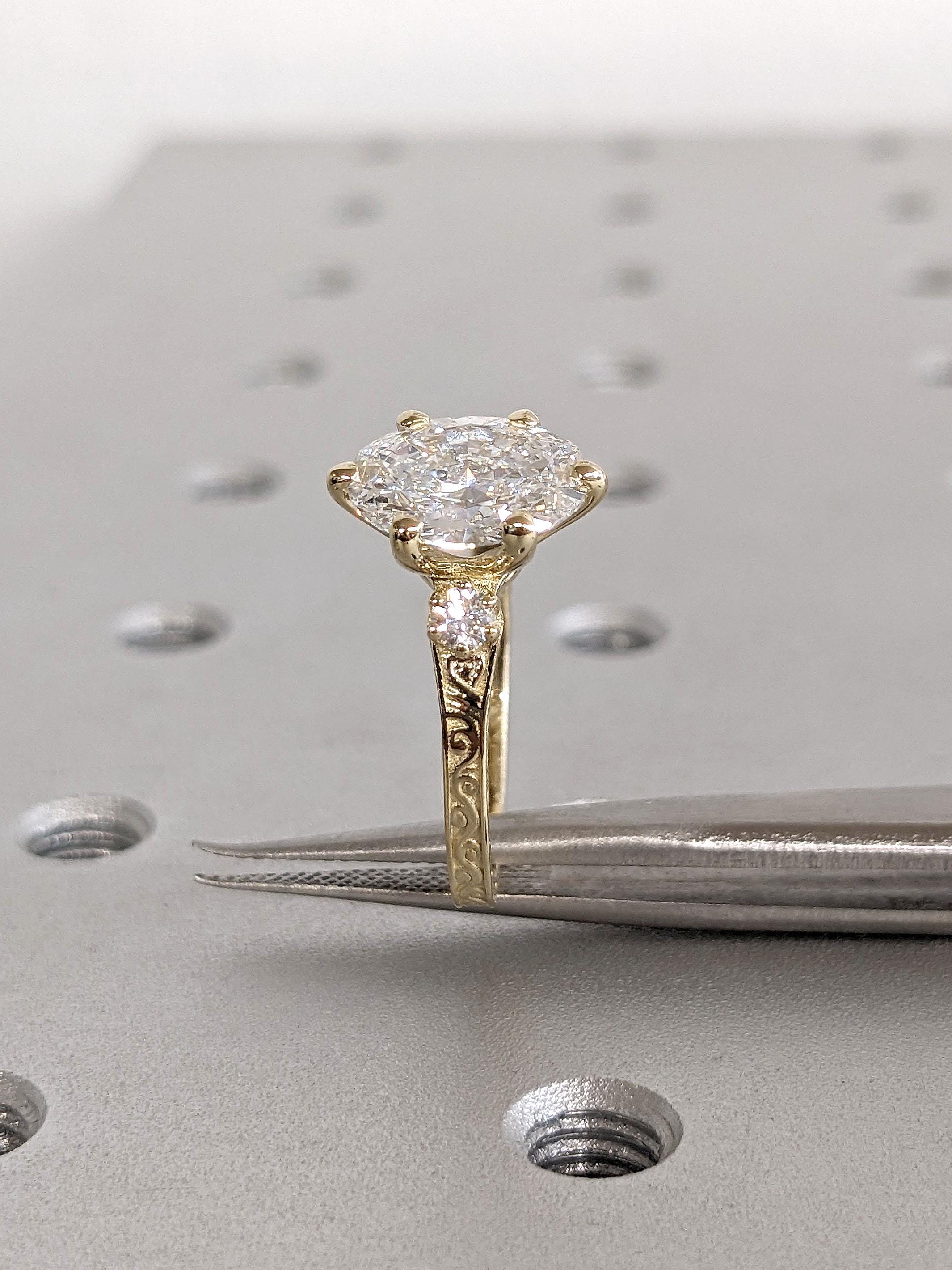 Oval cut Man Made Diamond Vintage Engagement Ring | 14k 18k Yellow Gold Past Present Future Ring Anniversary Gift for Wife