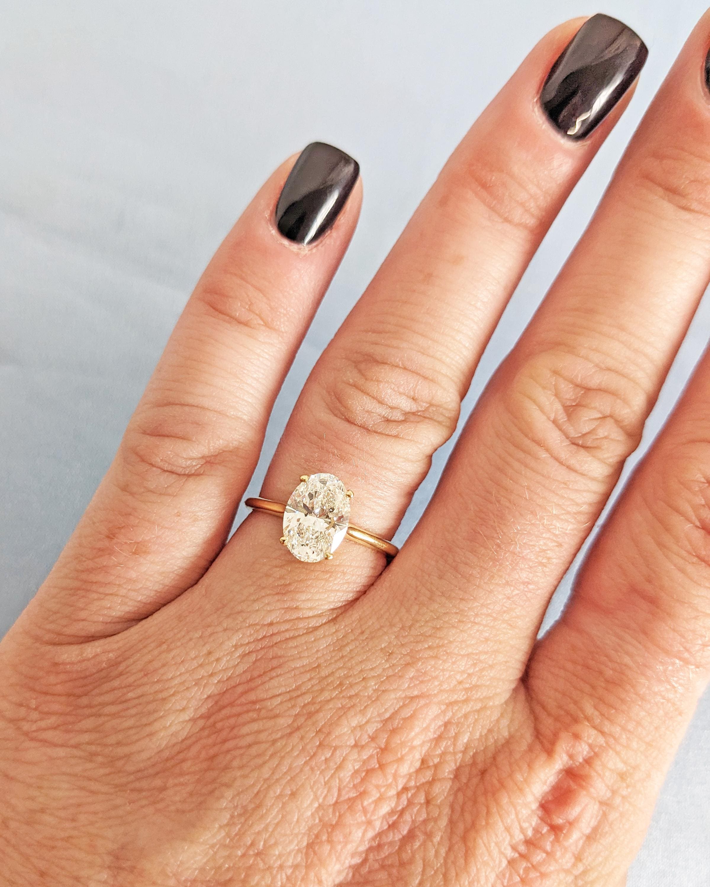 This classic oval cut engagement ring features a clean basket setting that beautifully showcases the center stone. Crafted in gold or platinum, it’s the perfect balance of minimalist design and timeless elegance. A stunning solitaire that celebrates minimalist beauty with a touch of luxury.