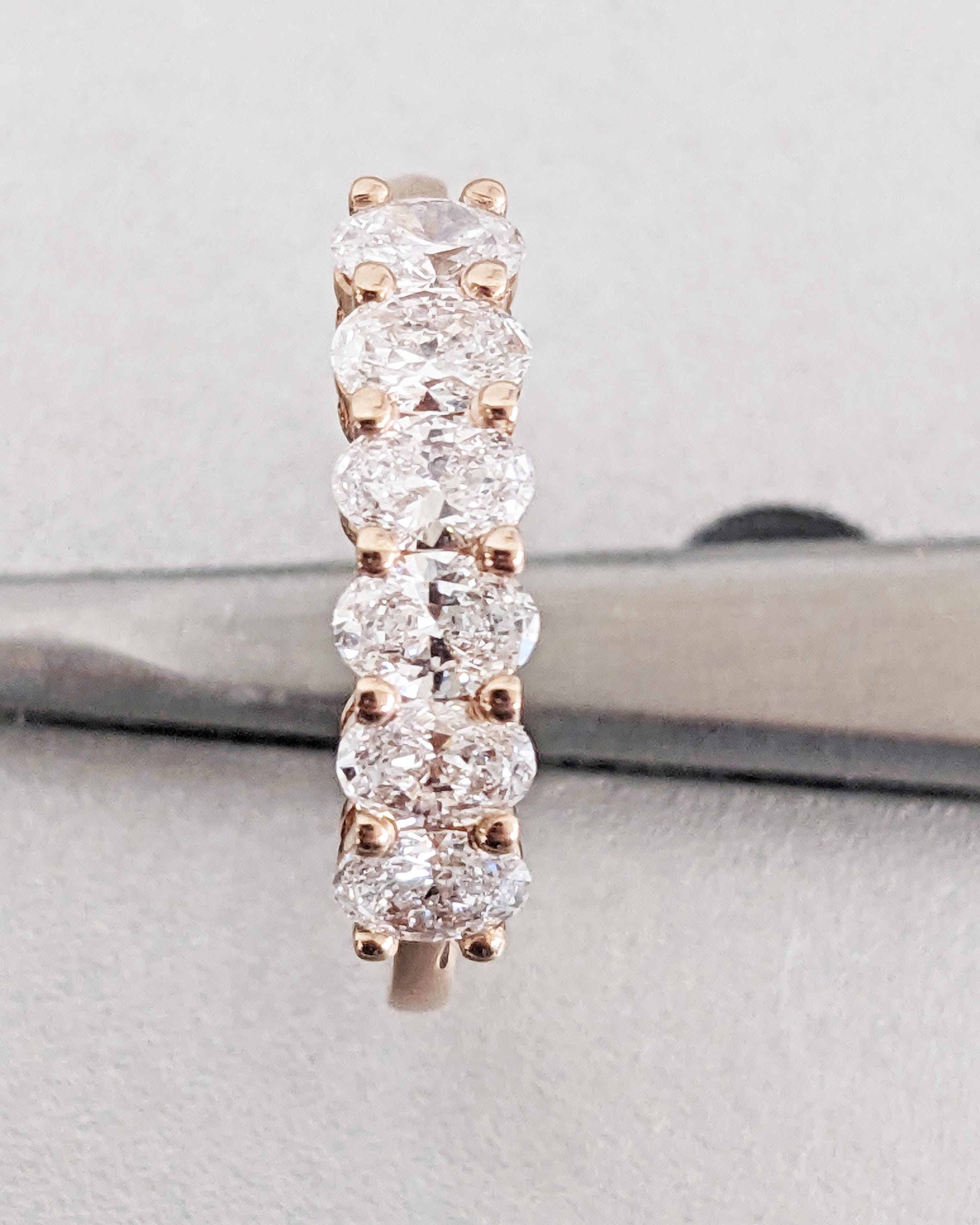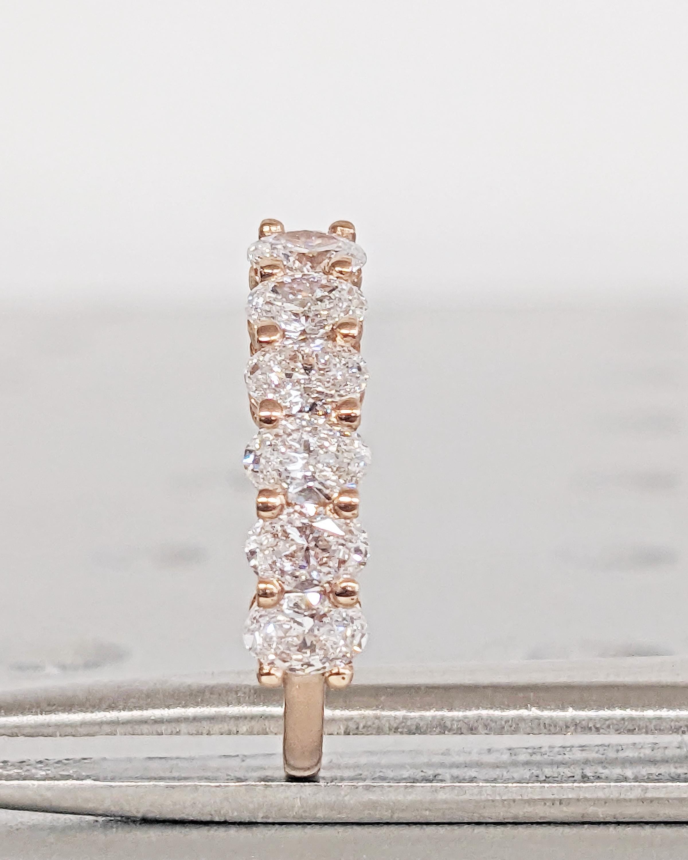 Oval Cut Wedding Ring | Six Stone Oval Lab Grown Diamond Half Eternity Band, 14k Rose Gold | Conflict Free Diamond Anniversary Ring for Wife