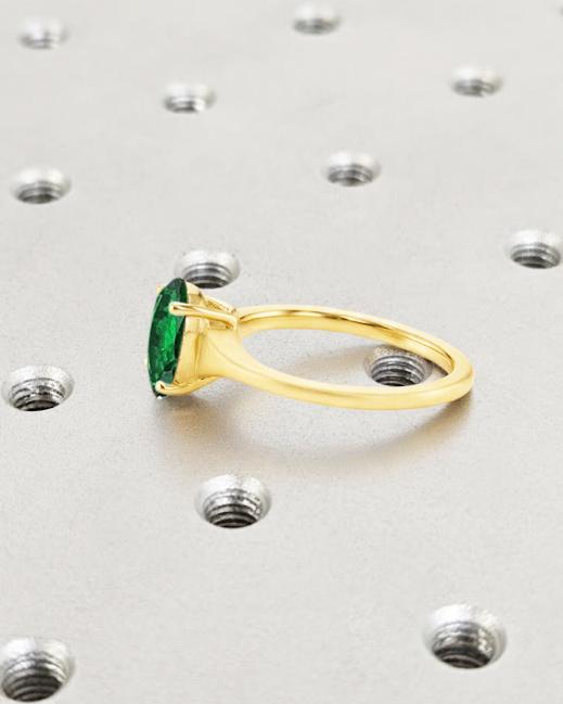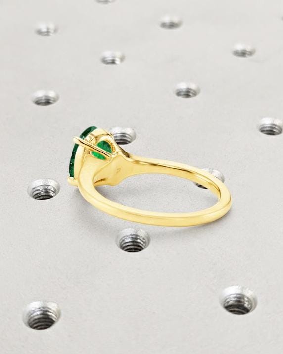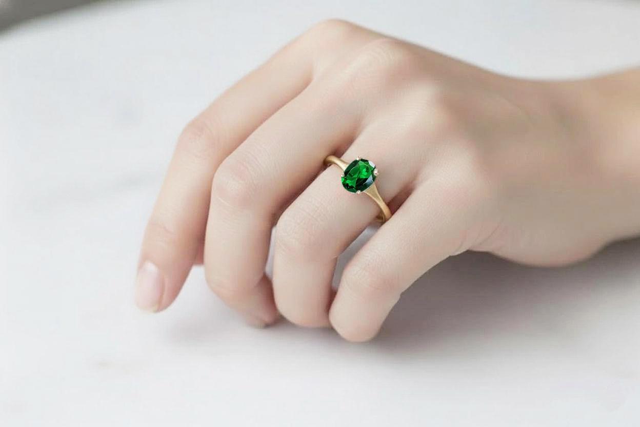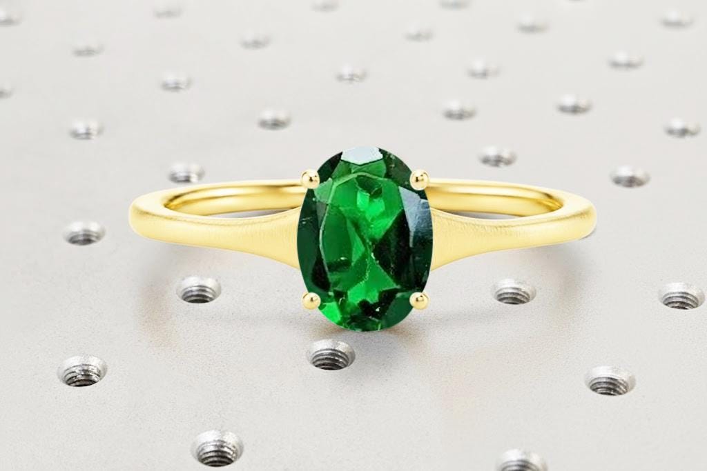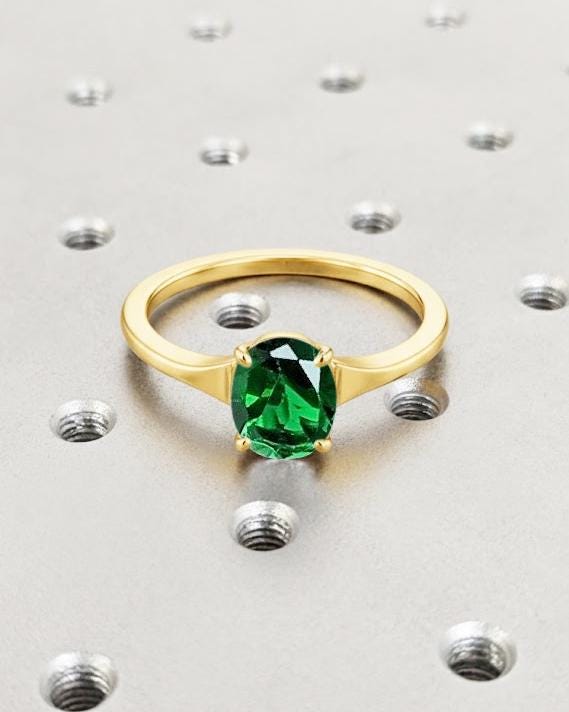 Oval Emerald Ring | Solitaire Lab Emerald Engagement Ring | Solid Gold Green Gemstone Ring | May Birthstone Promise Ring Gift | Tapered Ring