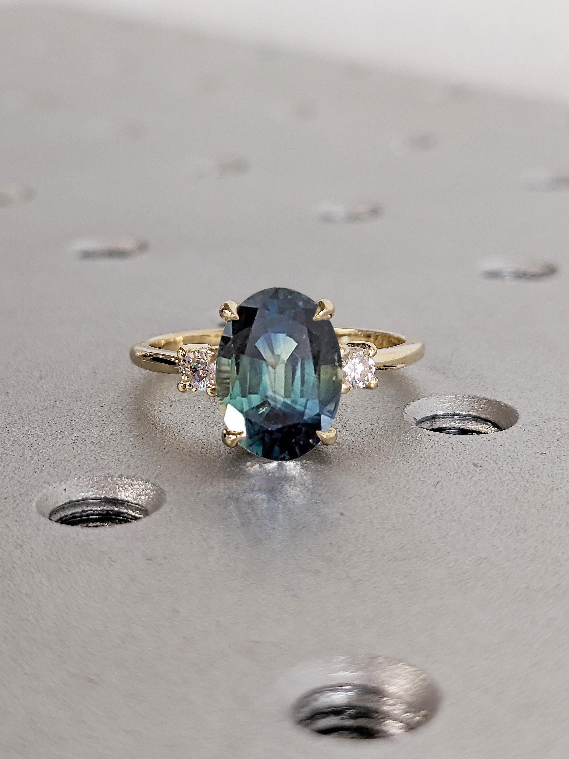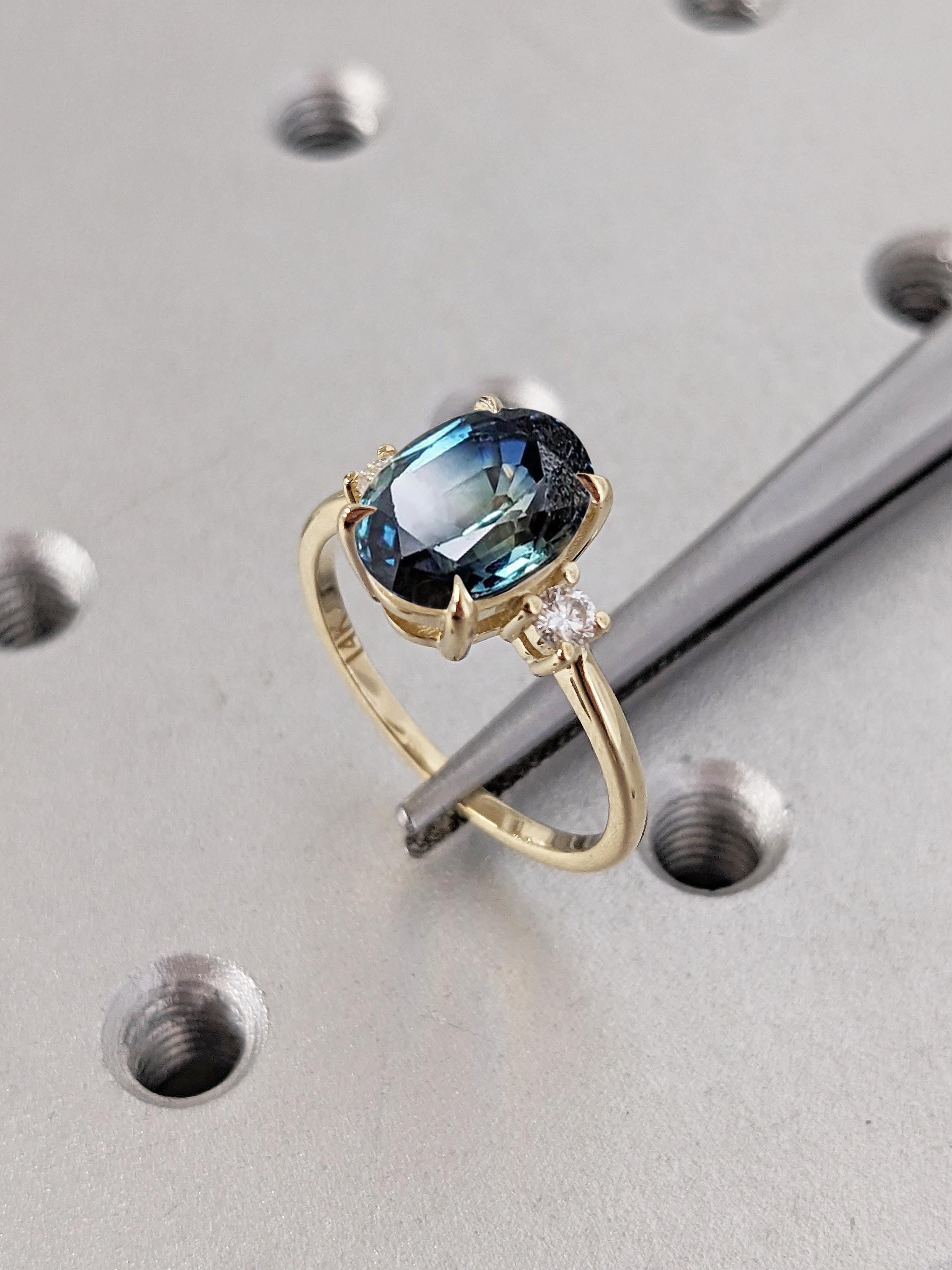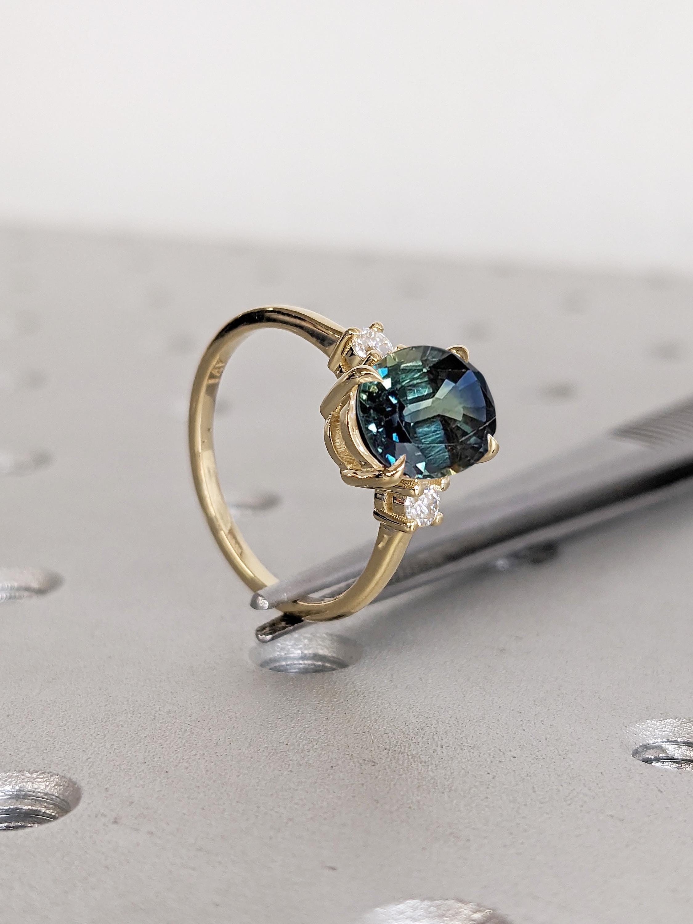 Oval Engagement Ring | 14k Solid Gold Green Blue Sapphire Ring | One of a Kind Montana Sapphire Statement Rings for Women | Anniversary Gift