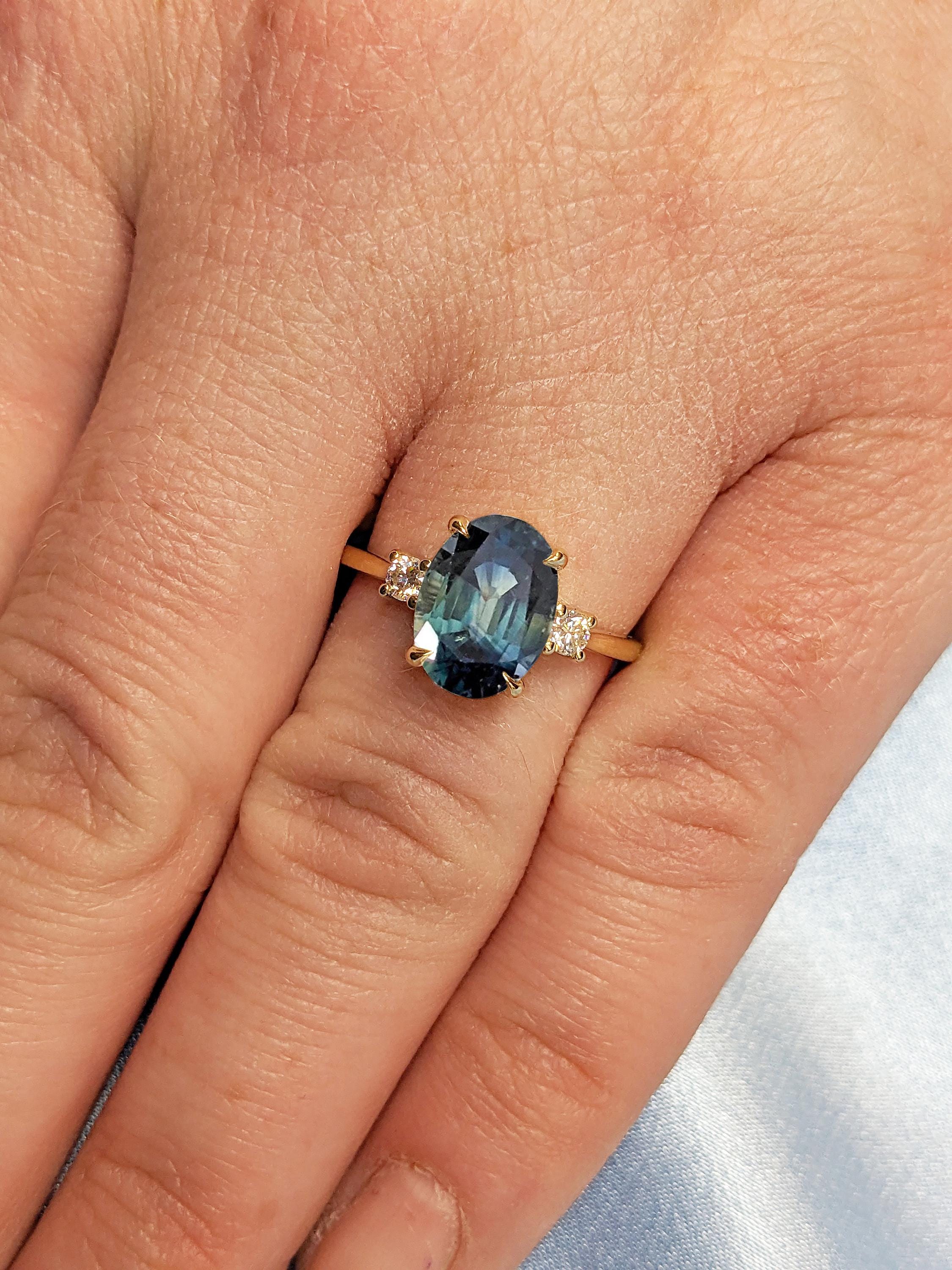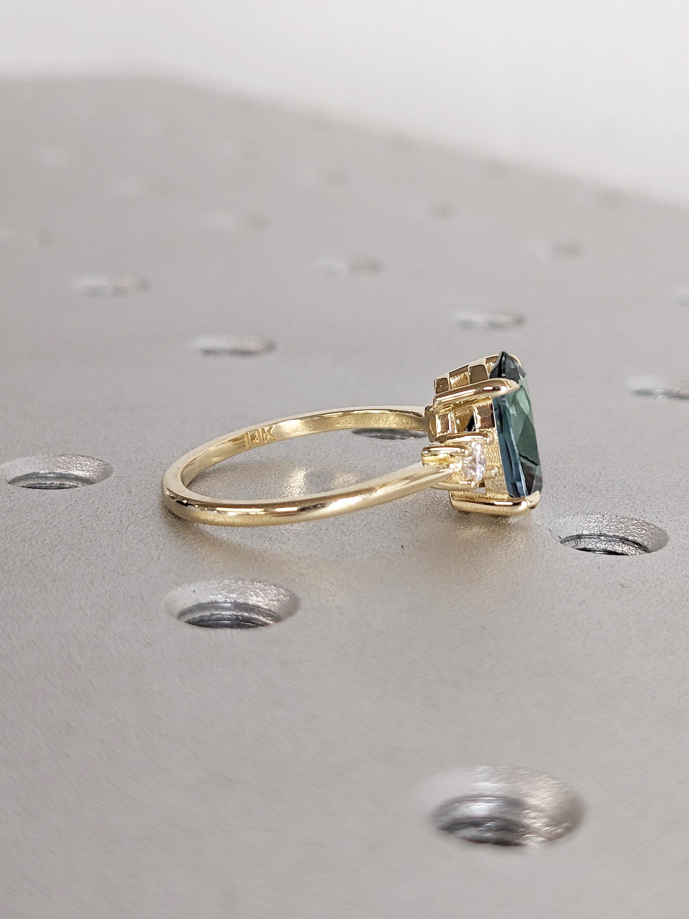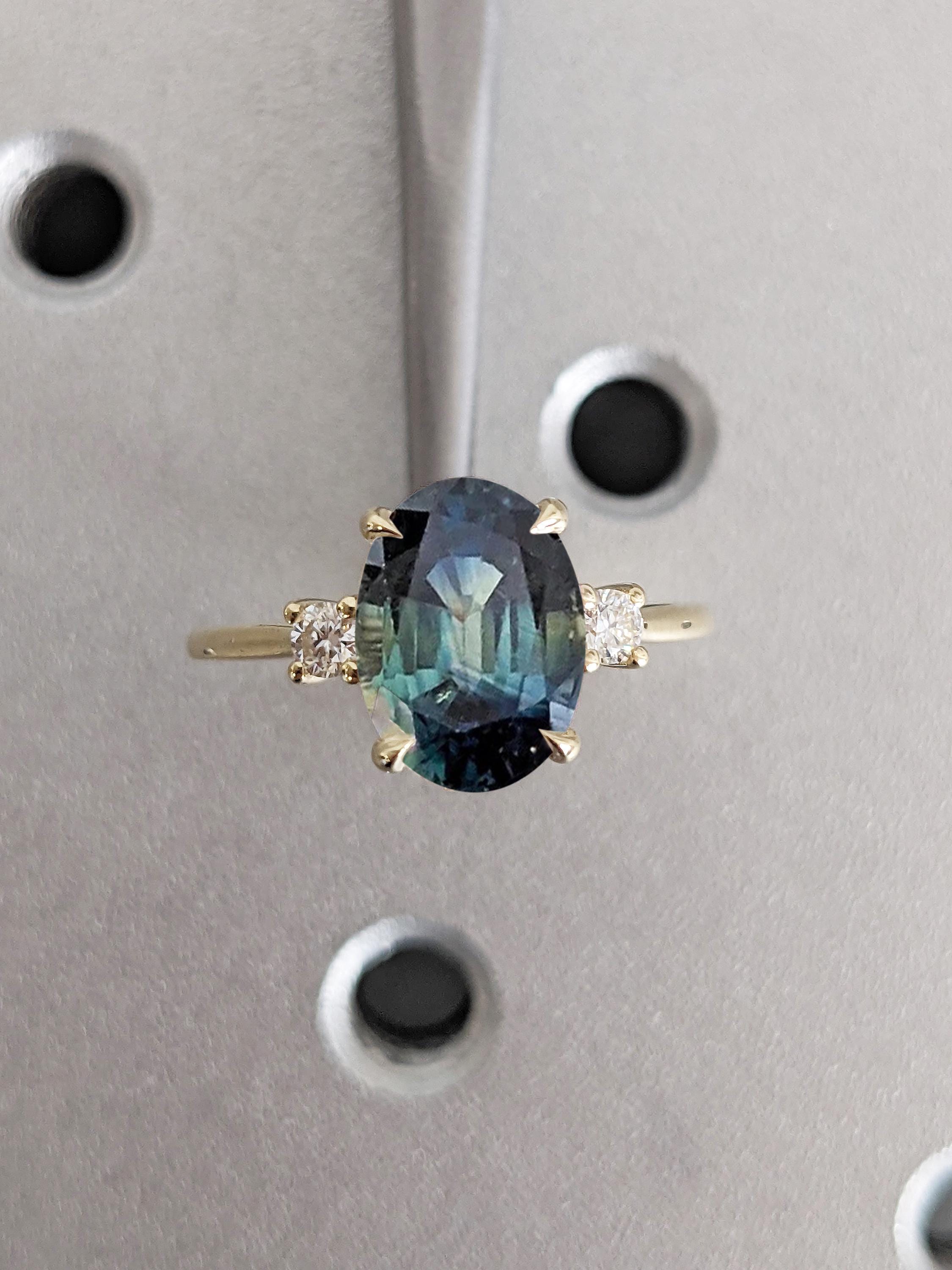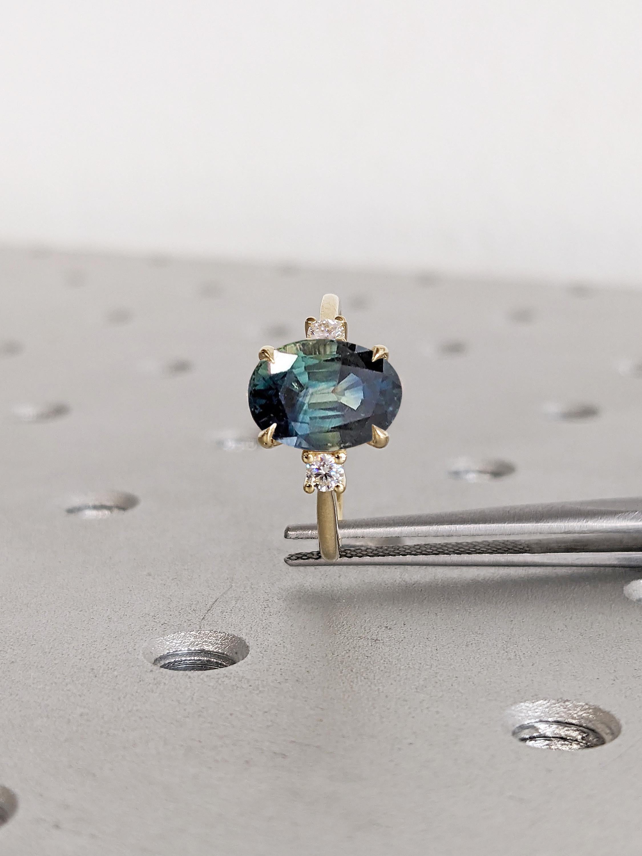 Oval Engagement Ring | 14k Solid Gold Green Blue Sapphire Ring | One of a Kind Montana Sapphire Statement Rings for Women | Anniversary Gift