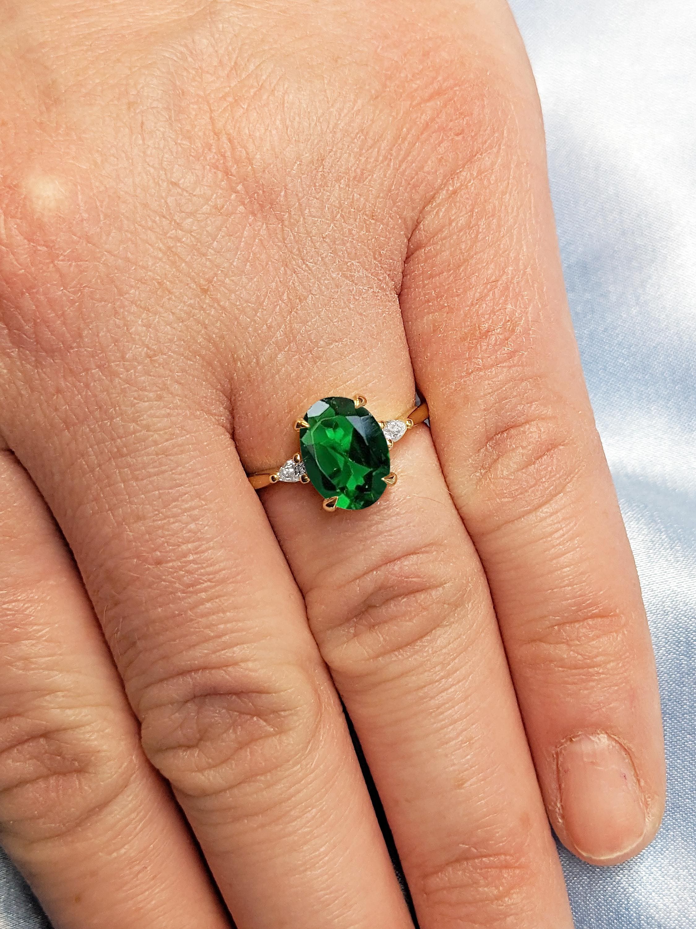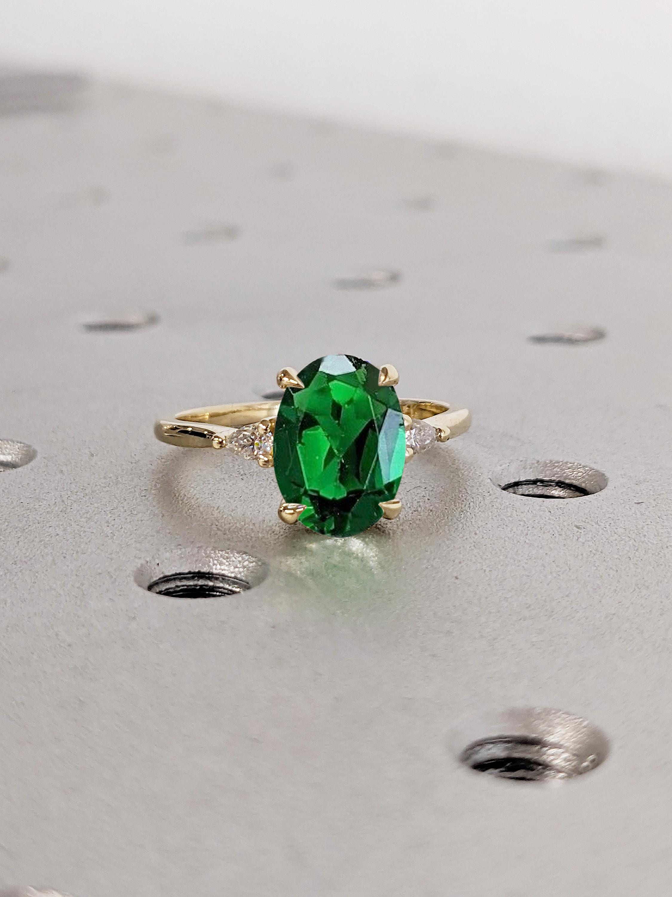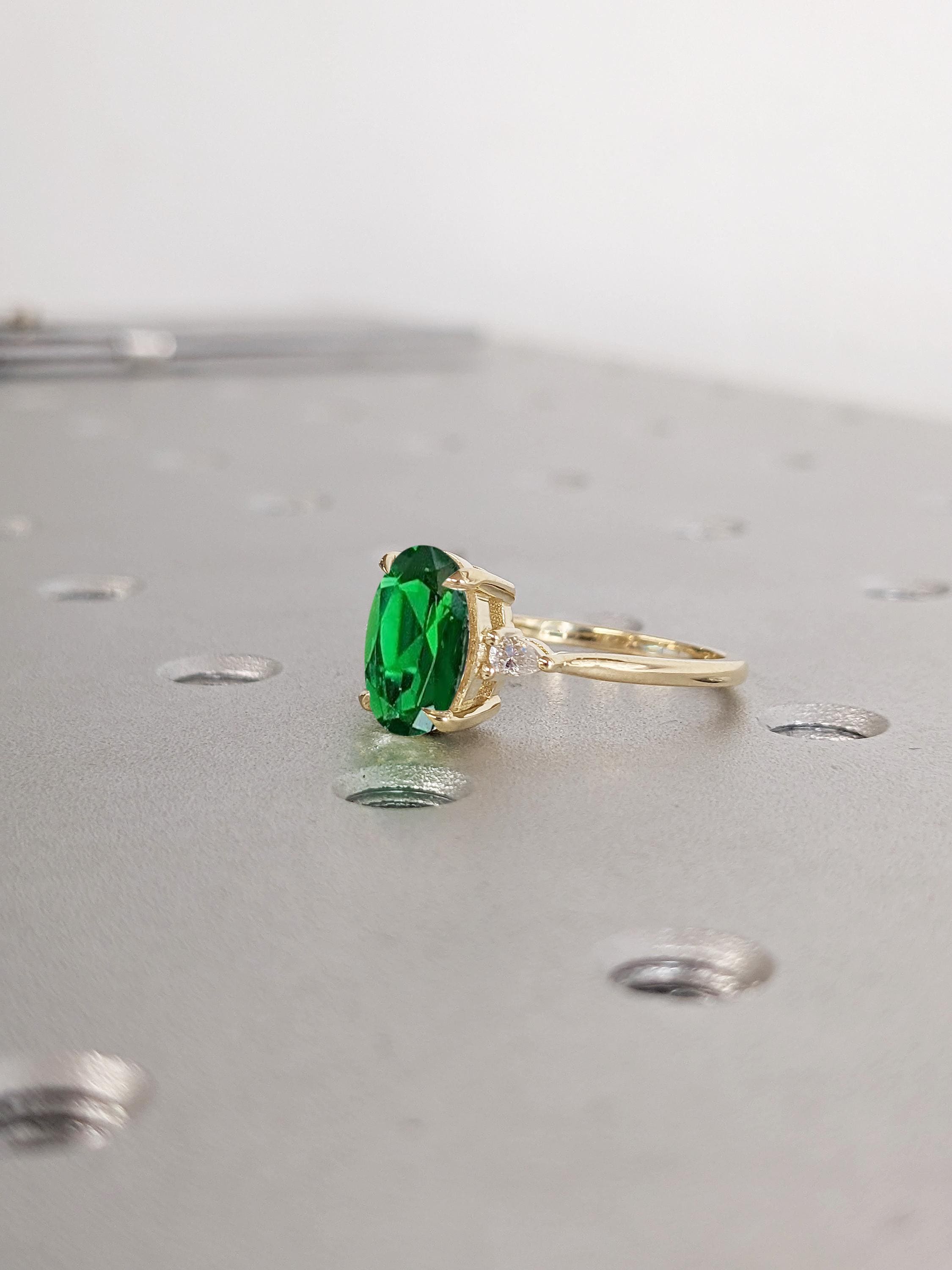 Oval Engagement Ring, Lab Created Emerald Ring, 14k Gold Wedding Anniversary Ring, Dainty Emerald Ring, Birthday Gift, Personalized Ring
