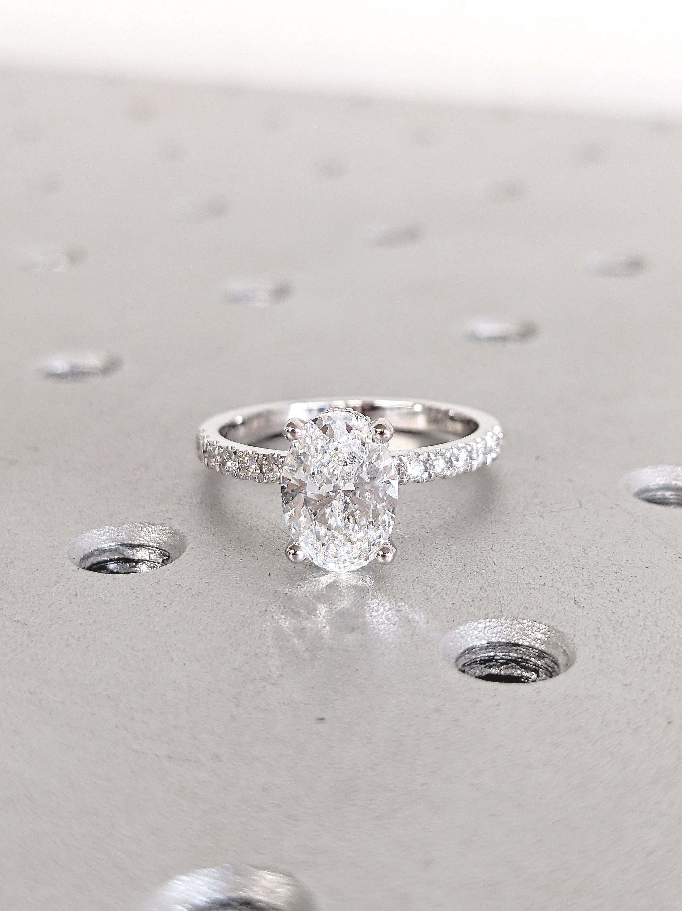 Oval Engagement Ring | Moissanite Rings for Women | Half Eternity Ring | 14k Gold Engagement Ring | Hidden Halo Ring | Unique Statement Ring
