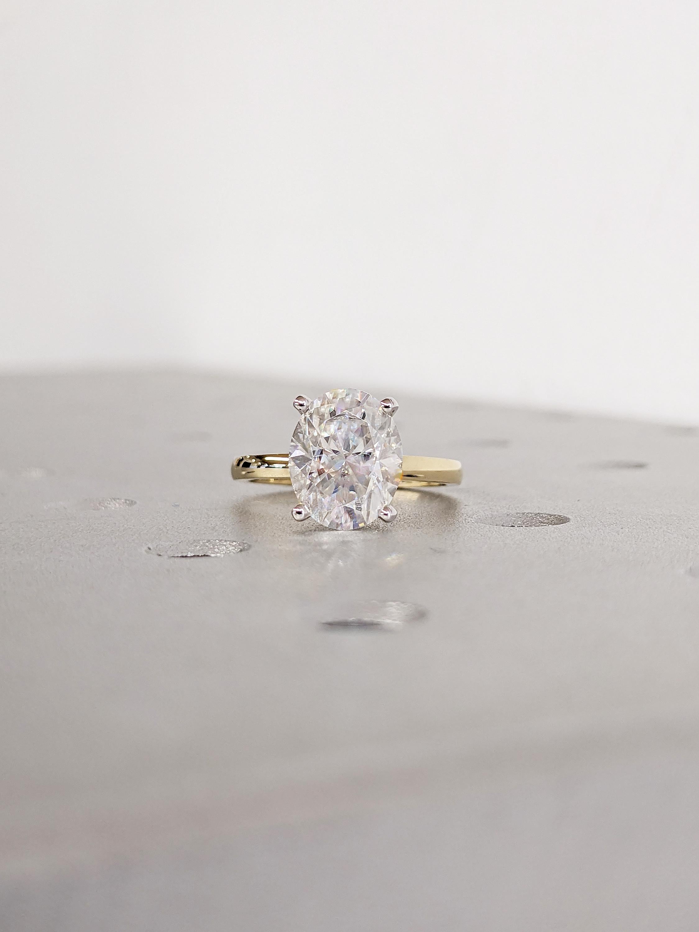 Oval Engagement Ring, Solitaire Moissanite Ring, Two Tone 14k Gold Ring, Unique Anniversary Ring, Statement Rings for Women, Proposal Ring