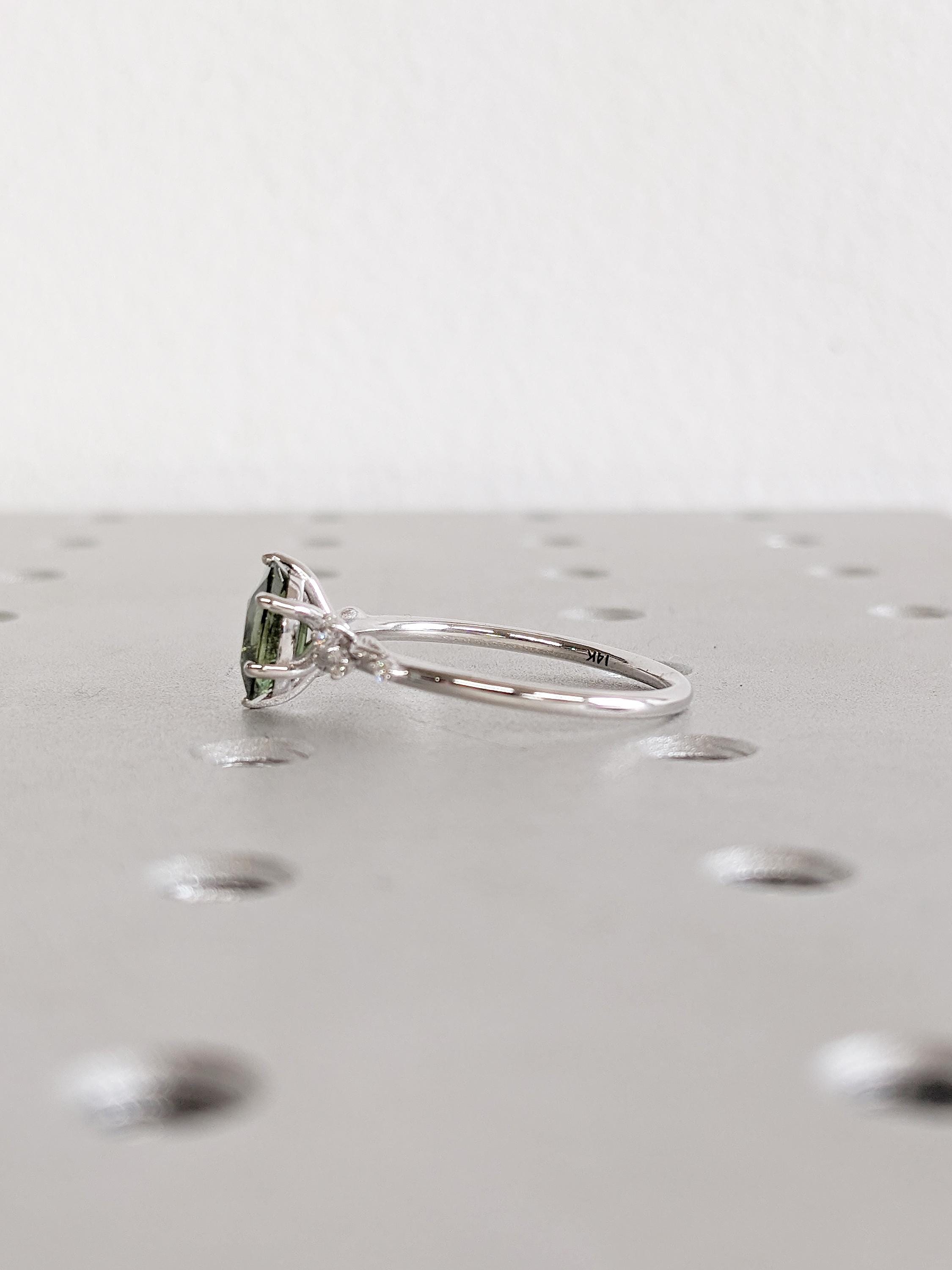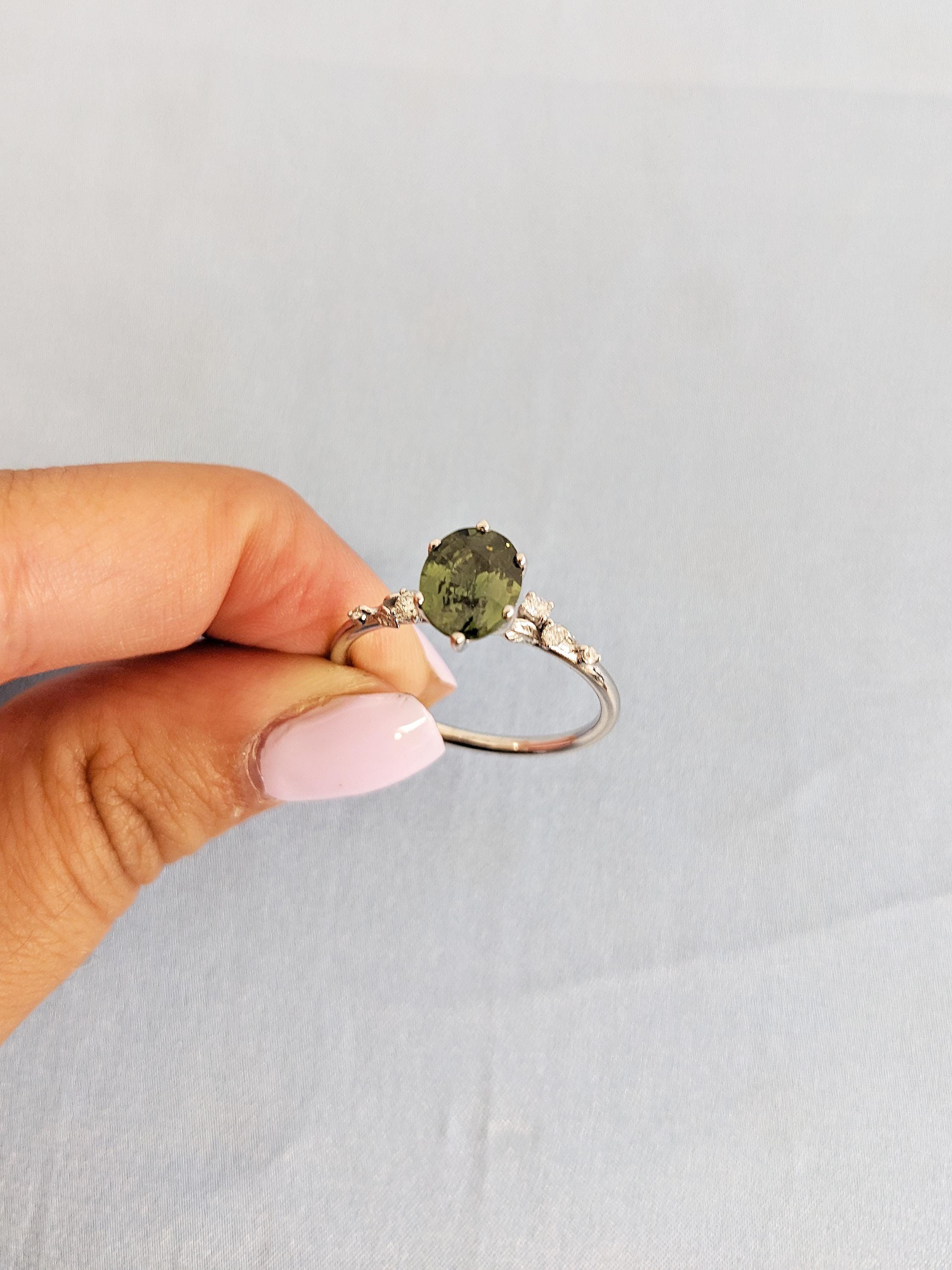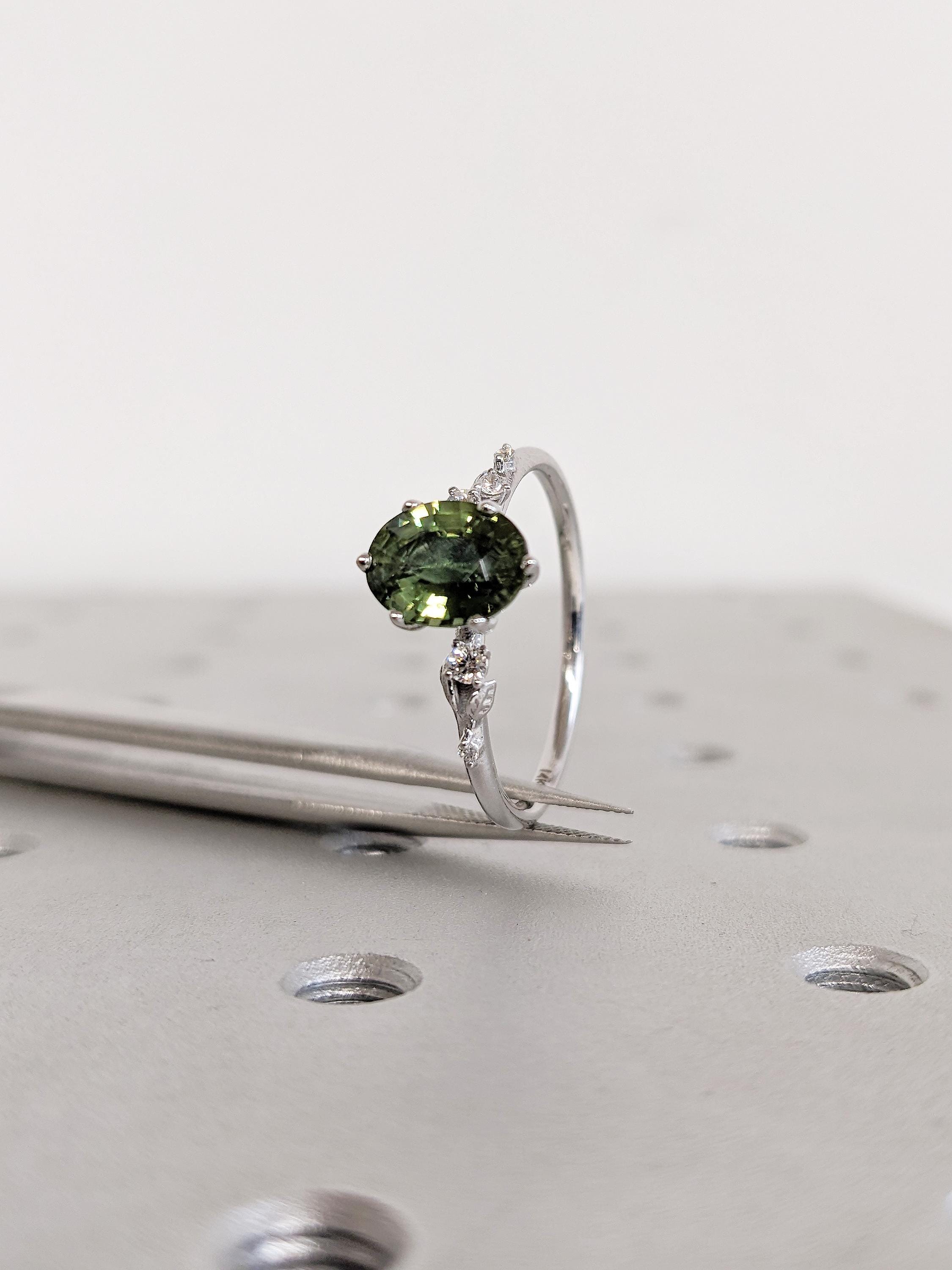 Oval Green Sapphire Ring, 14k White Gold Engagement Ring, Nature Inspired Wedding Ring, Gemstone Ring