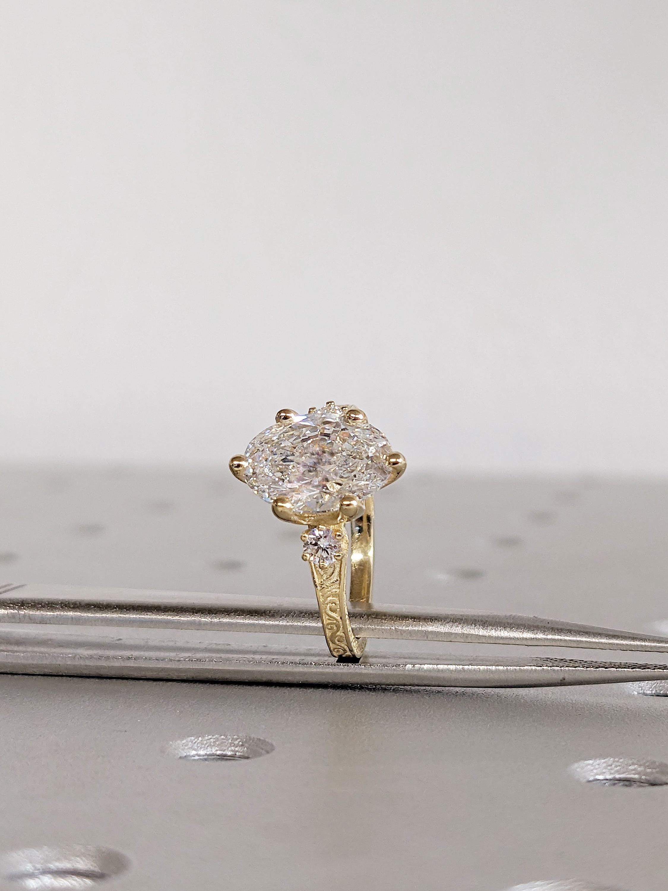 Oval Lab Created Diamond Engagement Ring, 14K Yellow Gold Round Side Diamond Wedding Ring