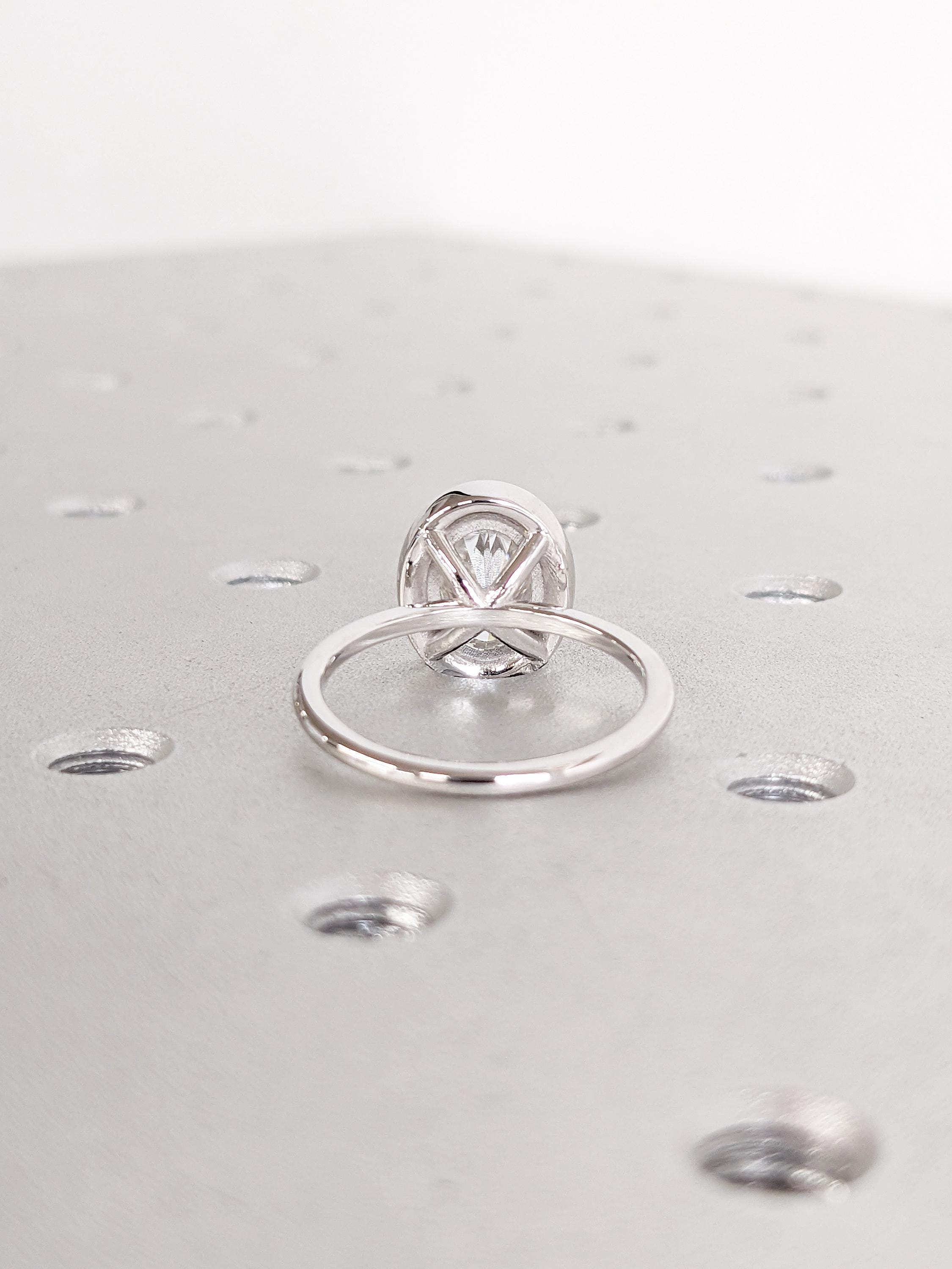 Oval Lab Created Diamond Ring, Dainty 14k White Gold Promise Ring for Her, Art Deco Wedding Rings for Women, Curved Crown Lab Diamond Ring