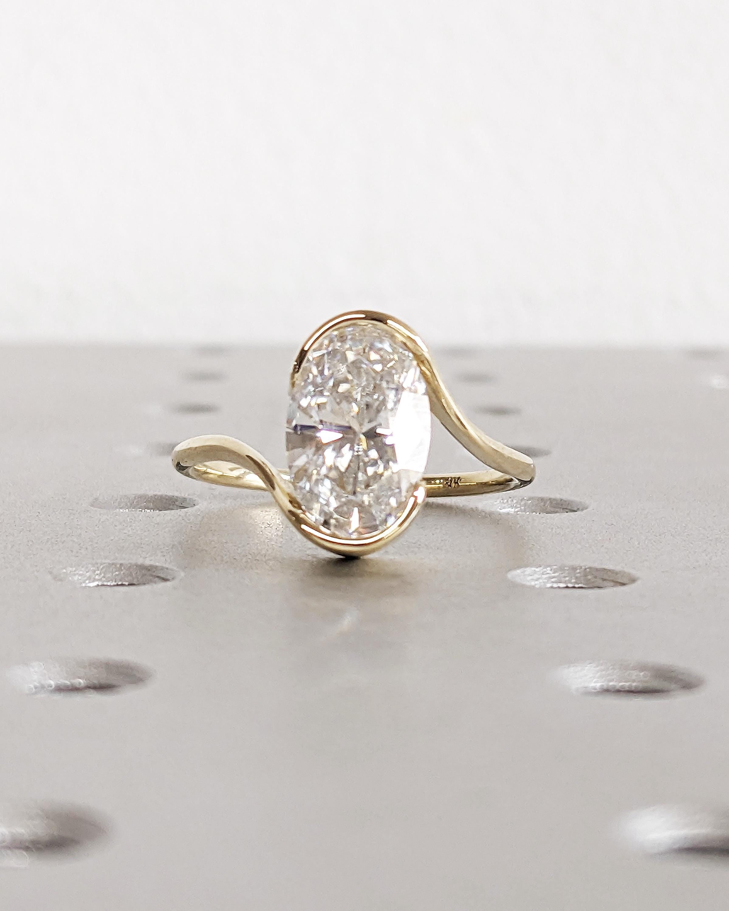 Oval Lab Made Diamond Engagement Ring - Certified IGI Lab Grown Diamond Ring - 14K Yellow Gold Bypass Tension Ring - Large Stone Bezel Ring