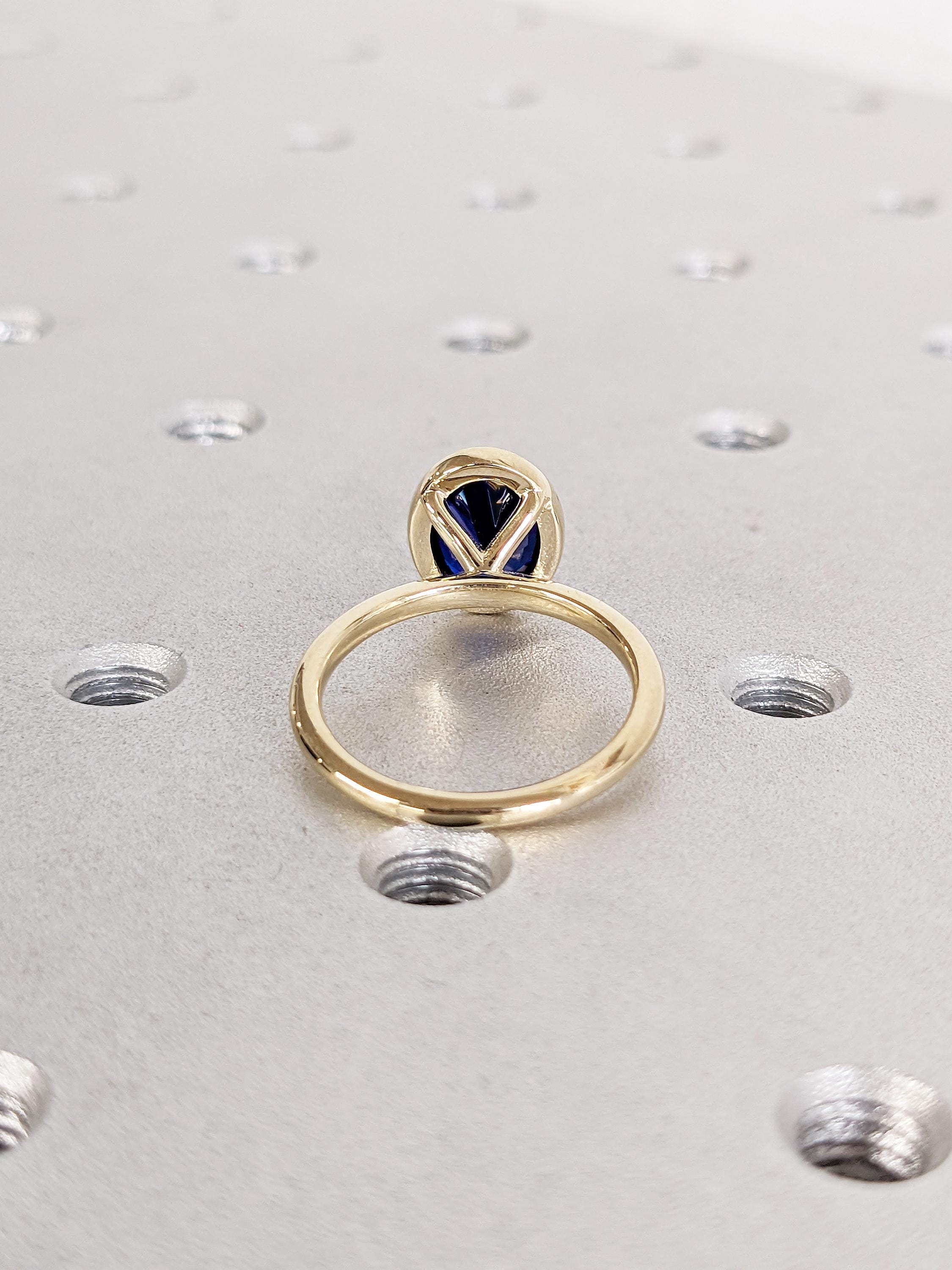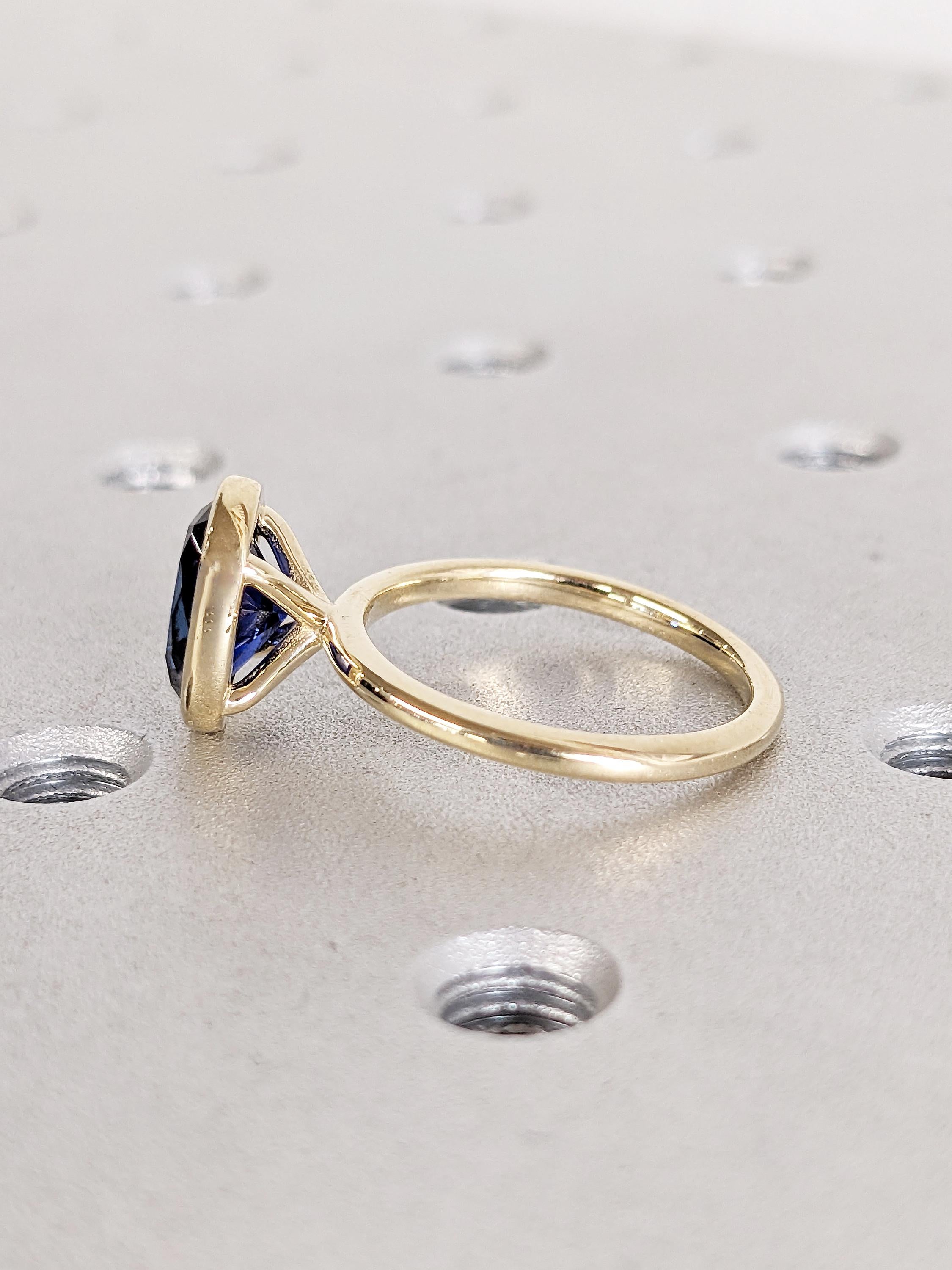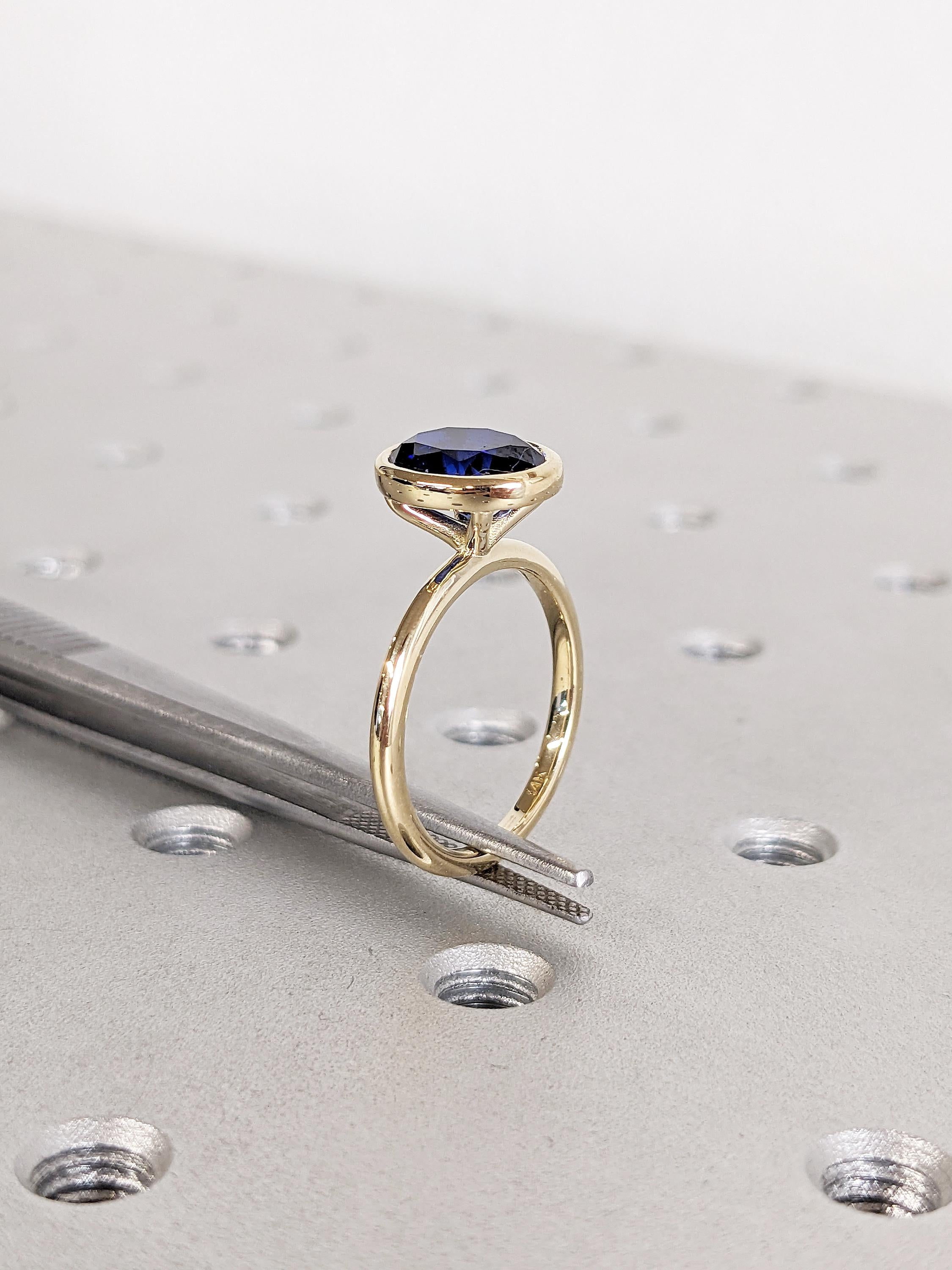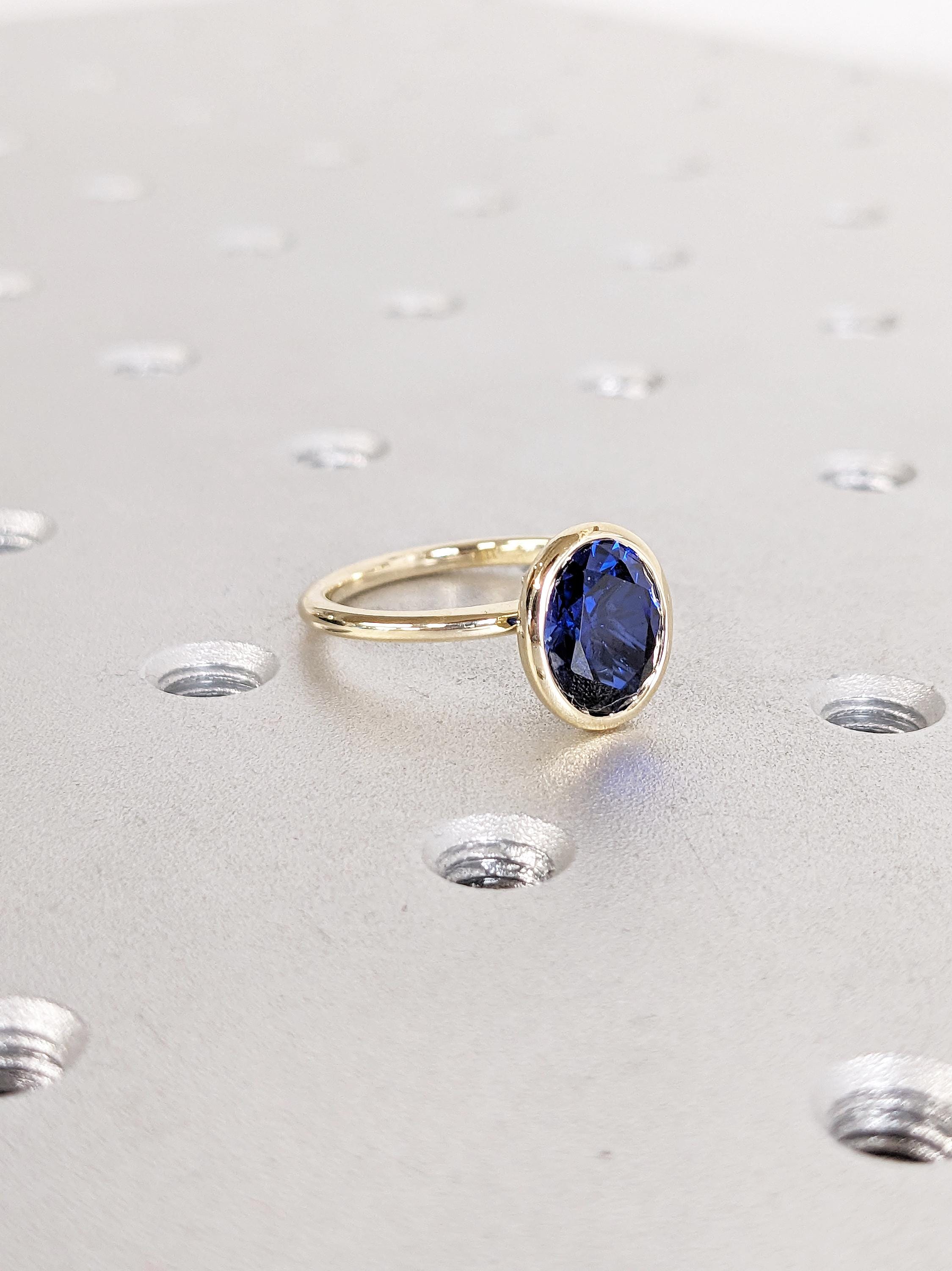 Oval Lab Sapphire Ring | 14k Yellow Gold Bezel Set Ring | Blue Sapphire Engagement Ring | Solitaire Promise Rings for Women | Gemstone Ring