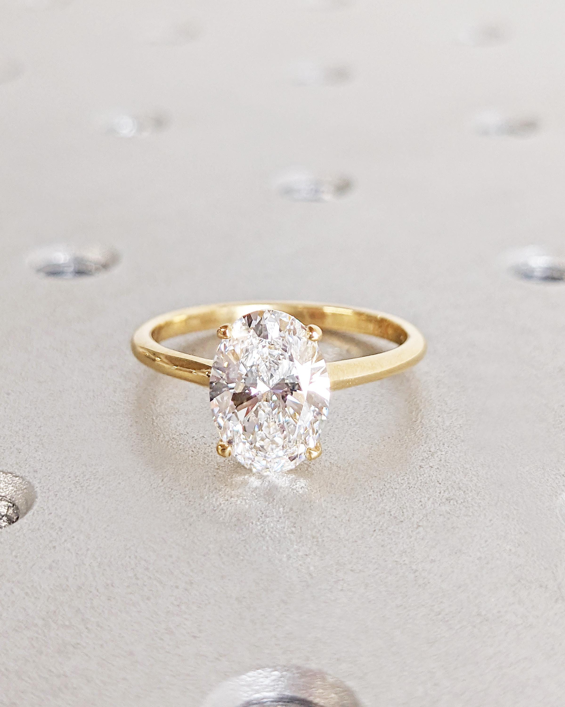 Oval Moissanite Engagement Ring, Oval Engagement Ring 14K Solid Gold, Oval Solitaire Moissanite Ring, Anniversary Wedding Promise Ring Women