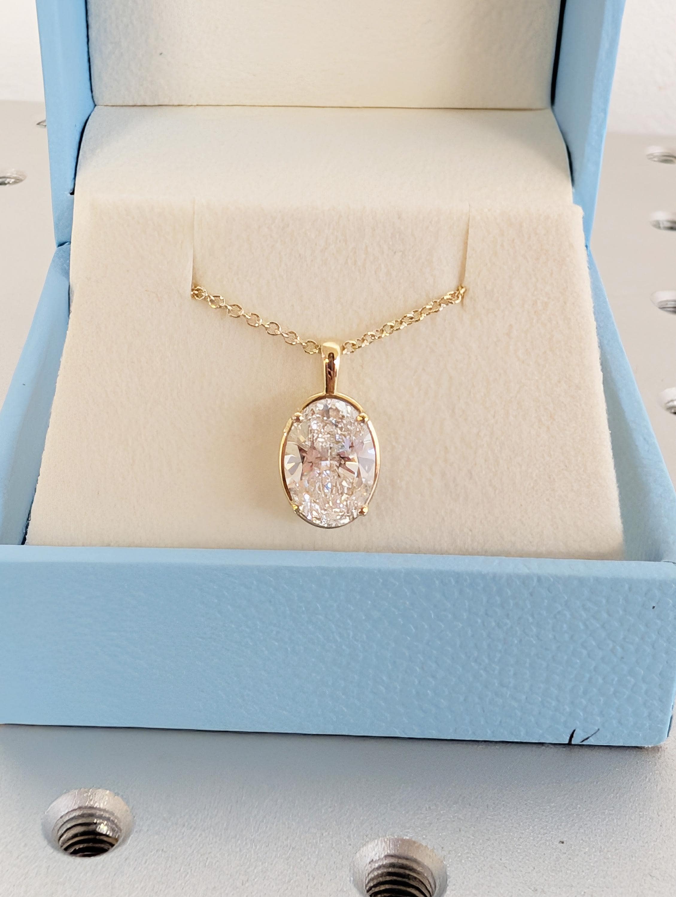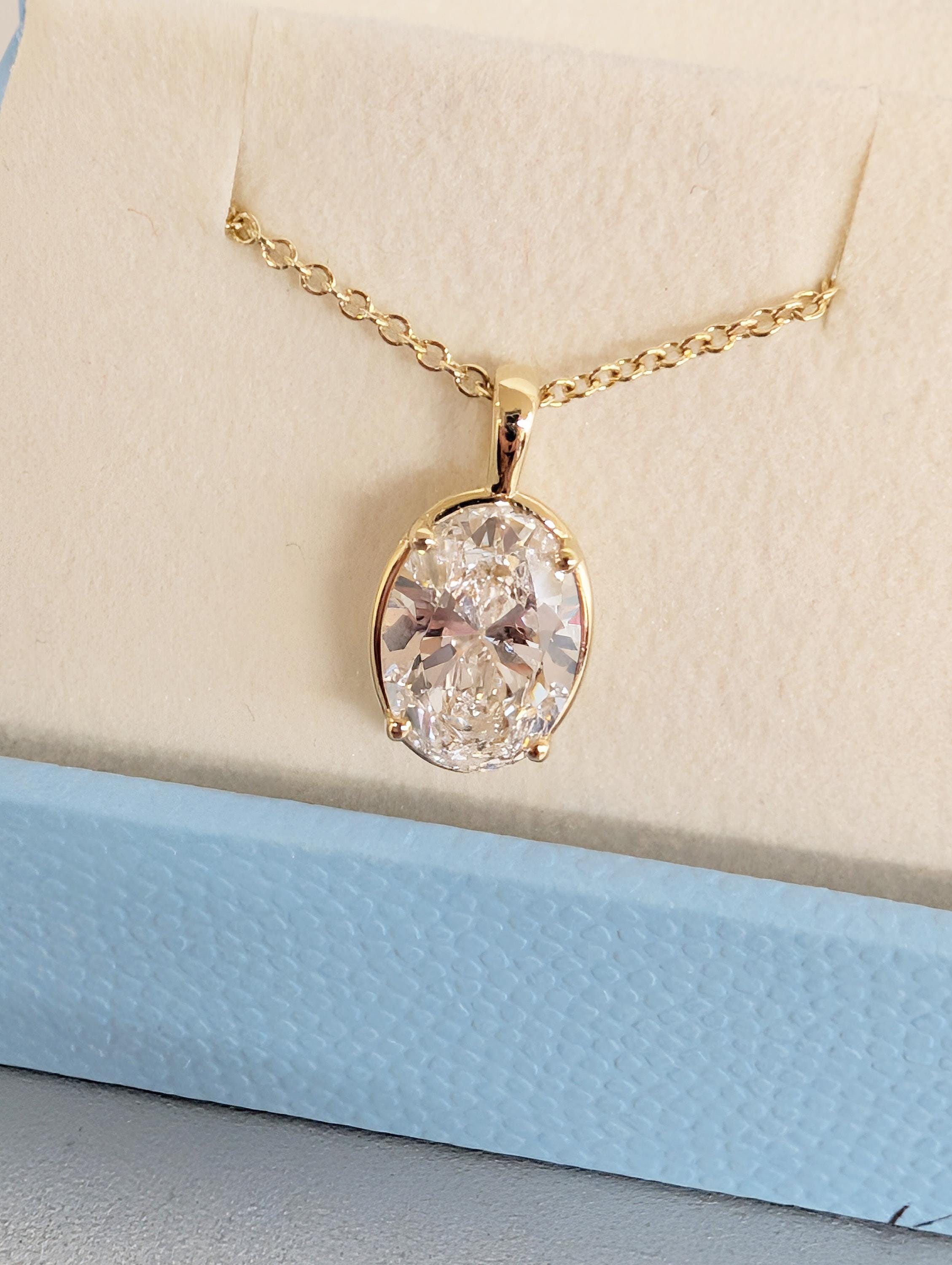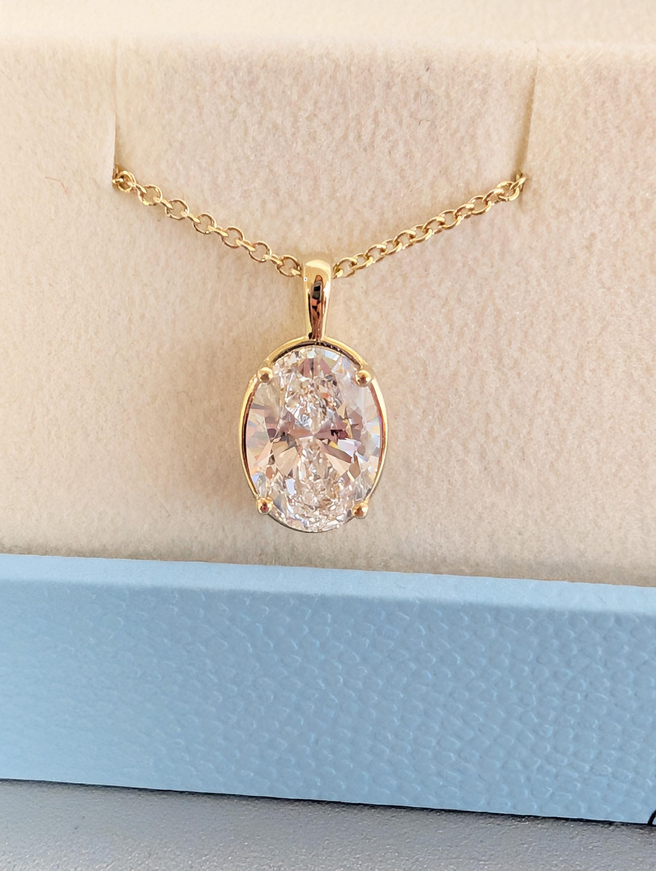 Oval Moissanite Pendant Necklace, 14K Yellow Gold Statement Necklace, Dainty Minimalist Bridal Moissanite Necklace, Handmade Gold Jewelry