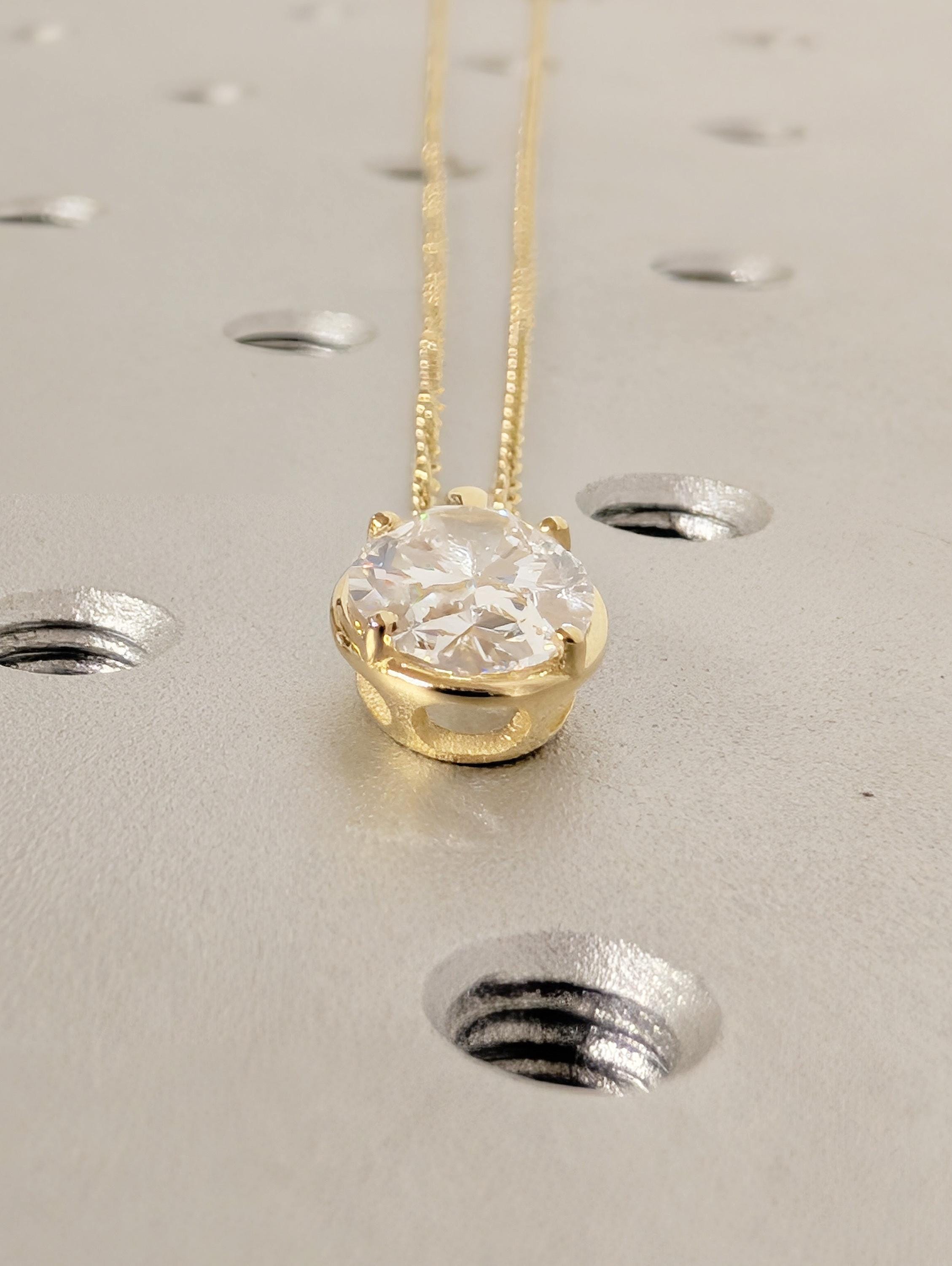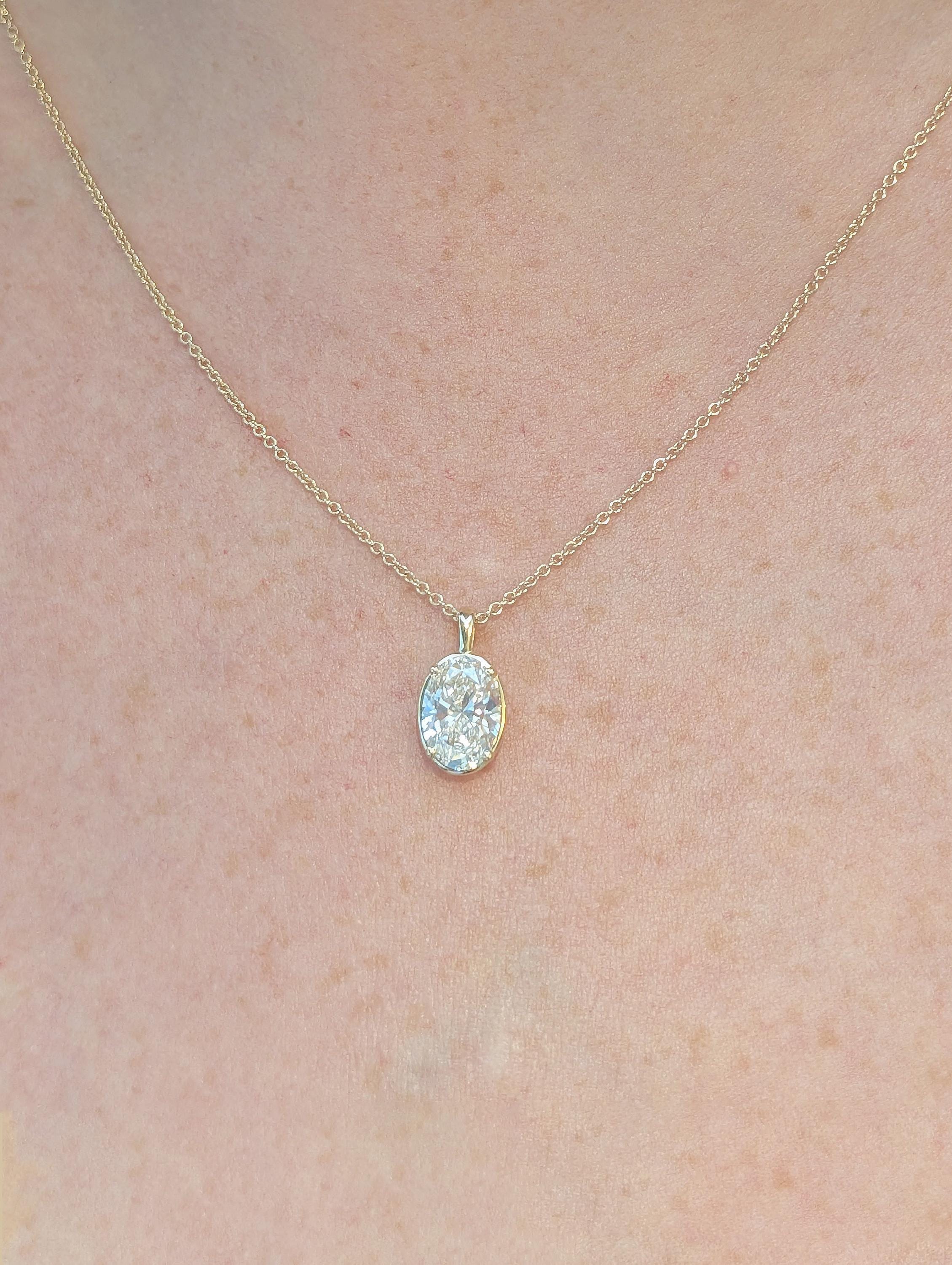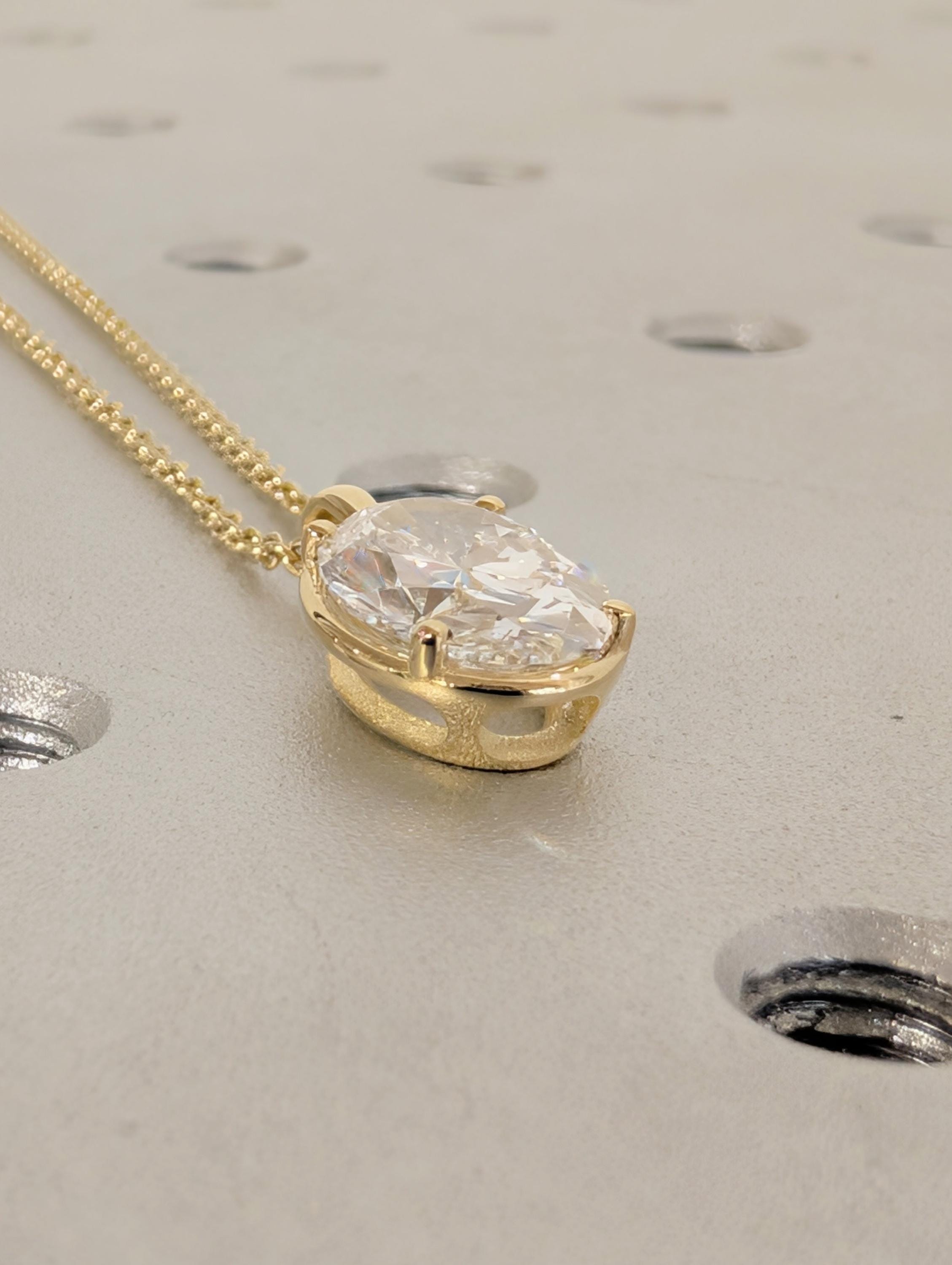 Oval Moissanite Pendant Necklace, 14K Yellow Gold Statement Necklace, Dainty Minimalist Bridal Moissanite Necklace, Handmade Gold Jewelry