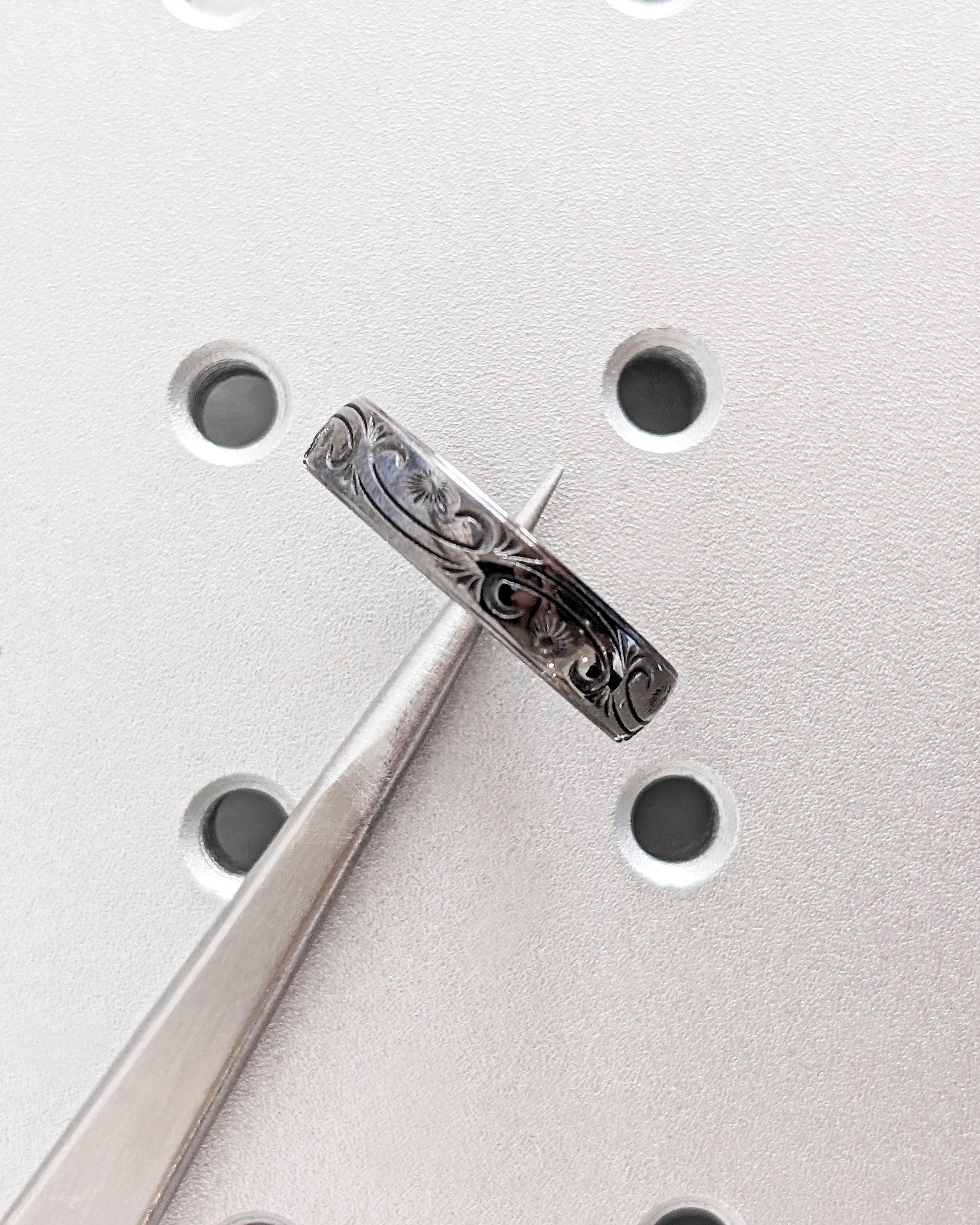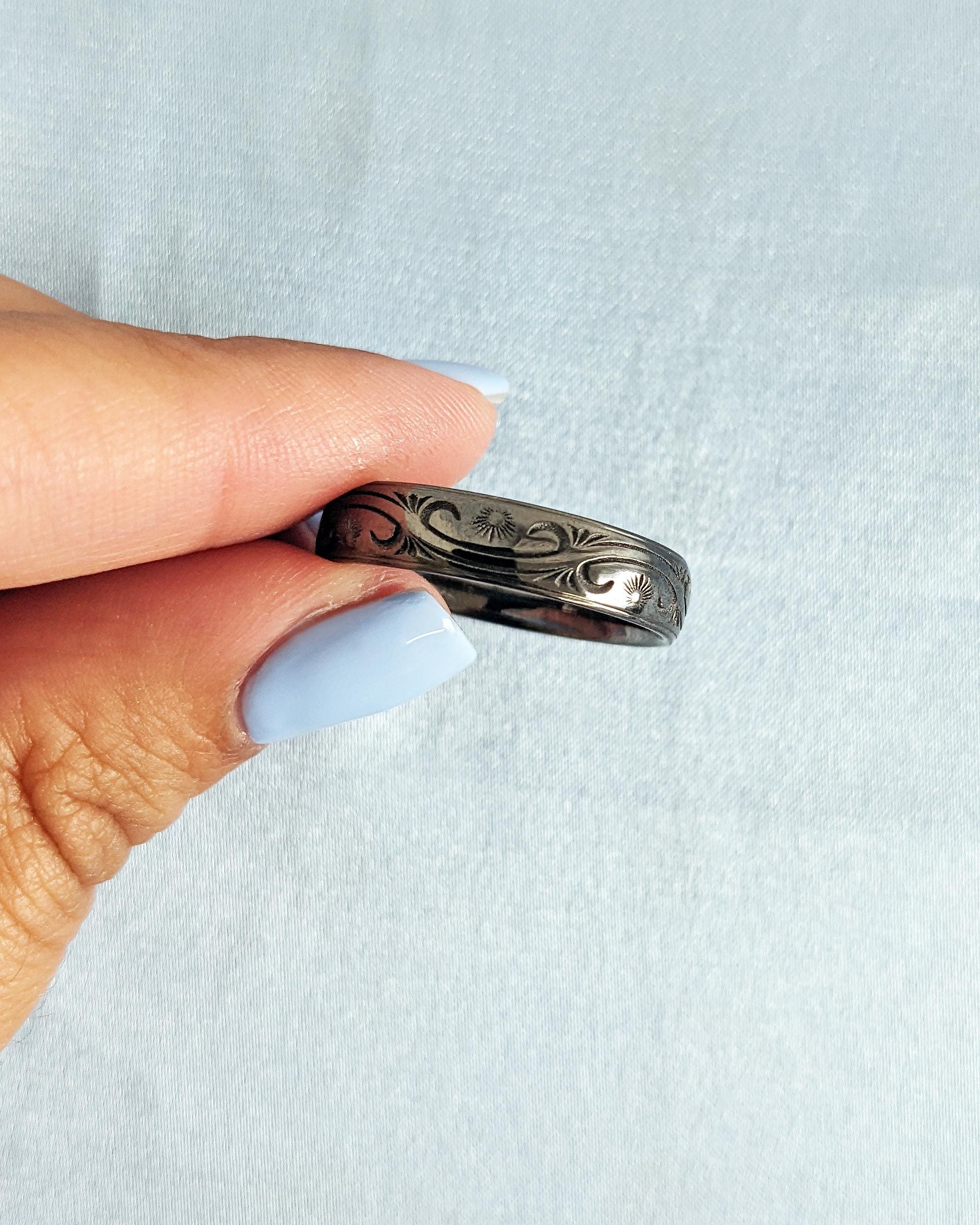 Paisley 14K 18K Solid Gold Wedding Ring for Men & Women | Black Gold Men's Wedding Band | Hand Engraved Men's Wedding Ring | Engraved Rings