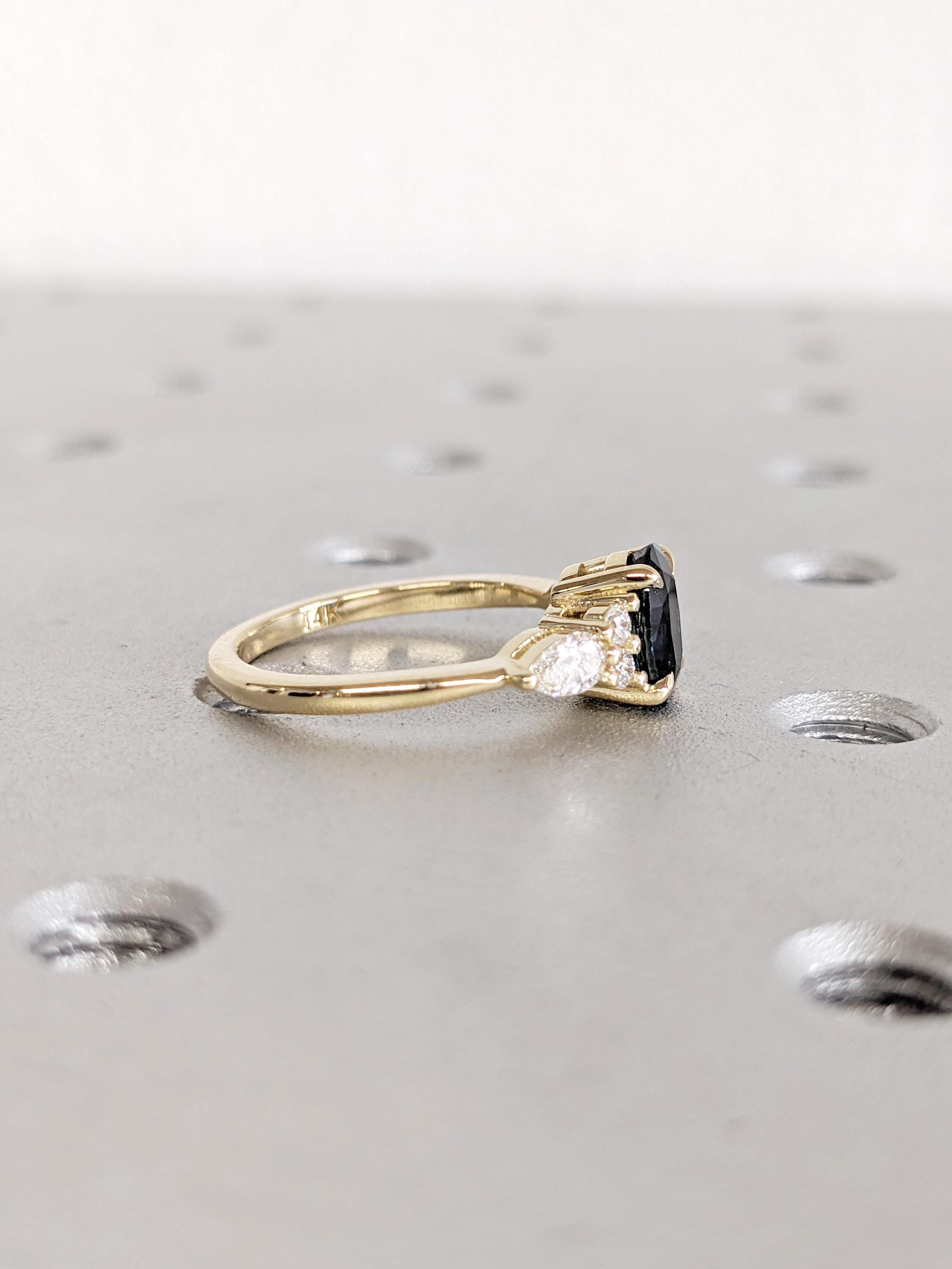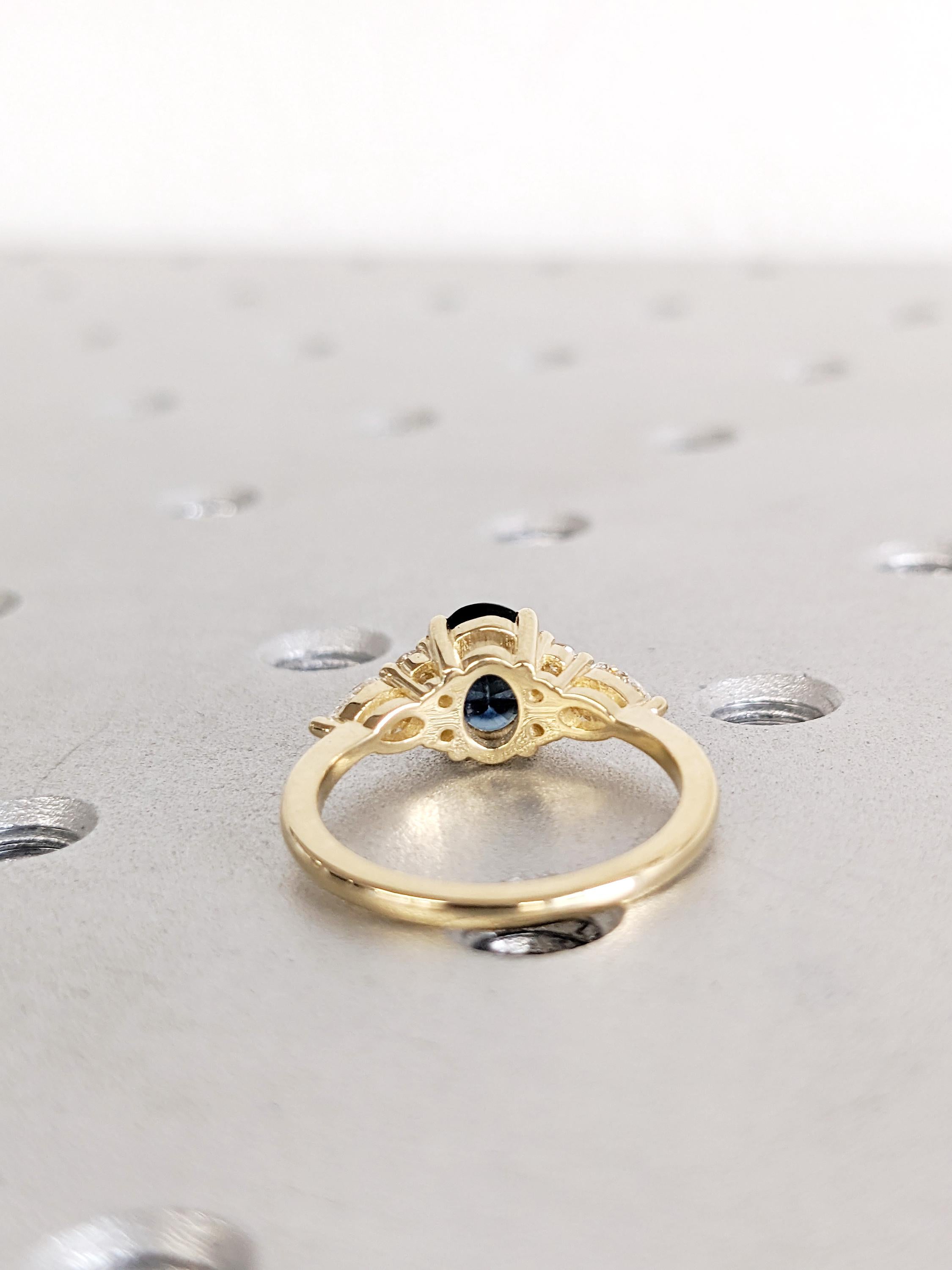 Peacock Sapphire Engagement Ring: Oval Cut, 14K/18K Yellow Gold, Side Diamond Cluster, Antique Sapphire Birthstone Jewelry