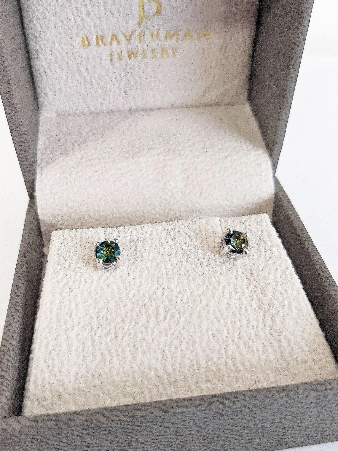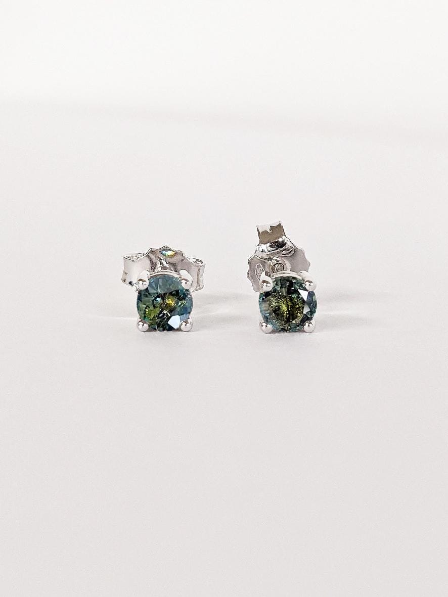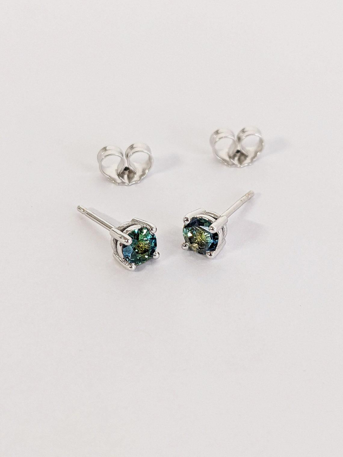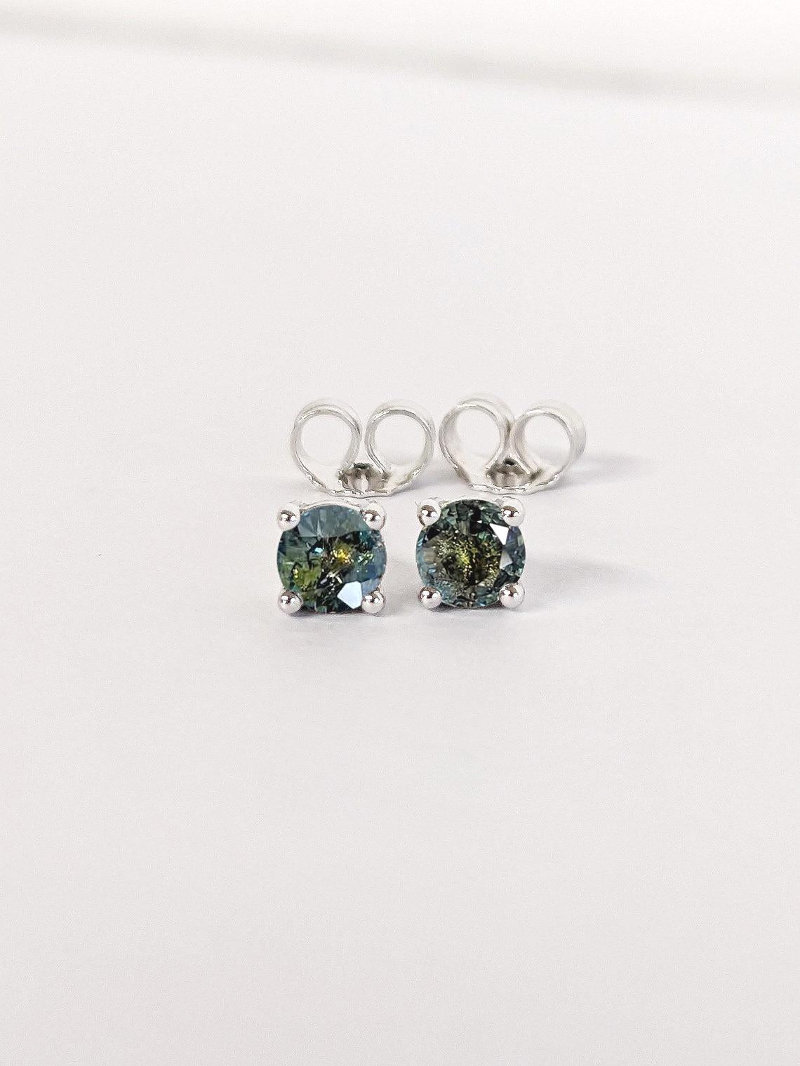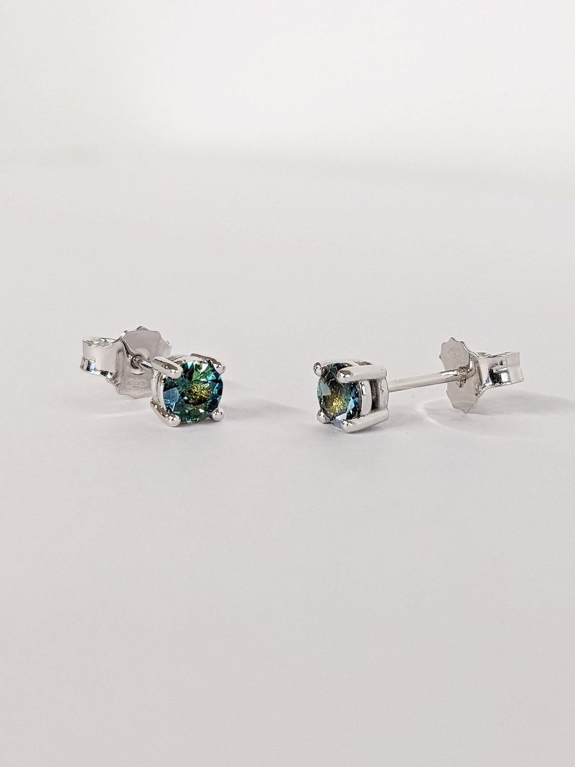 Peacock Sapphire Solitaire Earrings | Push Back Earrings | 14k 18k Gold Earrings | White Gold Woman Earrings | Simple Round Sapphire Studs
