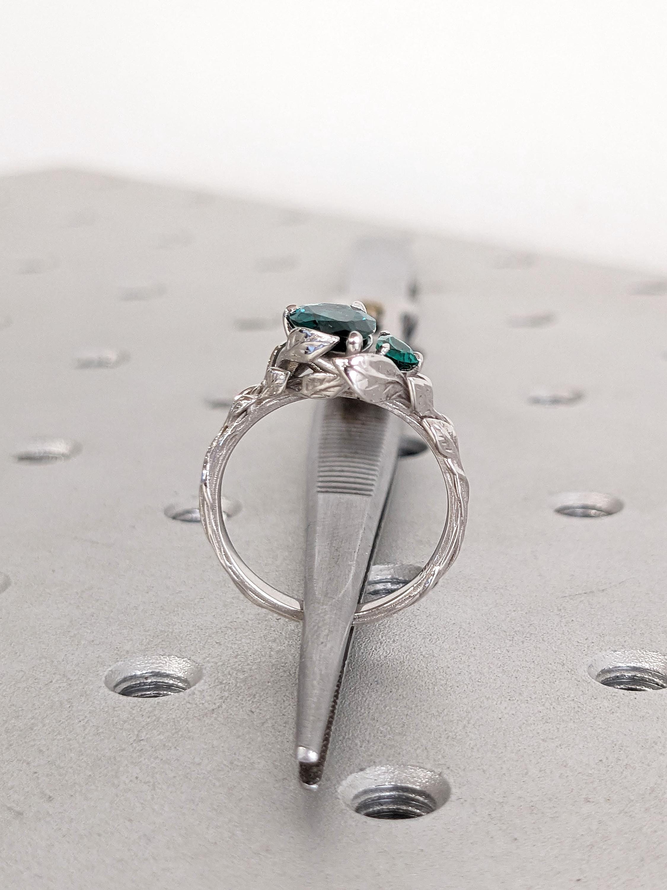 Pear cut Emerald Engagement Ring | Solid 14K White Gold Wedding Ring | 1-3ct Lab Created Green Emerald Leaf Ring | Bridal Ring Promise Ring