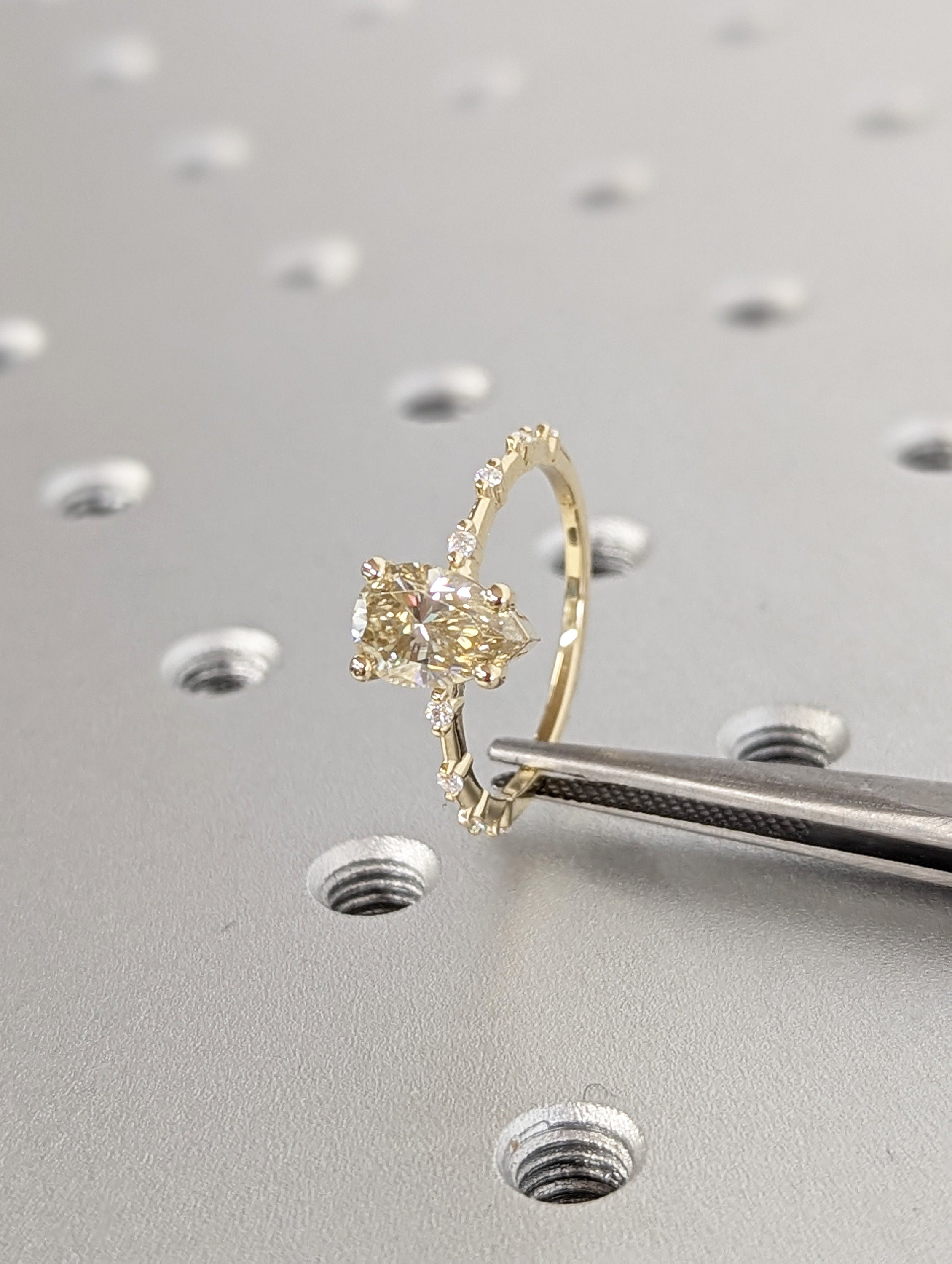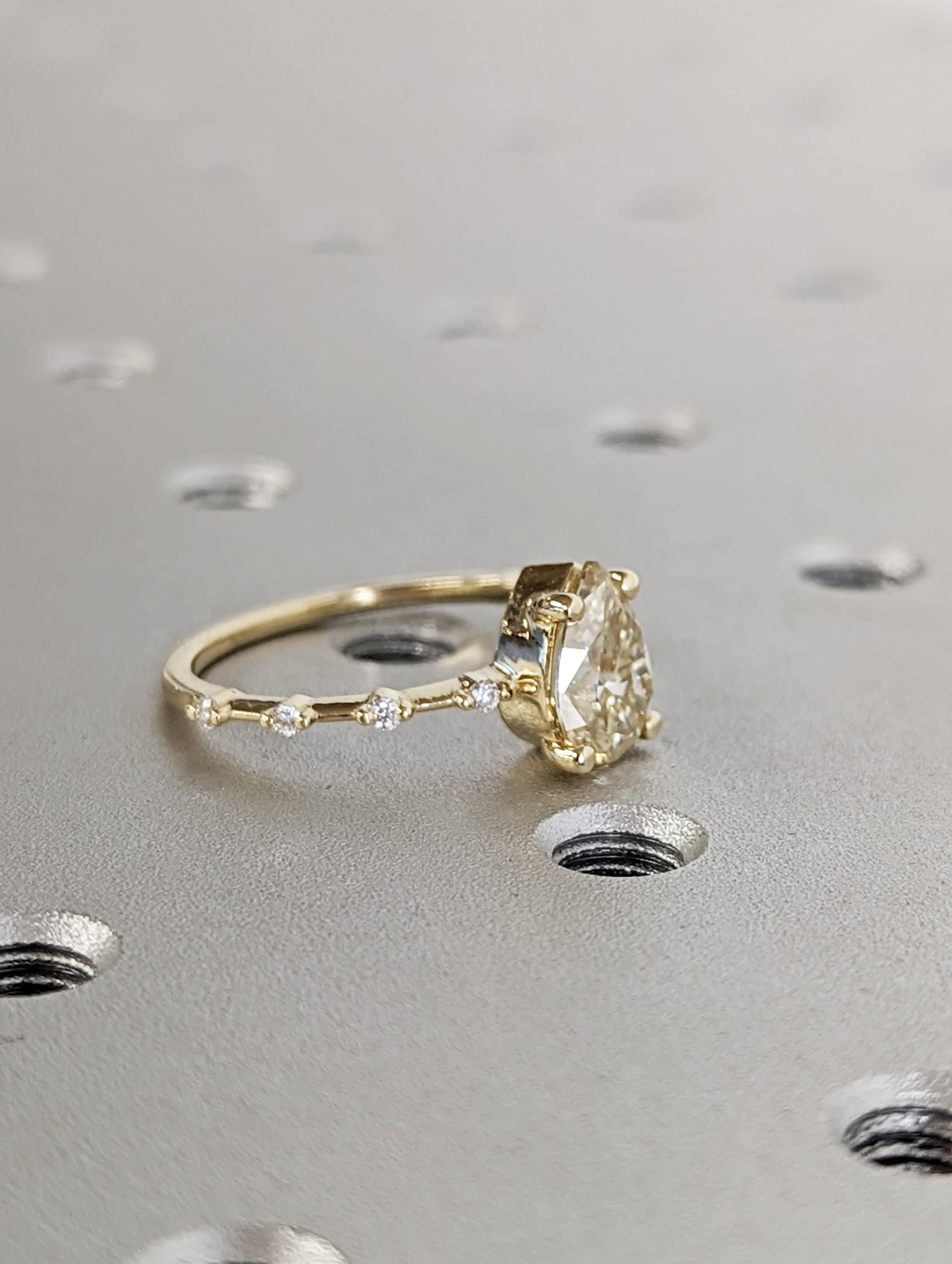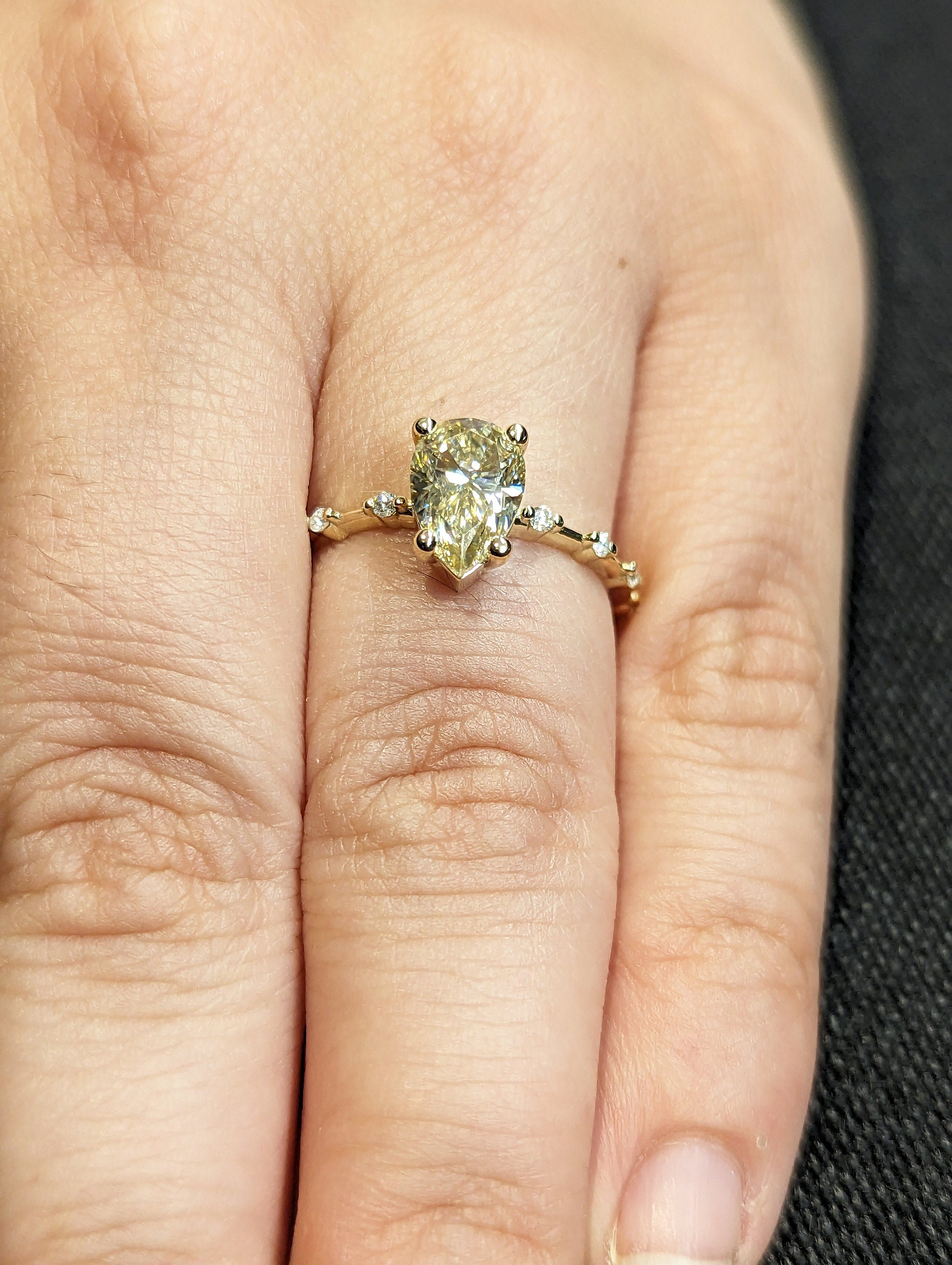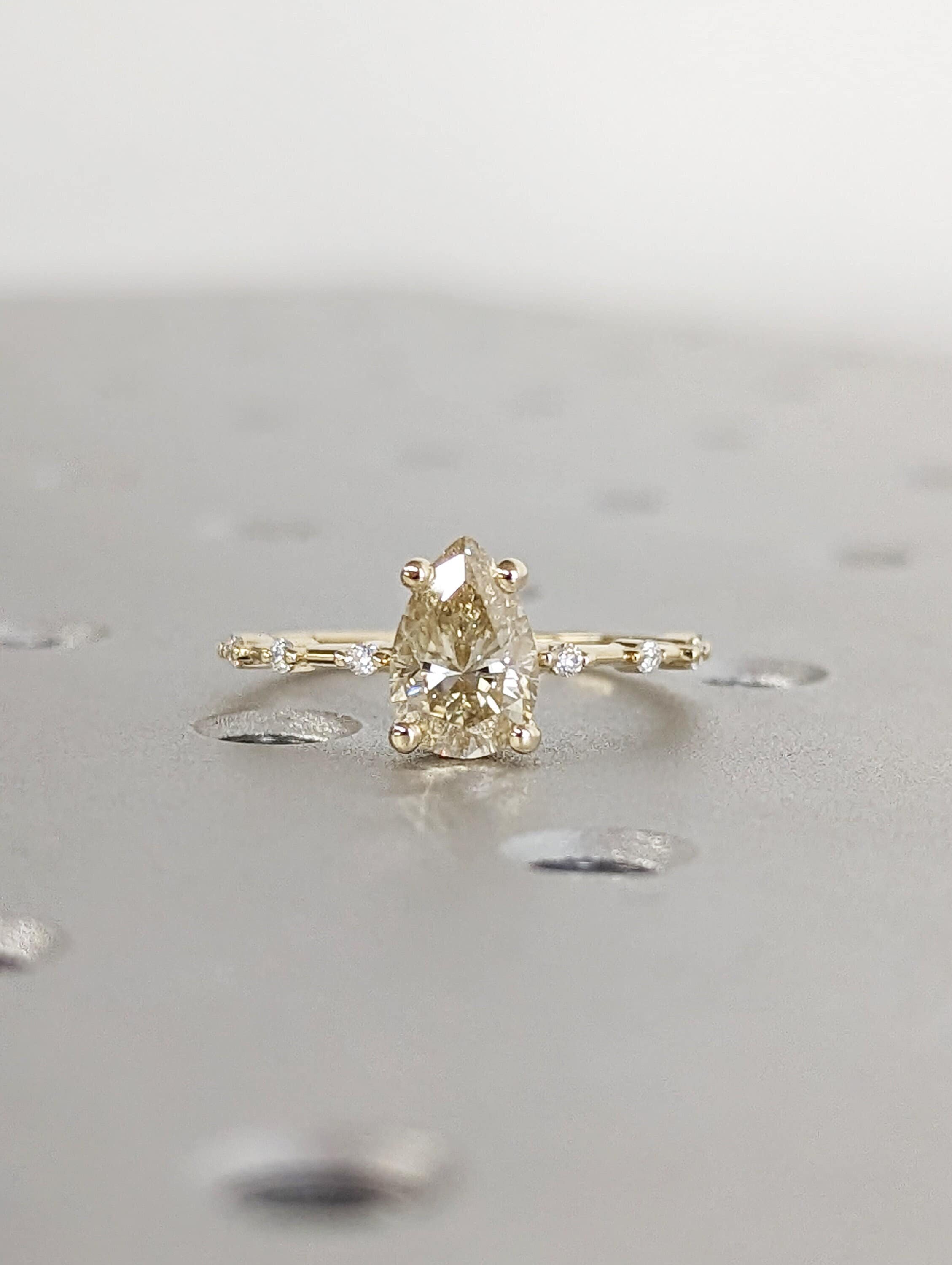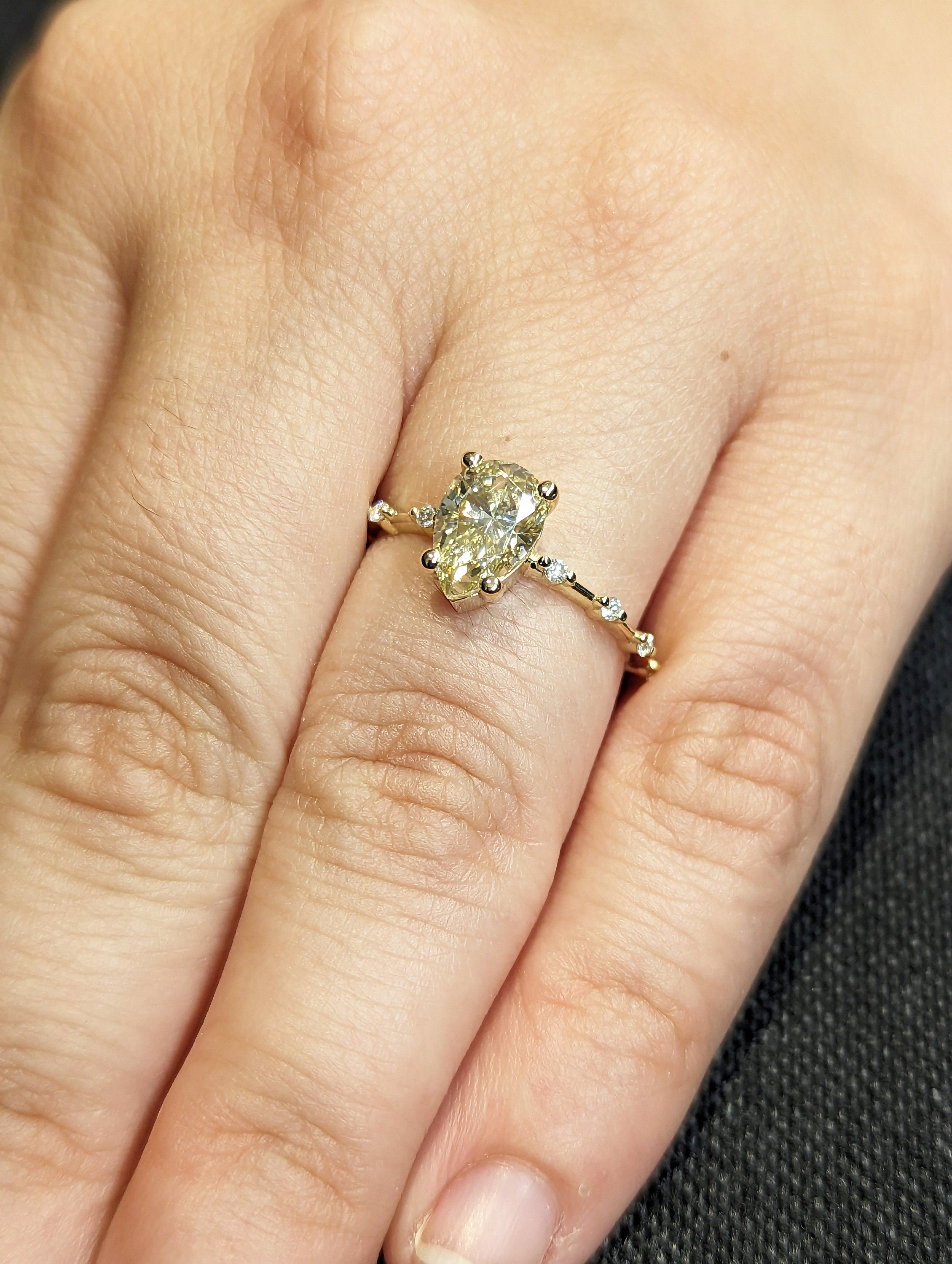 Pear Cut Fancy Color Yellow Moissanite Engagement Ring, Distance Pave Ring, Side Stone Round Cut, Anniversary Gift Ring, Ring For Her