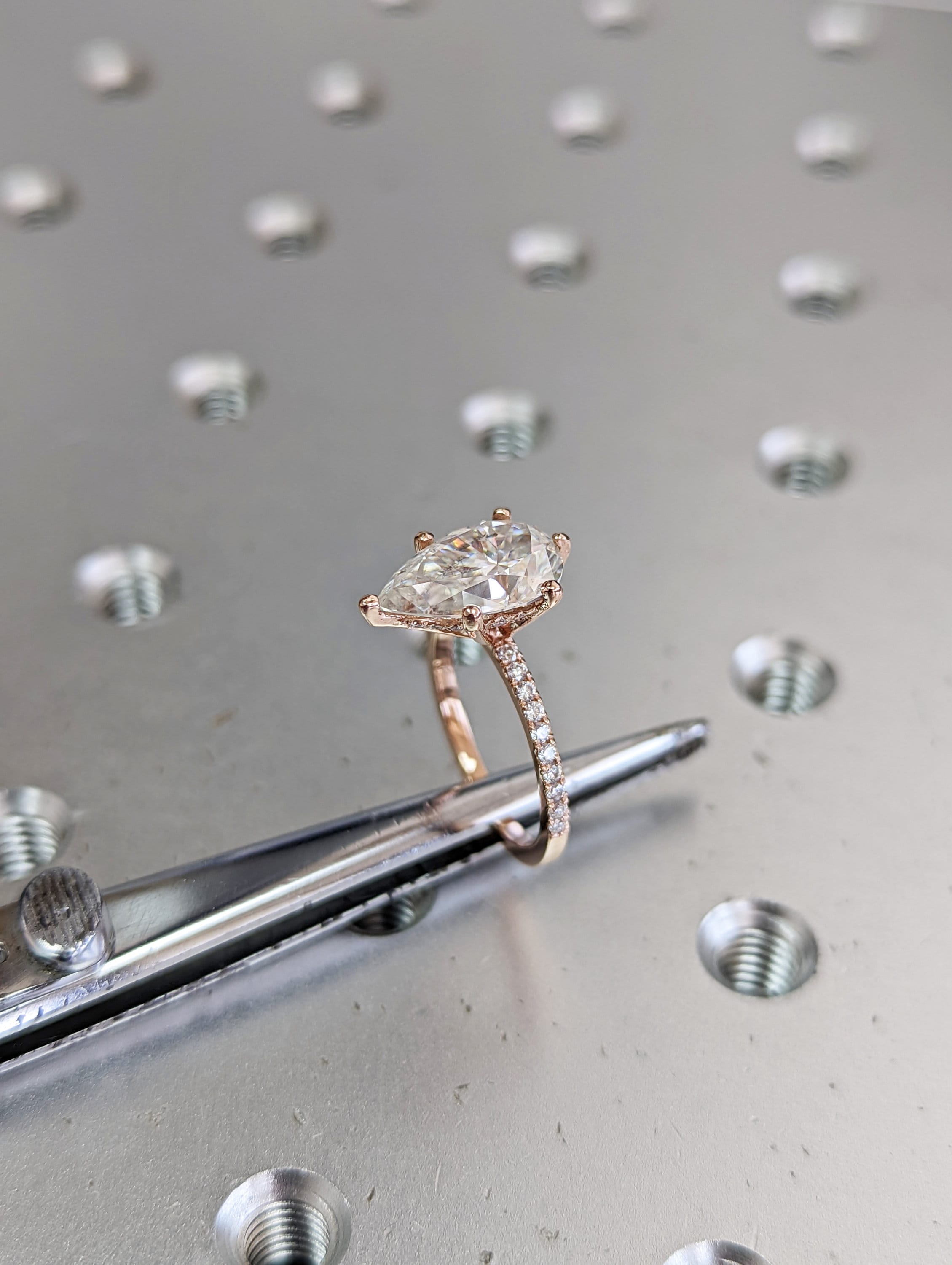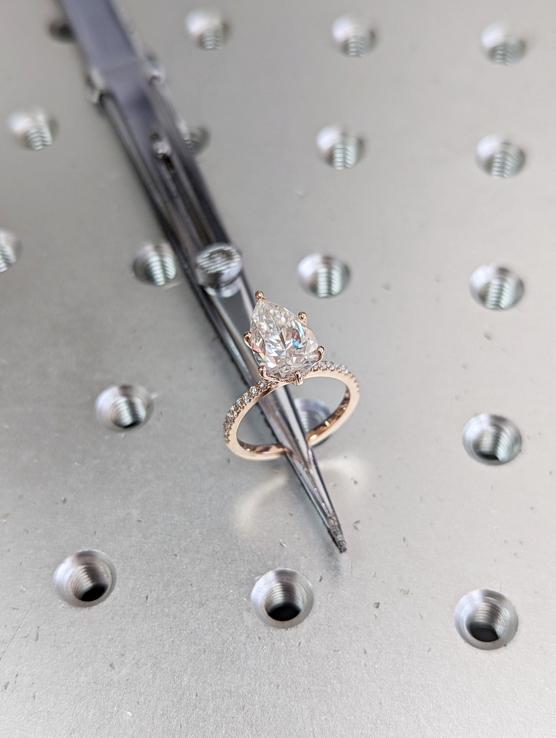 Pear cut Hidden Halo Engagement Ring | 1.5-3 Carat VVS Moissanite Ring | 14k Rose Gold Promise Ring | Half Eternity Ring | Thin Gold Ring