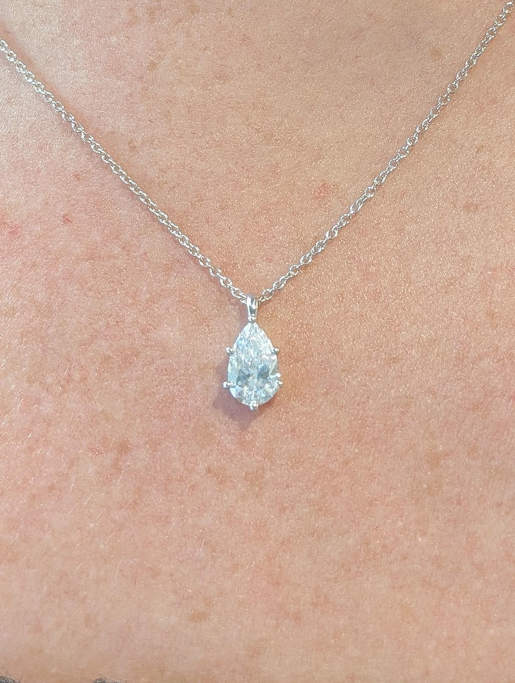 Pear Cut Moissanite Pendant Necklace, 14K White Gold Drop Women's Necklace, Solitaire Bridal Necklace, Statement Necklace, Unique Necklace