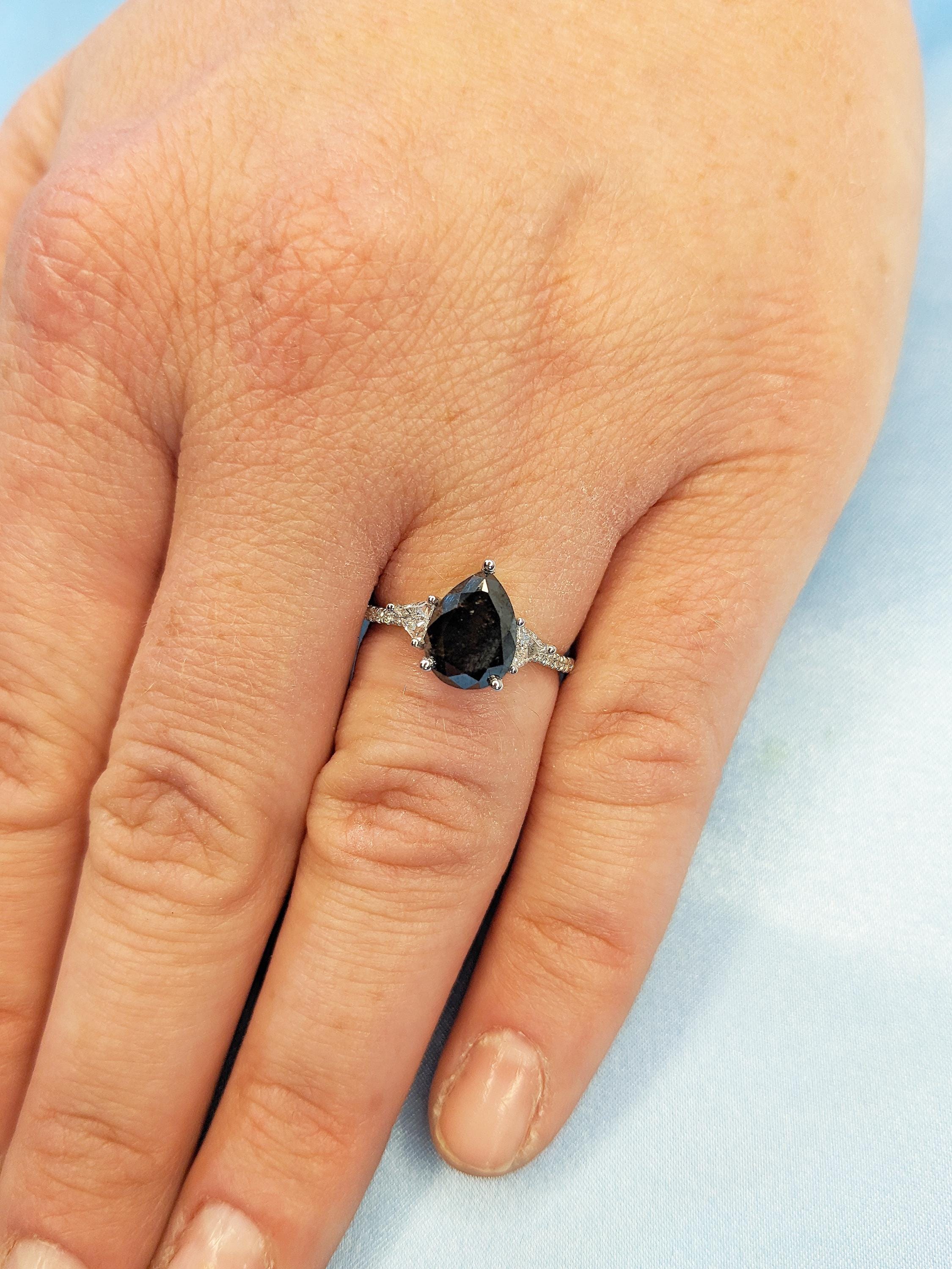 Pear Cut Salt and Pepper Diamond Engagement Ring, Trillion Cut Ring, 14k White Gold Promise Ring for Her, Vintage Diamond Ring, Bridal Ring
