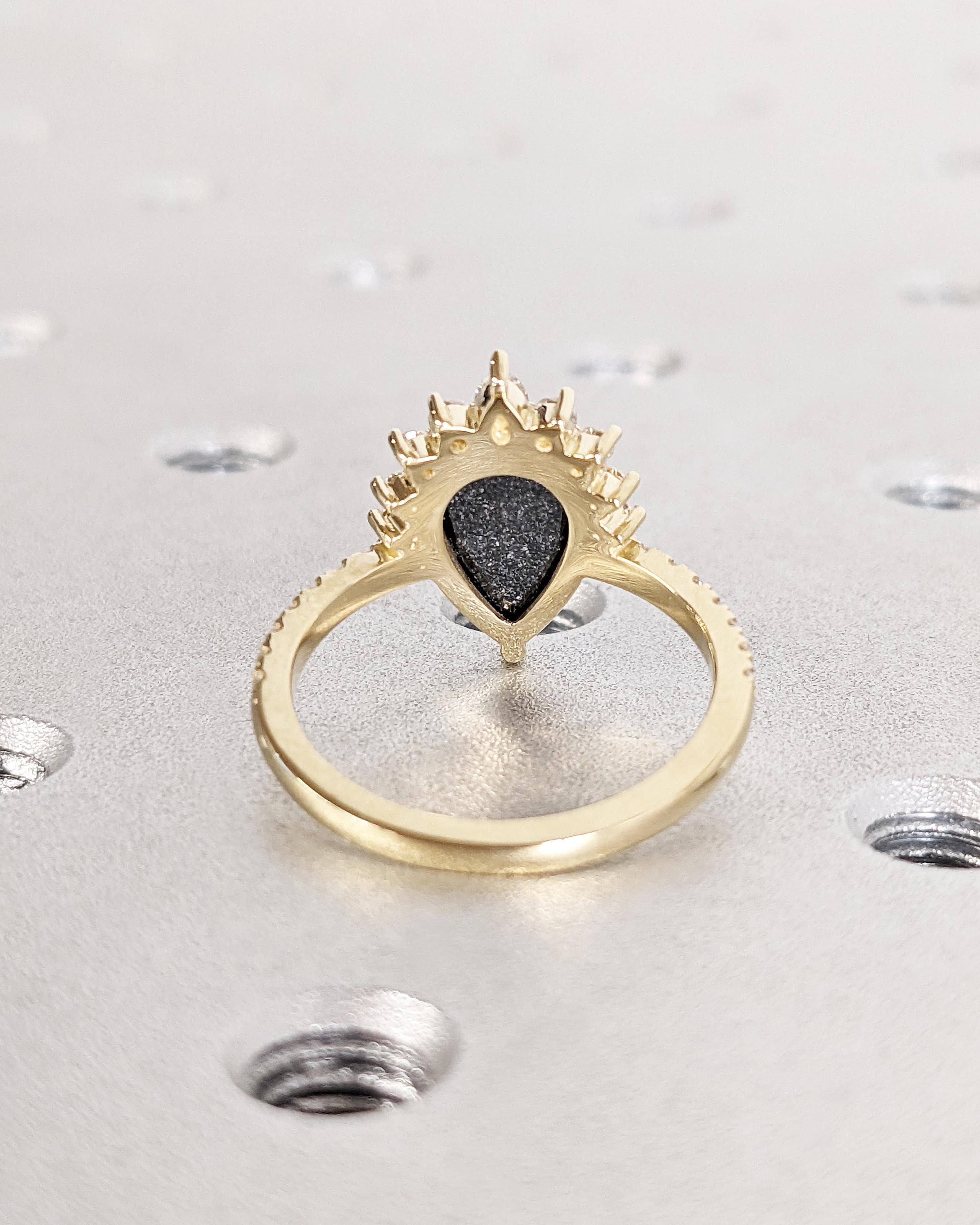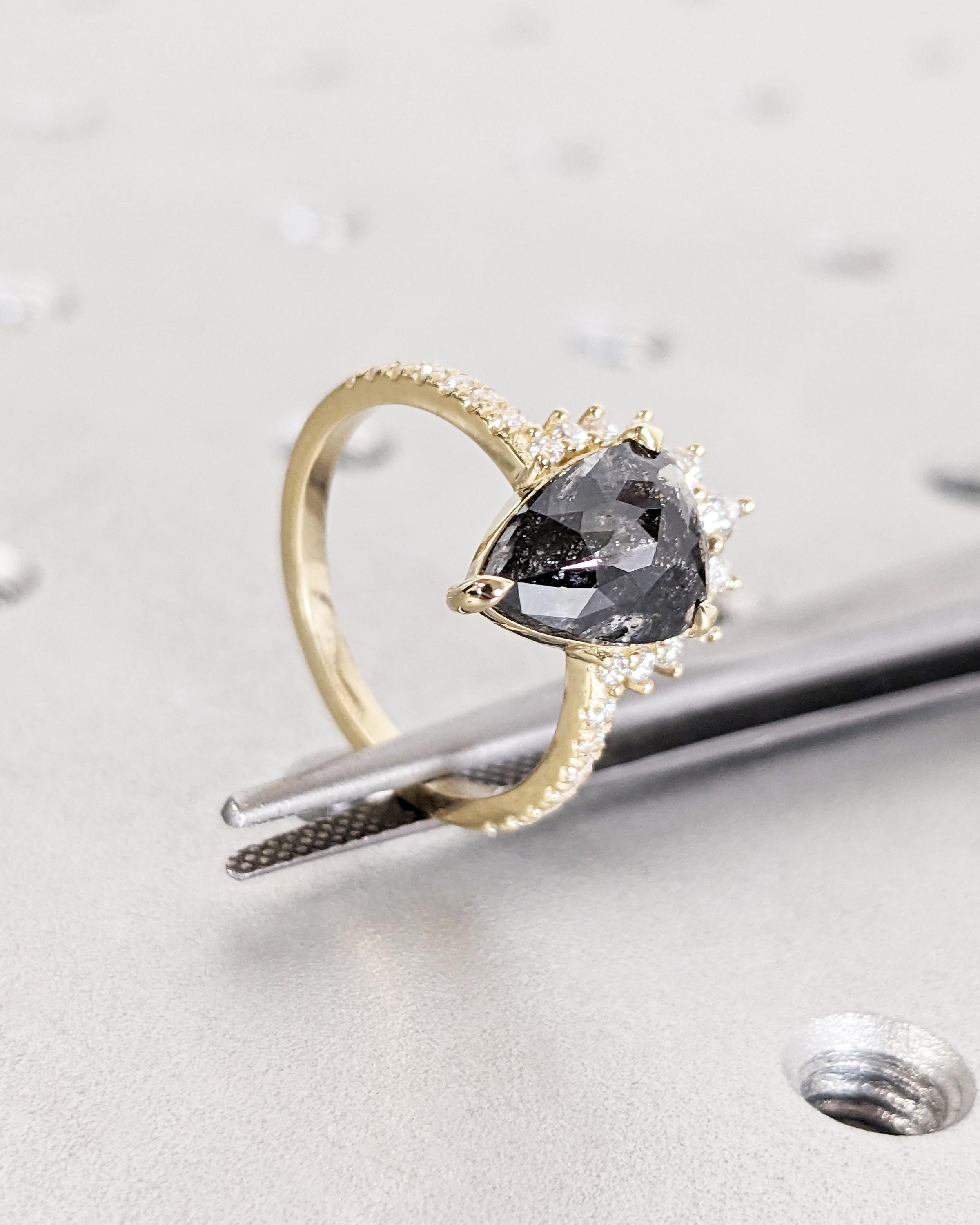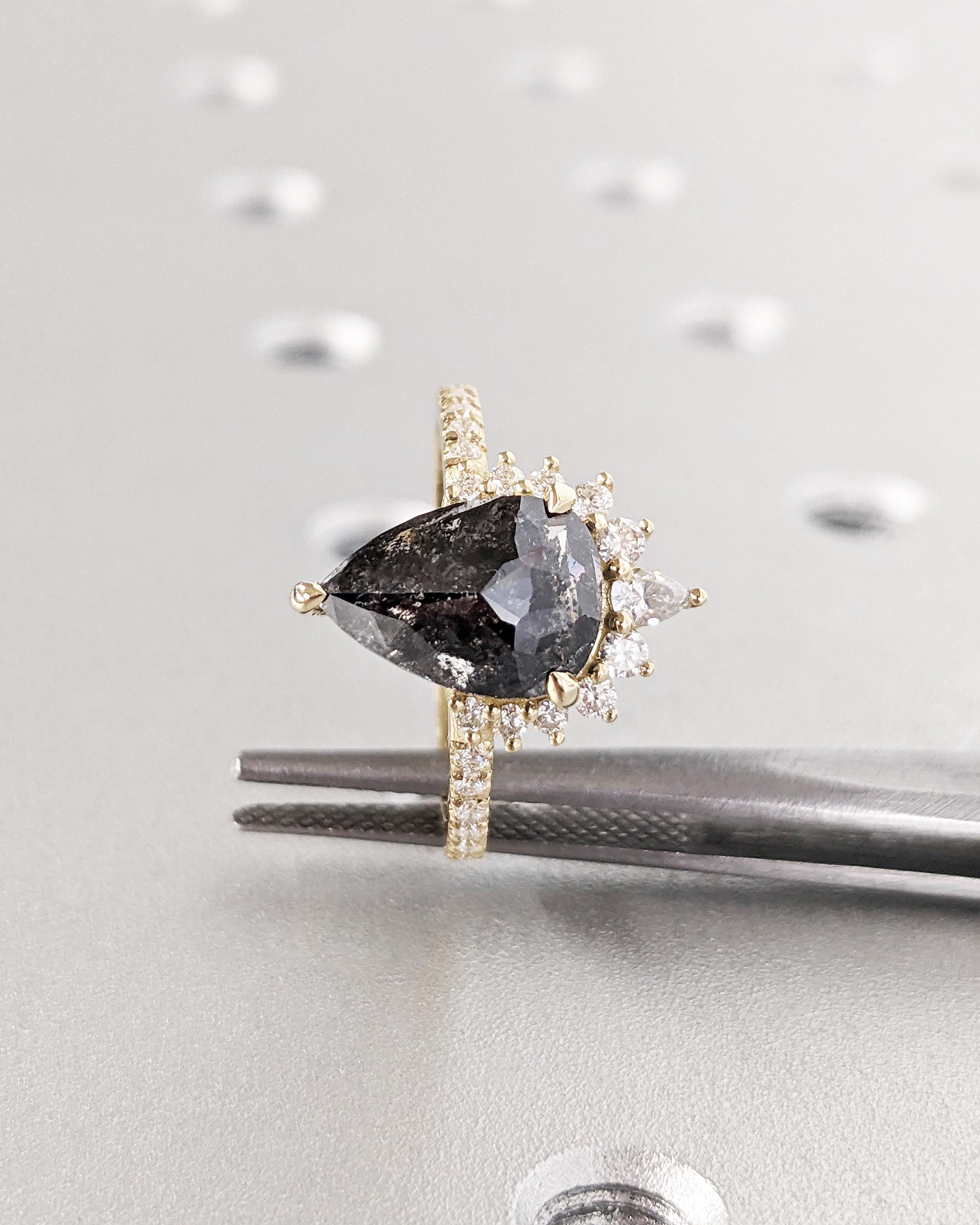 Pear Cut Salt & Pepper Diamond Engagement Ring, 14K Yellow Gold, Art Deco Diamond Bridal Ring, Glamorous Dinner Ring, Dainty Promise Ring