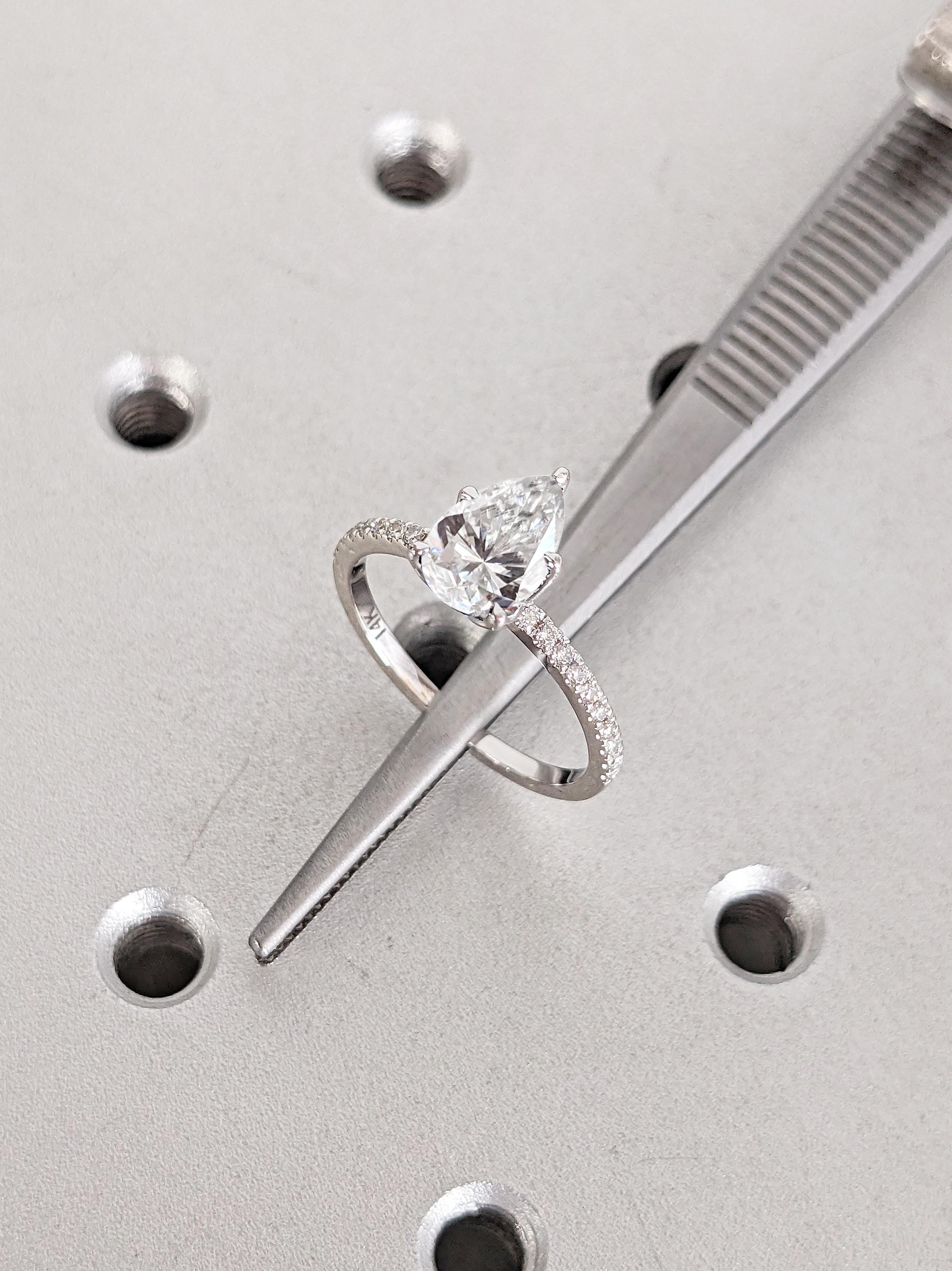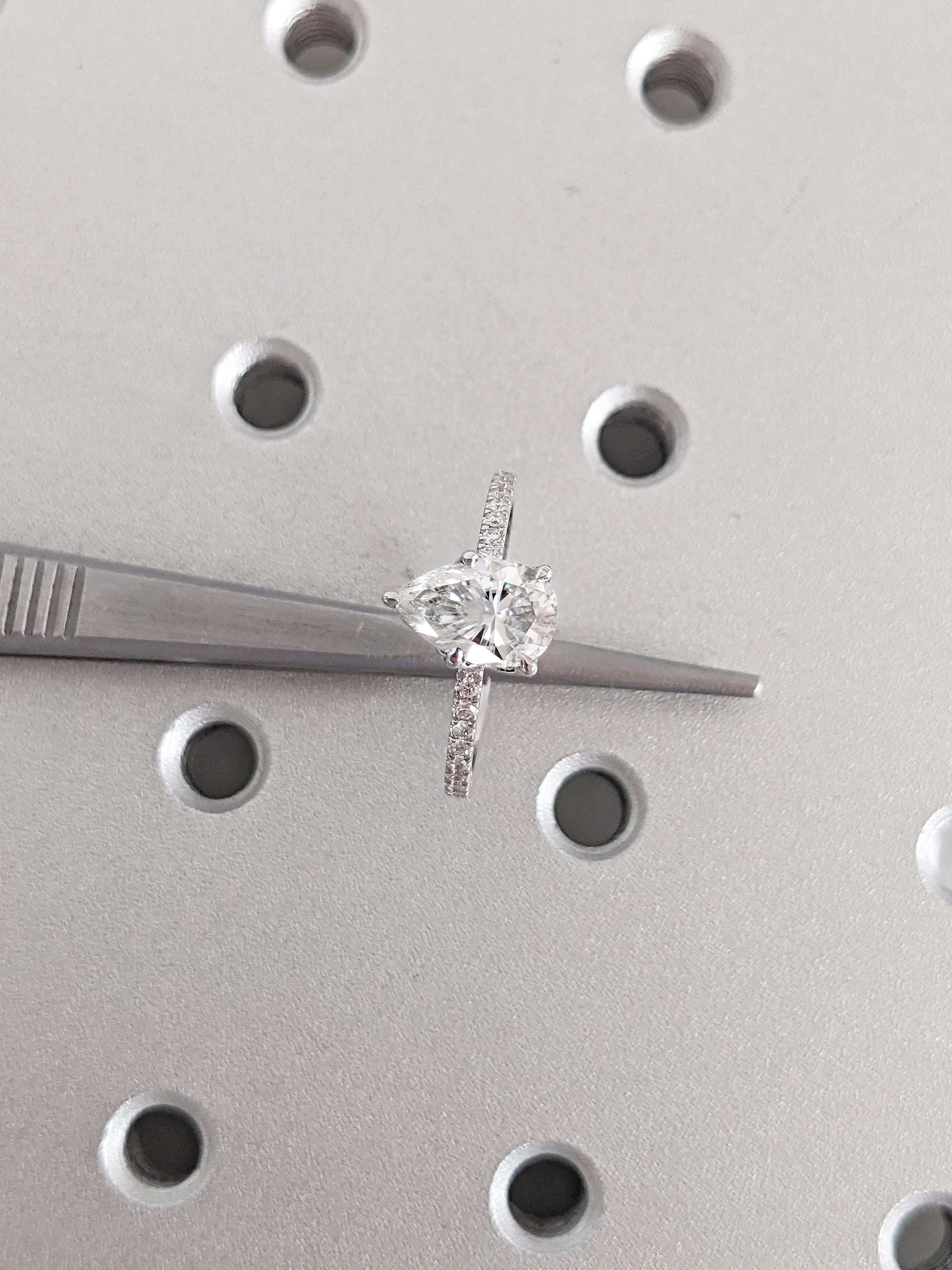 Pear Engagement Ring, Handmade Rings for Women, Lab Grown Diamond Engagement Ring, 14k White Gold Ring, Half Eternity Ring, Bridal Ring