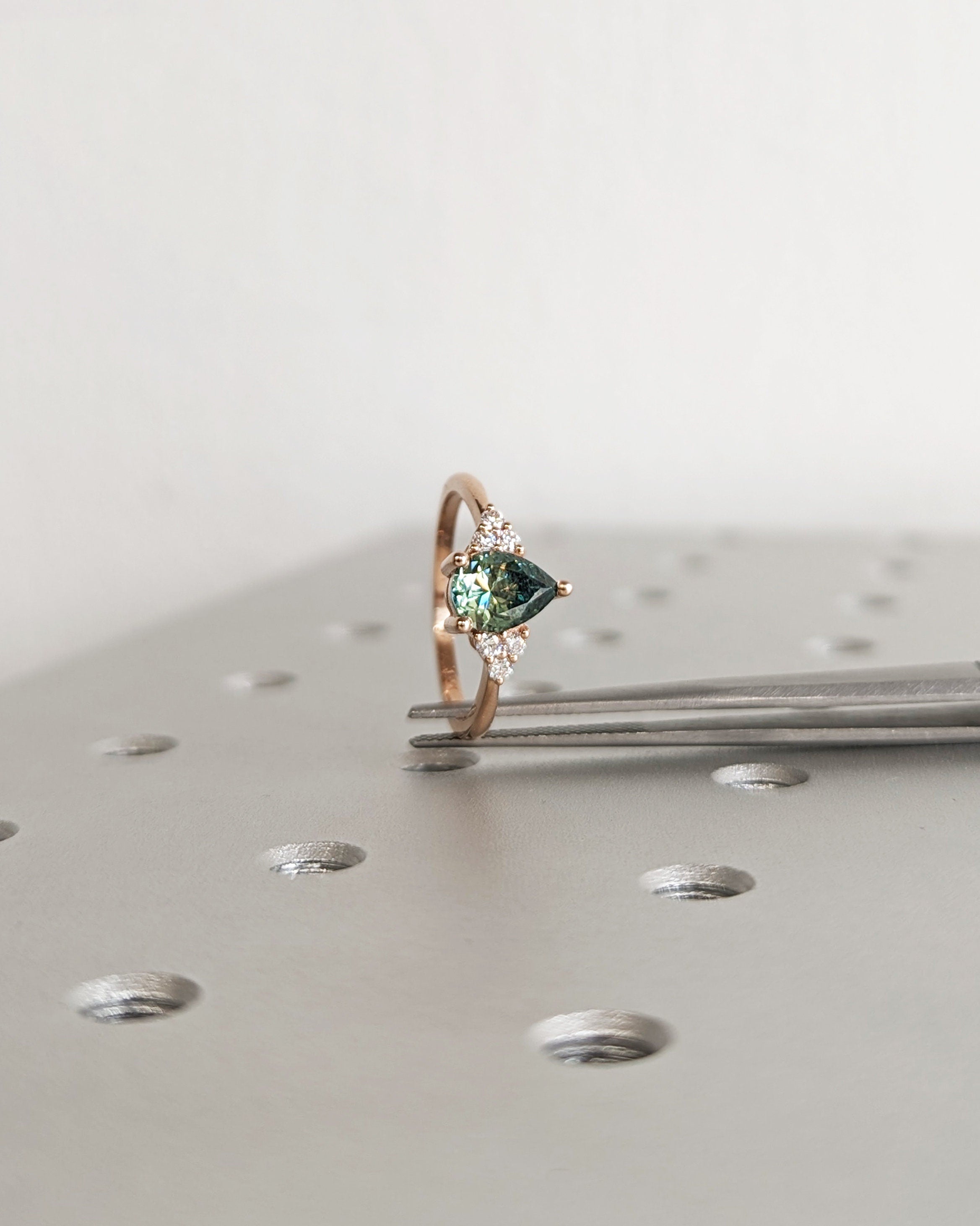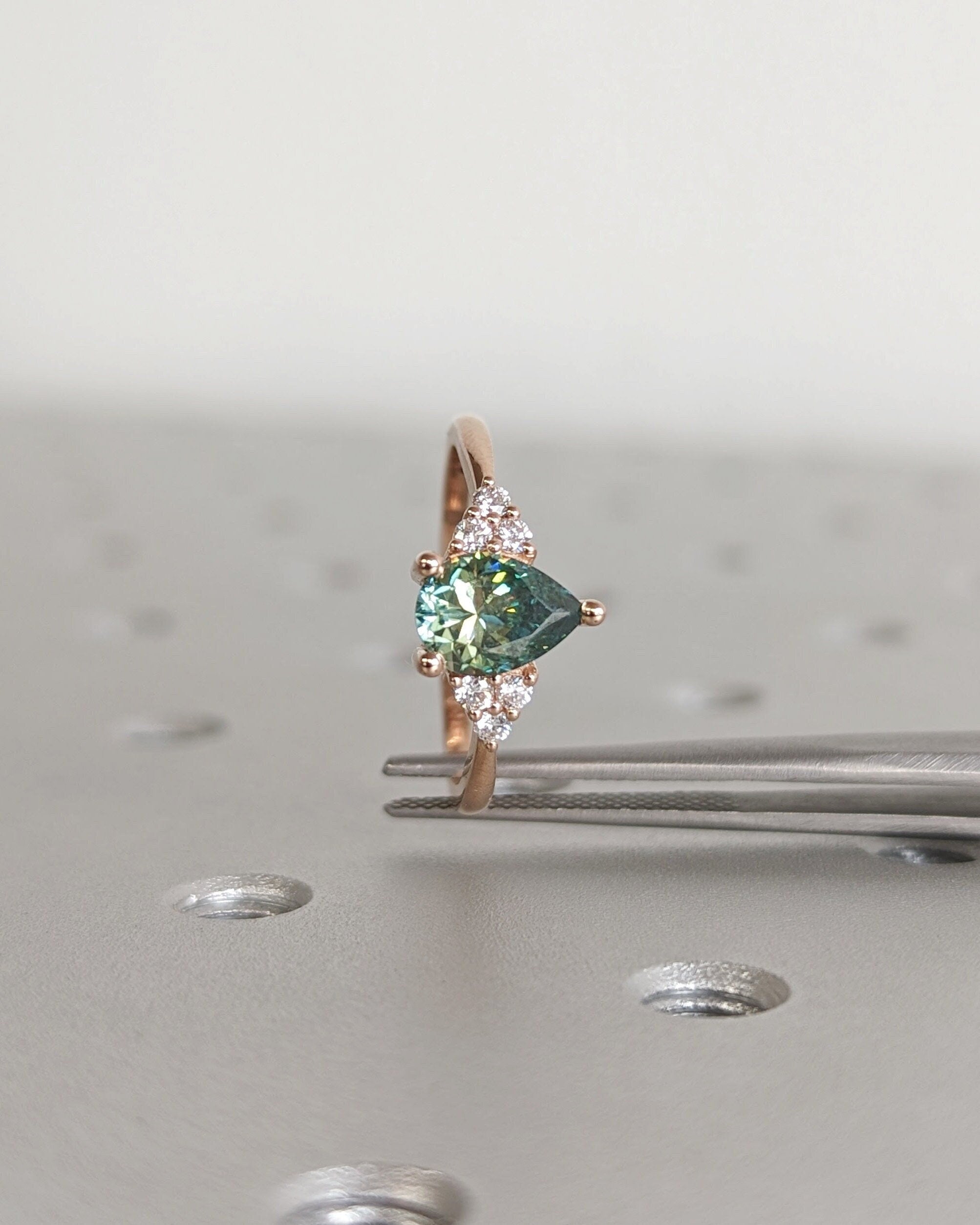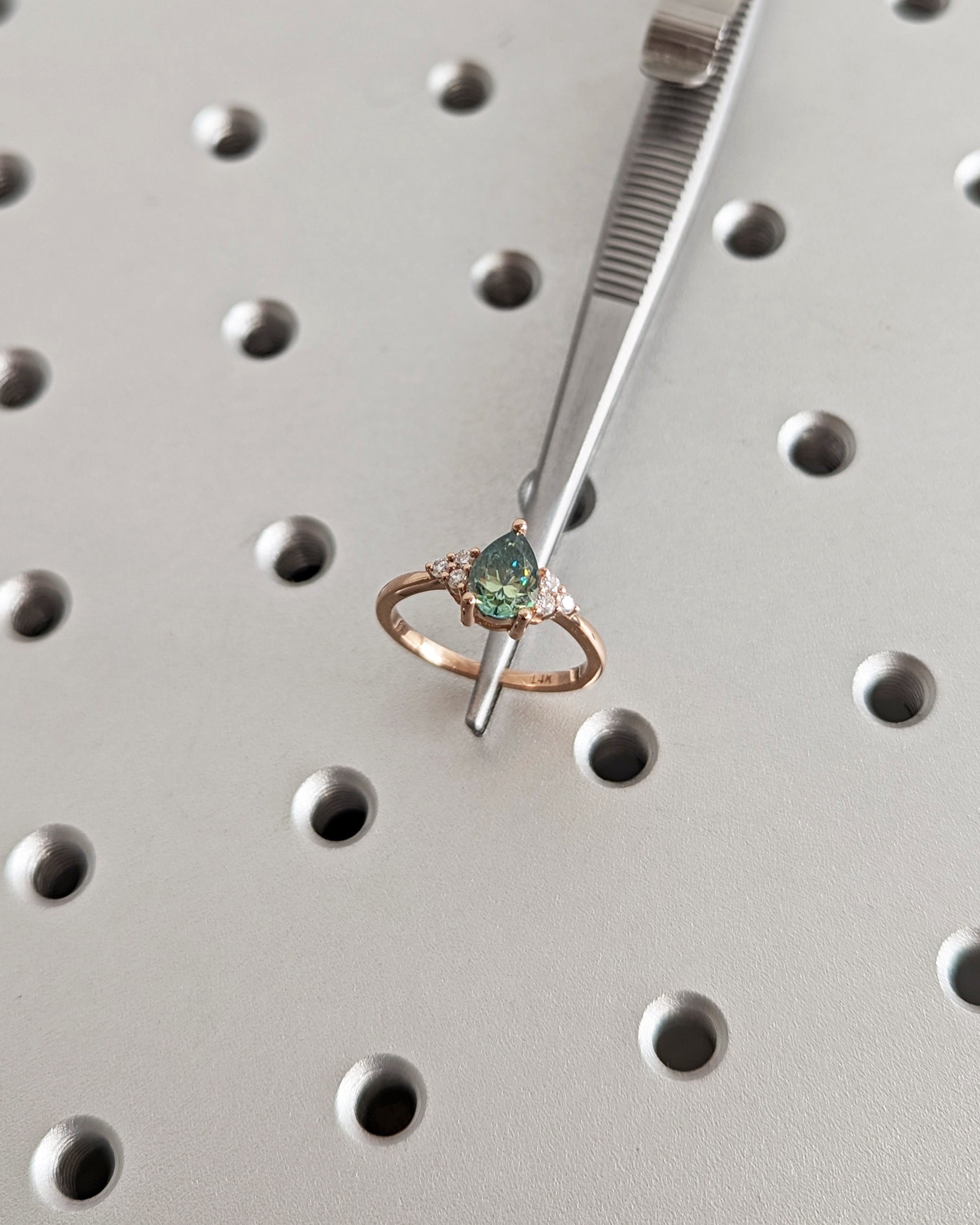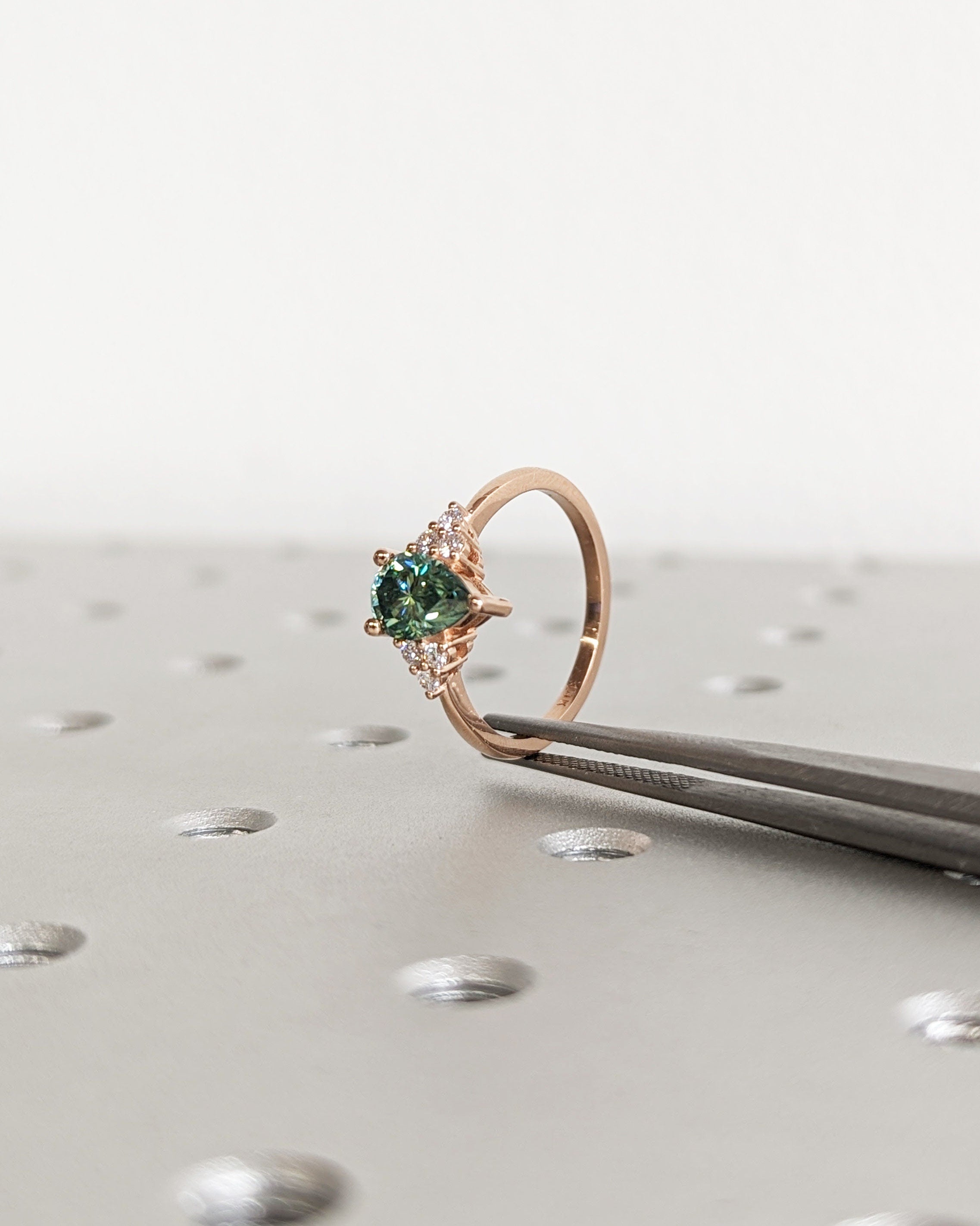 Pear Green Moissanite Engagement Ring, Heavenly Wedding Ring, Cyan Blue Moissanite Ring, Ring for Women, Anniversary Gift Ring, Cluster Ring