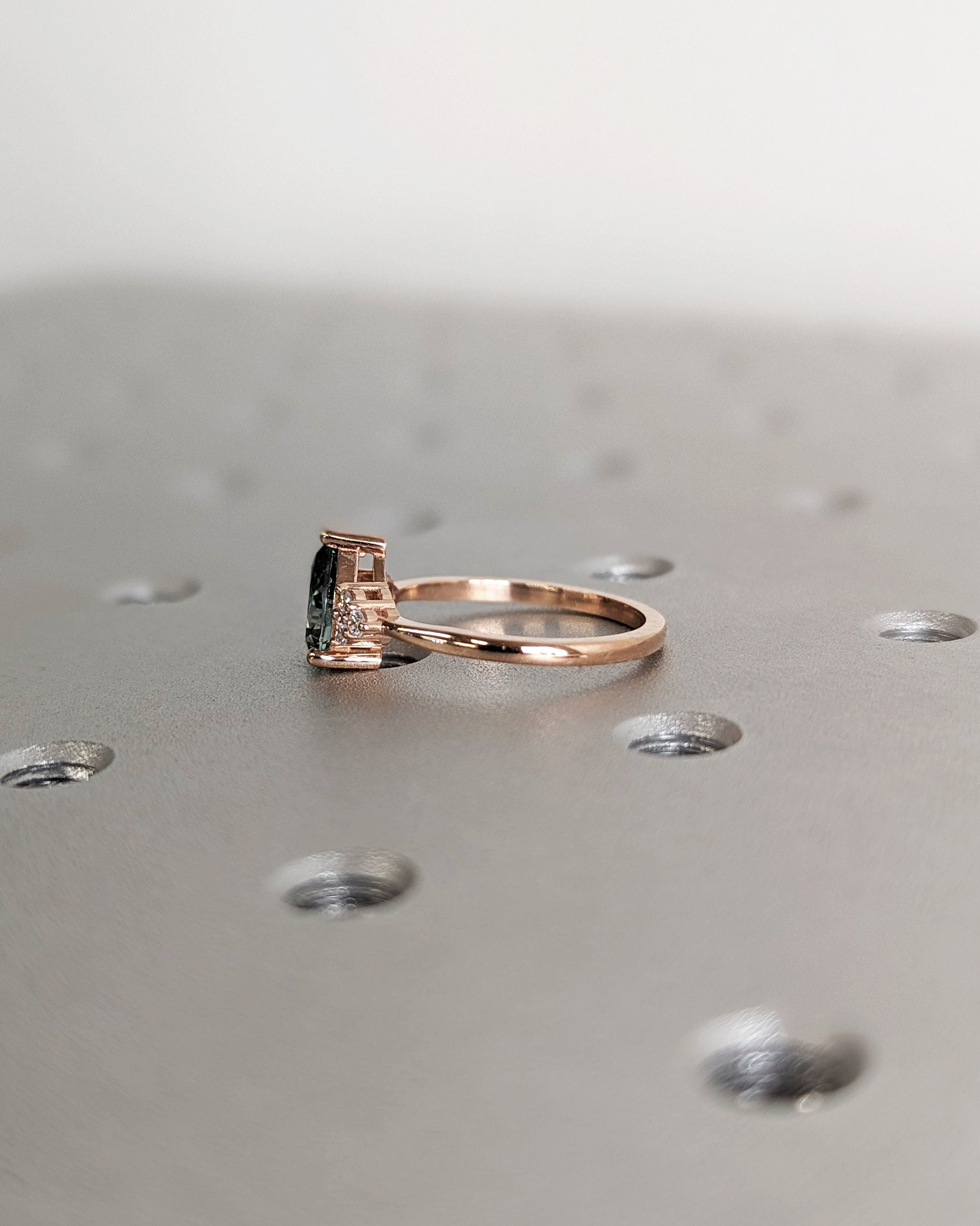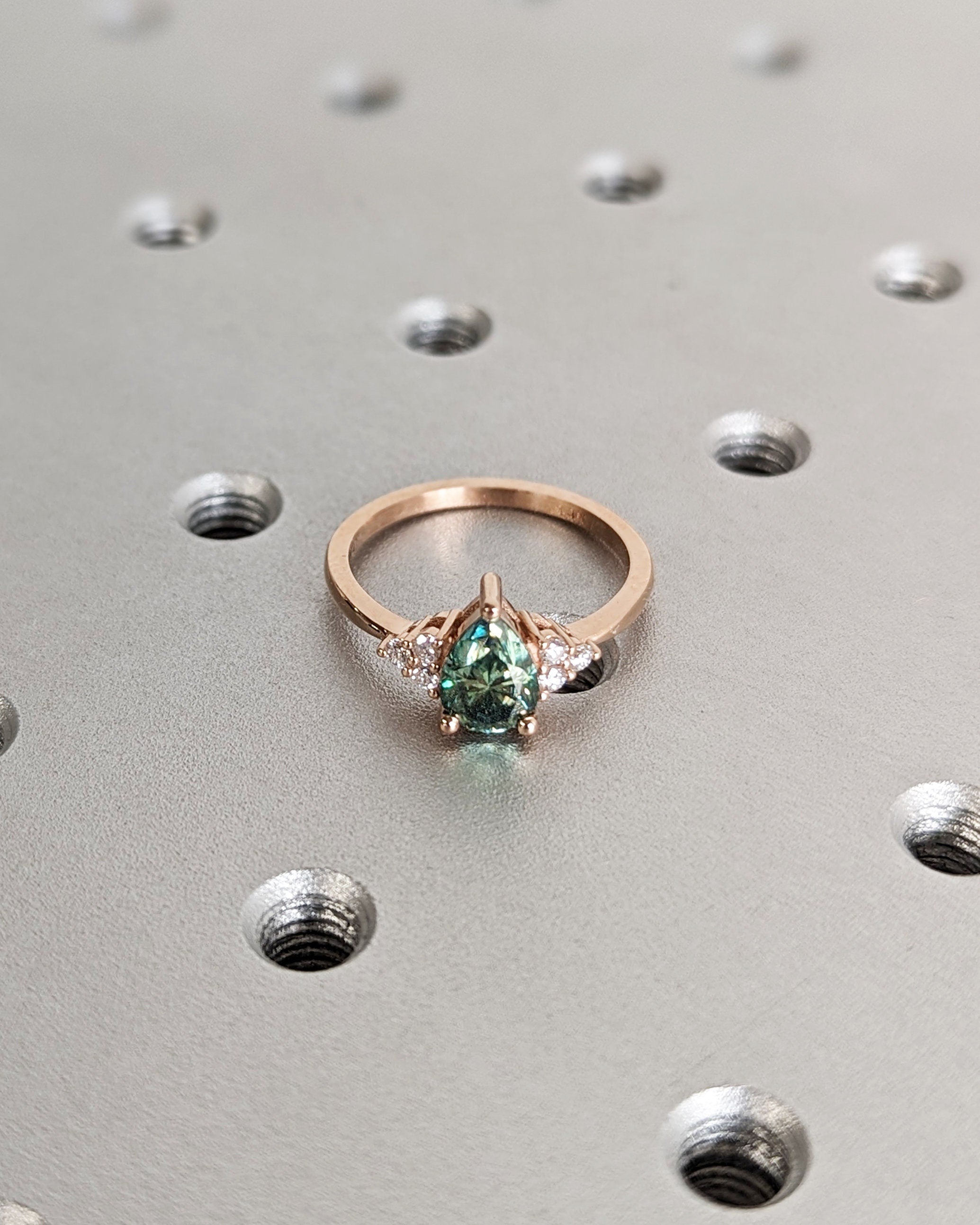 Make your love shine with our green moissanite engagement ring. A 1.6mm width setting, graced by clusters of diamonds or moissanites, creates a stunning symbol of your enduring commitment.