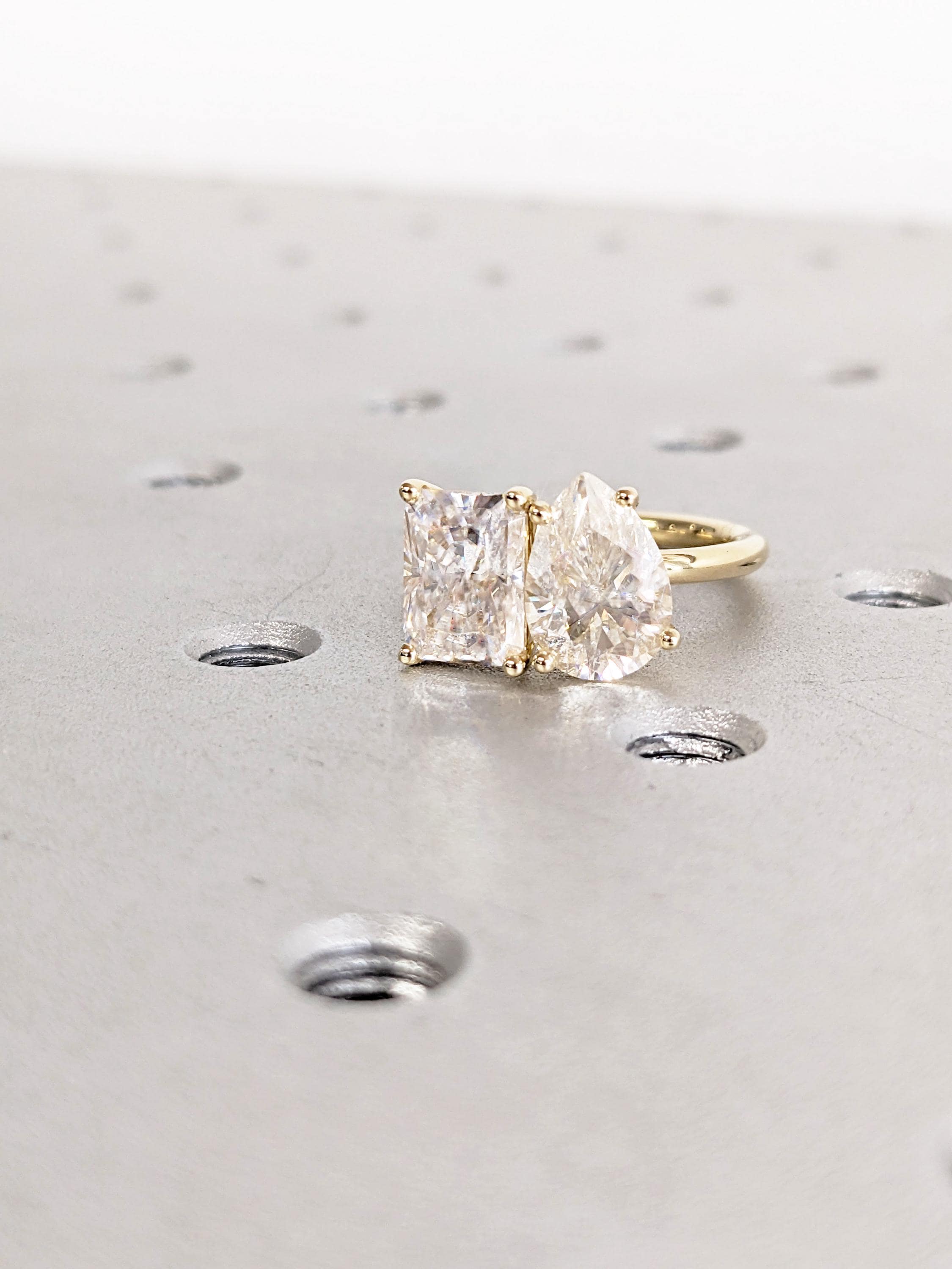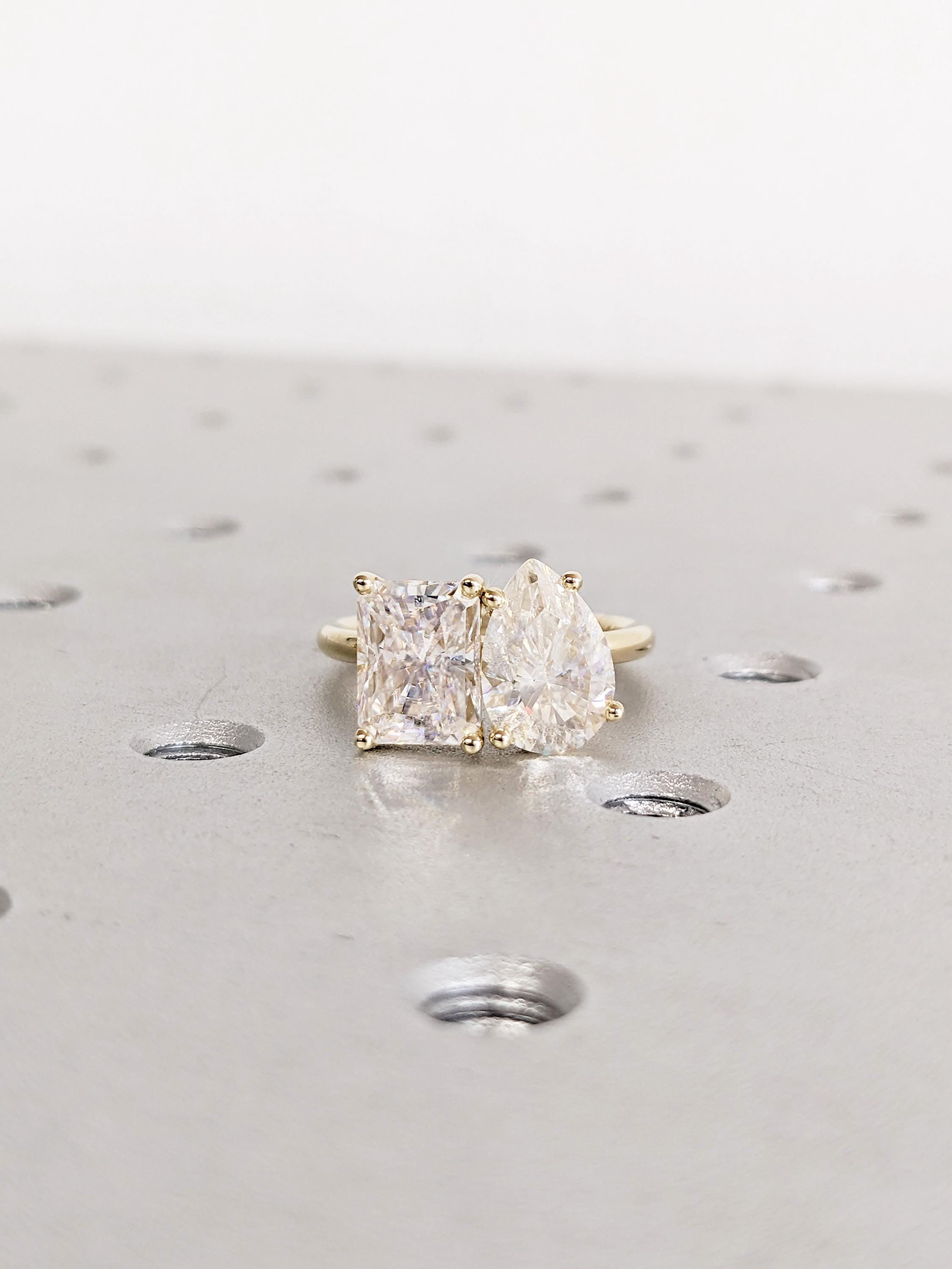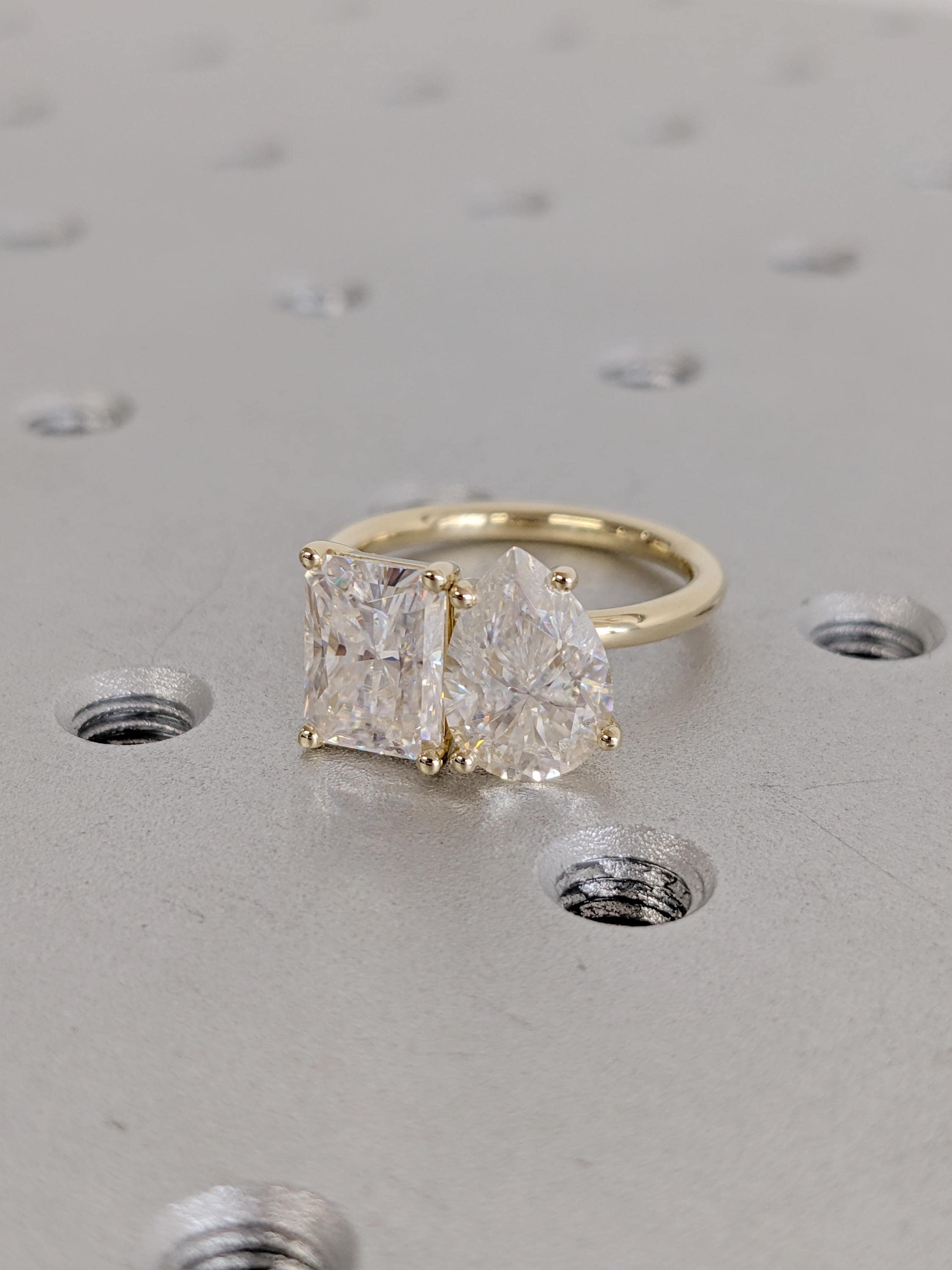 Pear & Radiant Cut Moissanite Engagement Ring, Prong Set Toi Et Moi Ring, 14K Solid Gold Two Stone Promise Ring, Double Stone Ring For Her