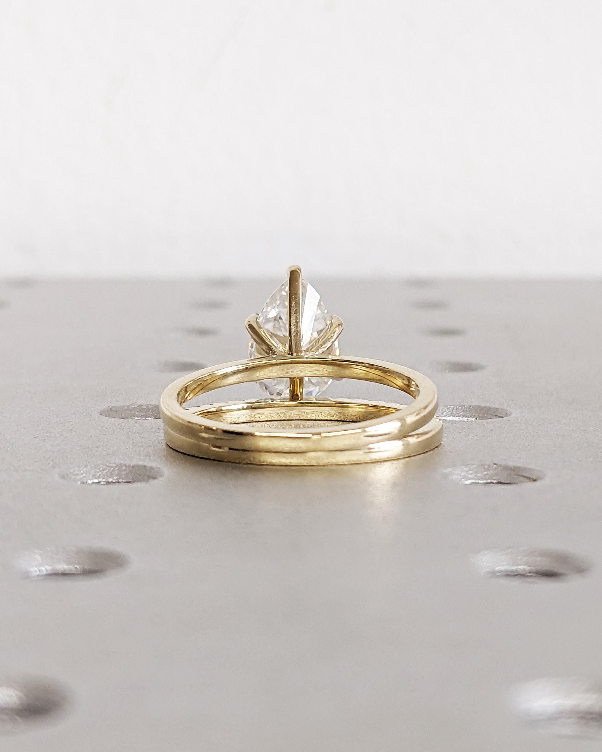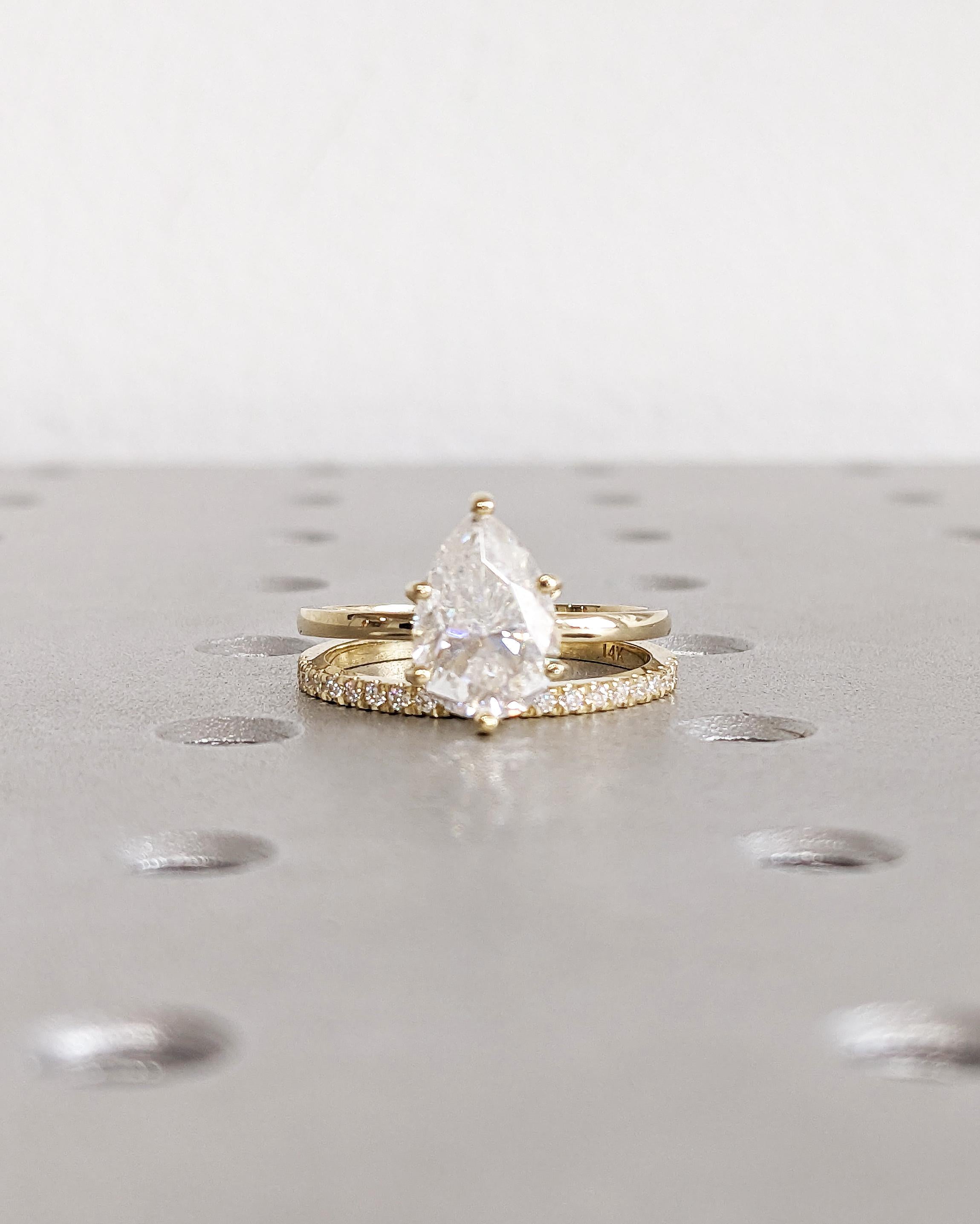Pear Shaped Lab Grown Diamond Engagement Ring Set, Teardrop Pear Solitaire Ring, Lab Diamond Wedding Band, Yellow White Rose Gold Bridal Set