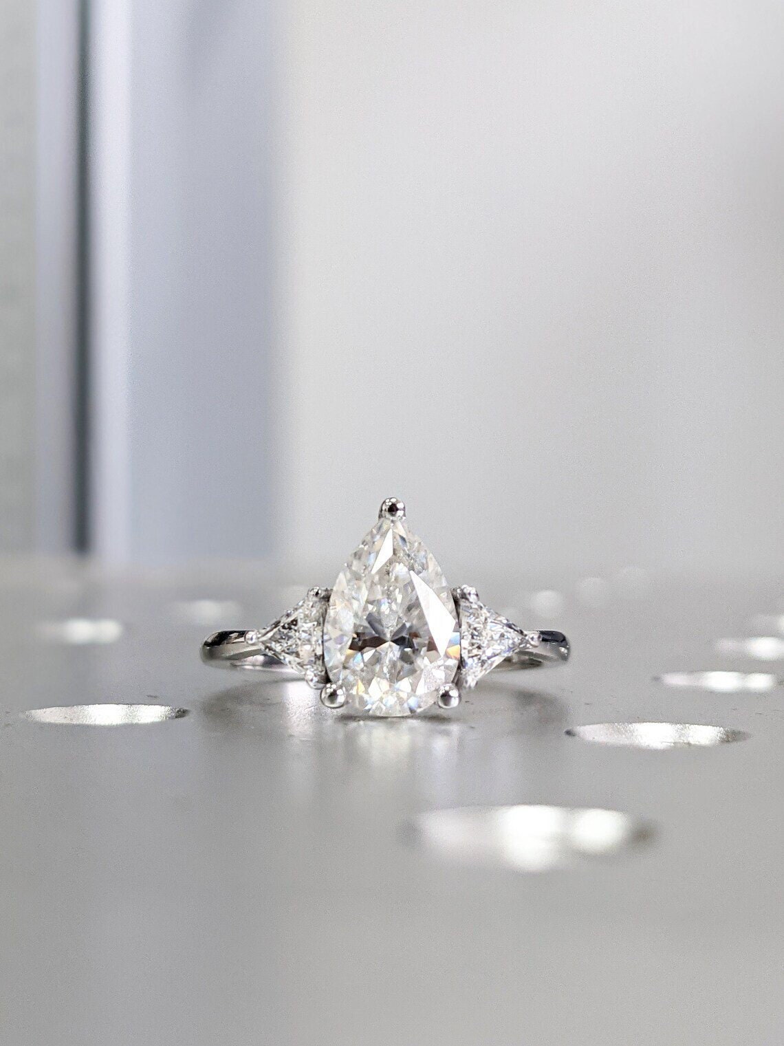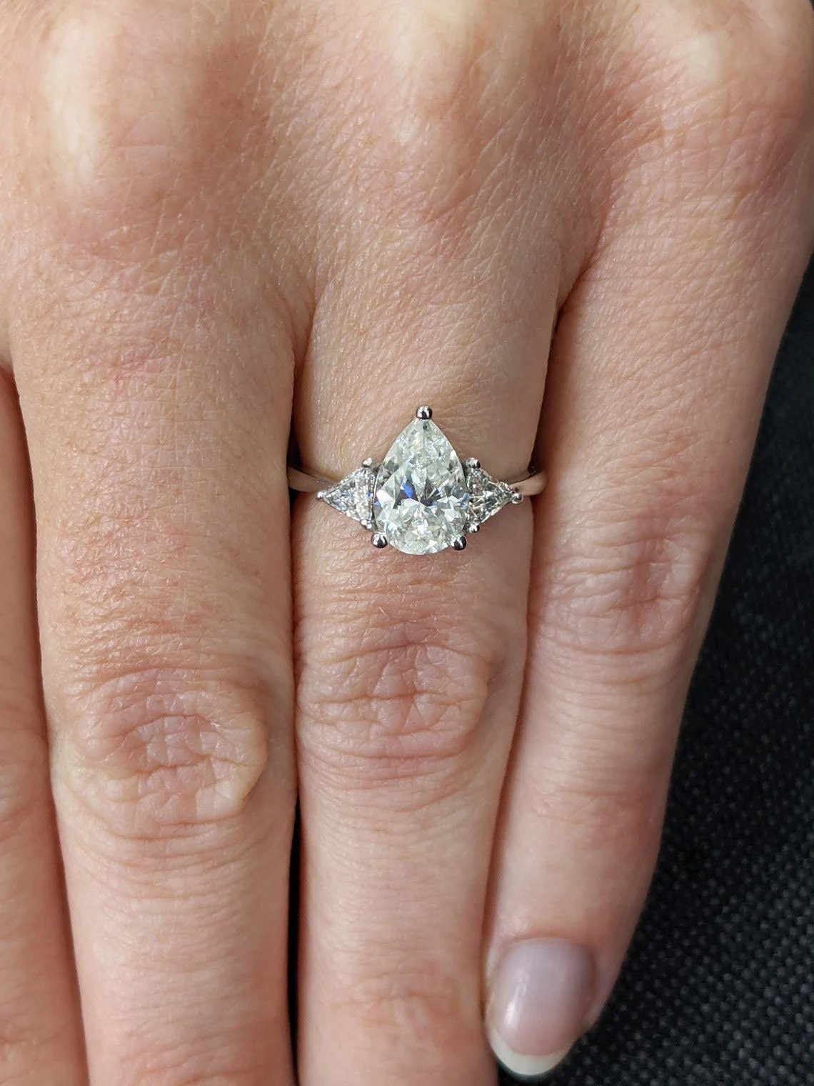 Pear shaped Moissanite engagement ring vintage Unique Trillion cut diamond Cluster engagement ring white gold wedding Bridal gift for women