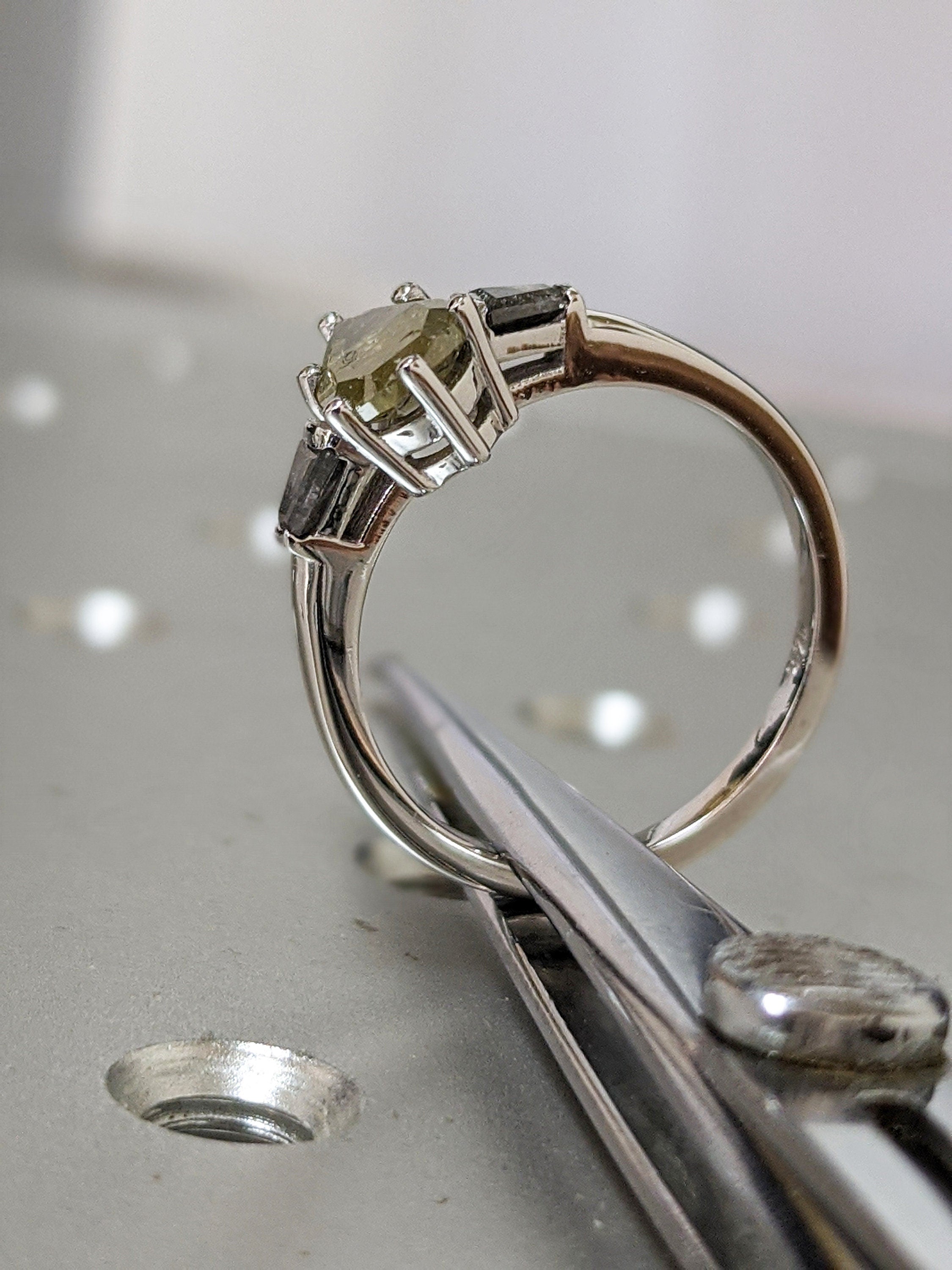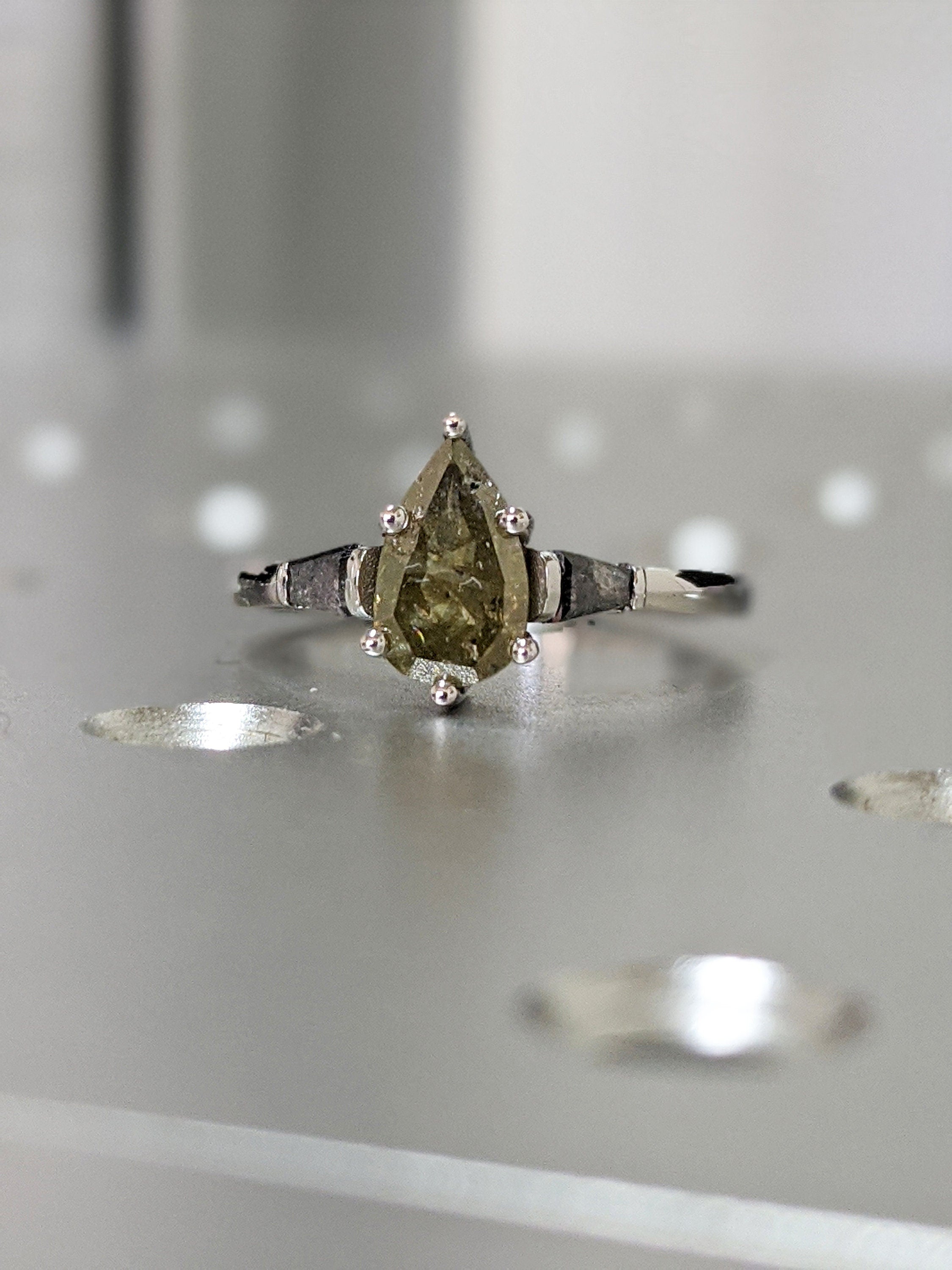 - ~1ct Pear Shape Grey Green Golden Salt & pepper Diamond center
