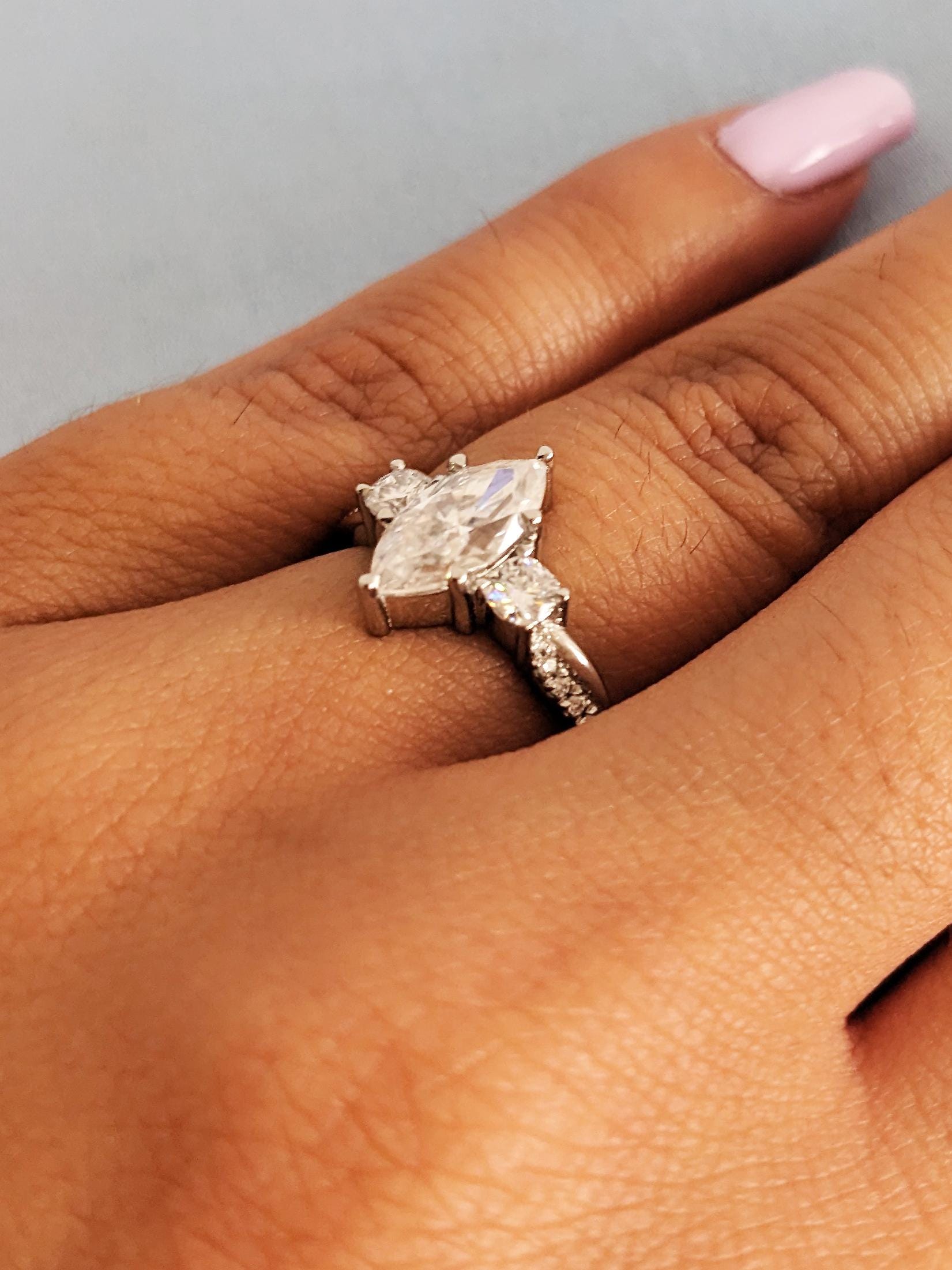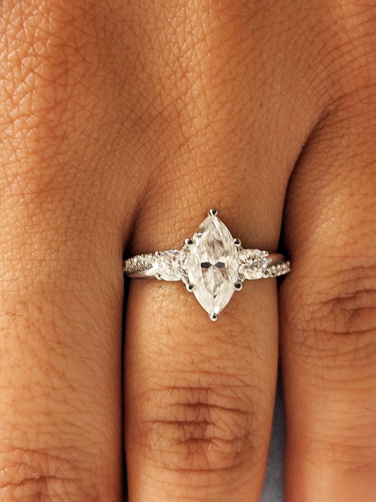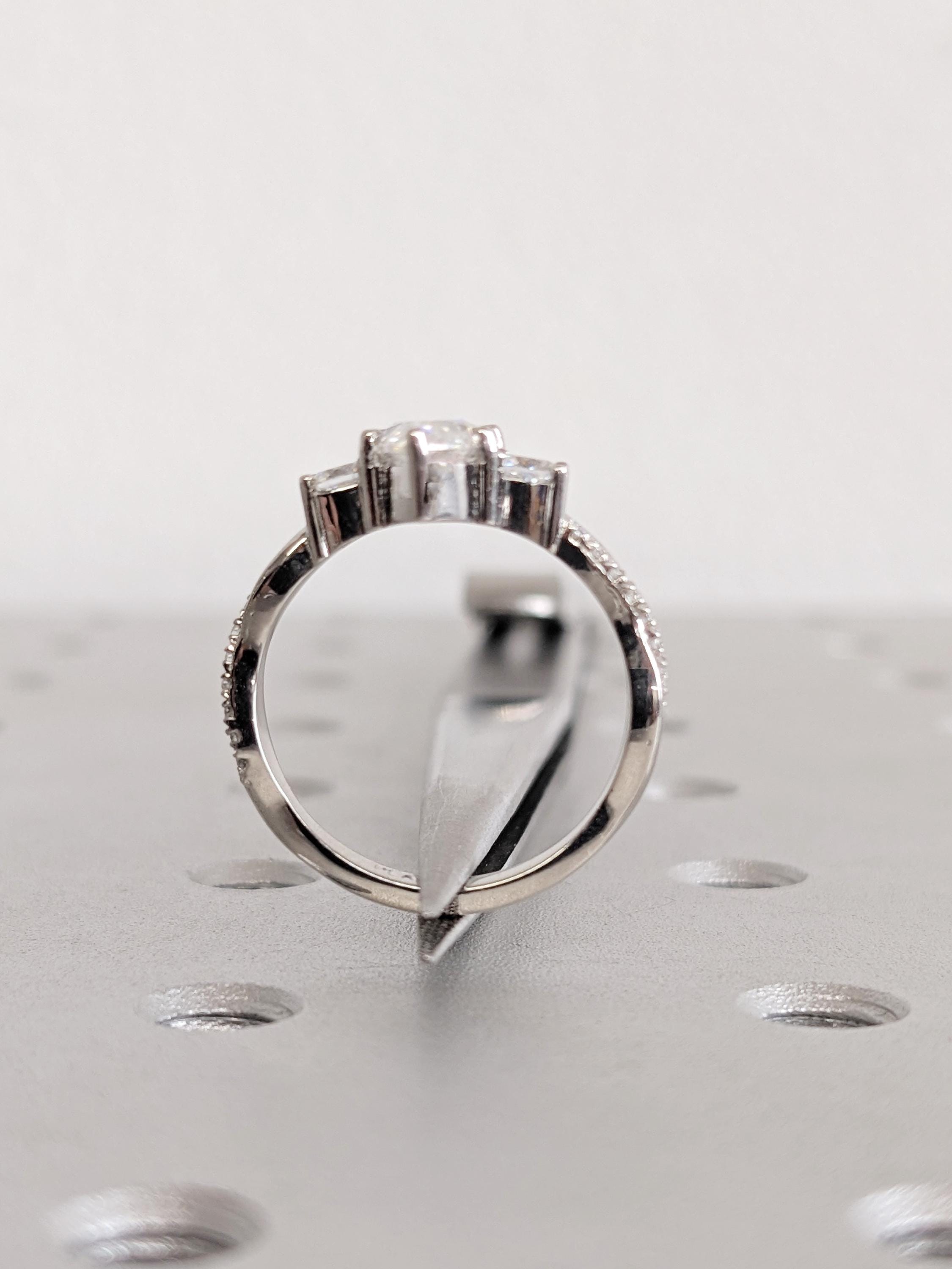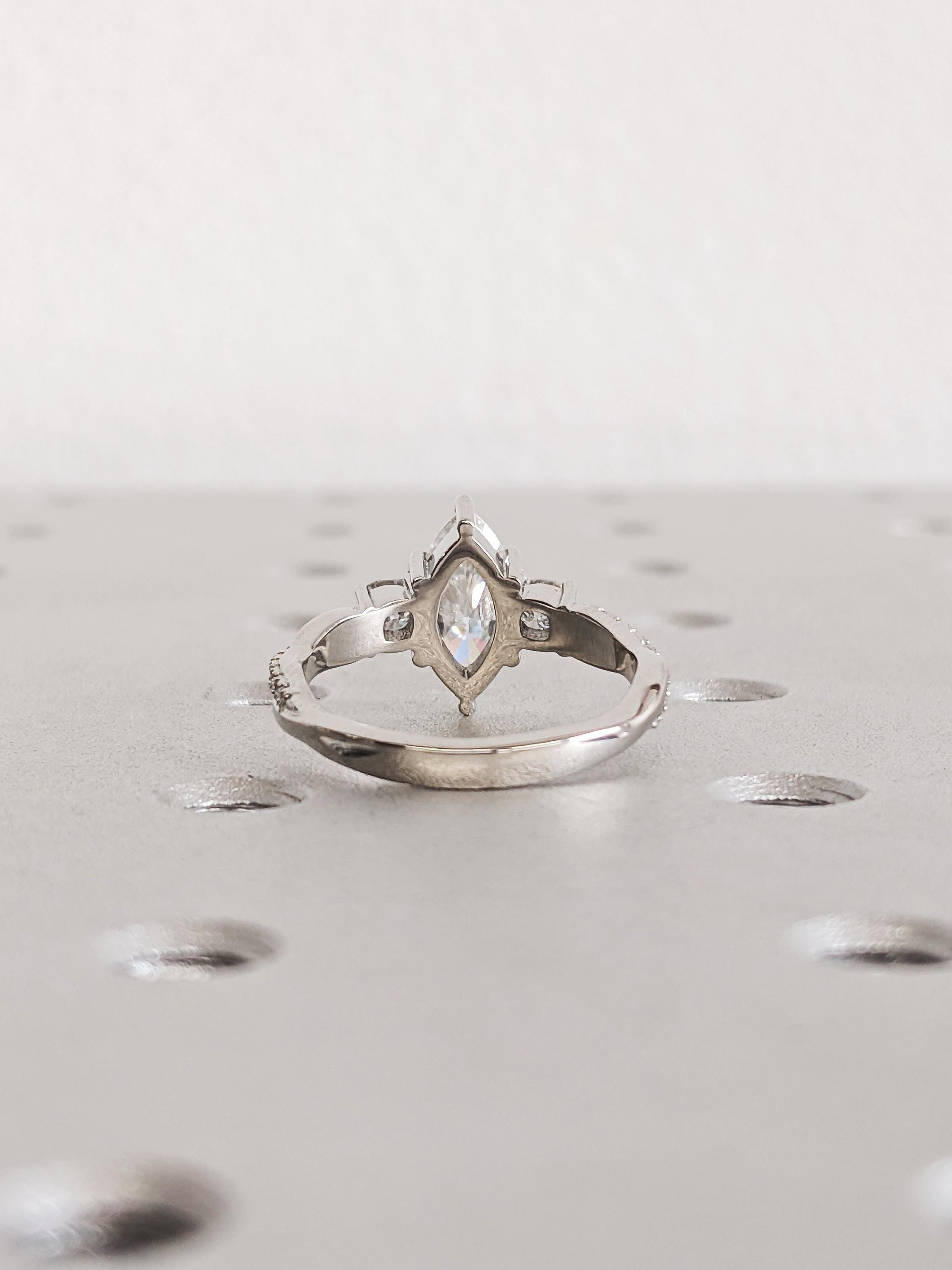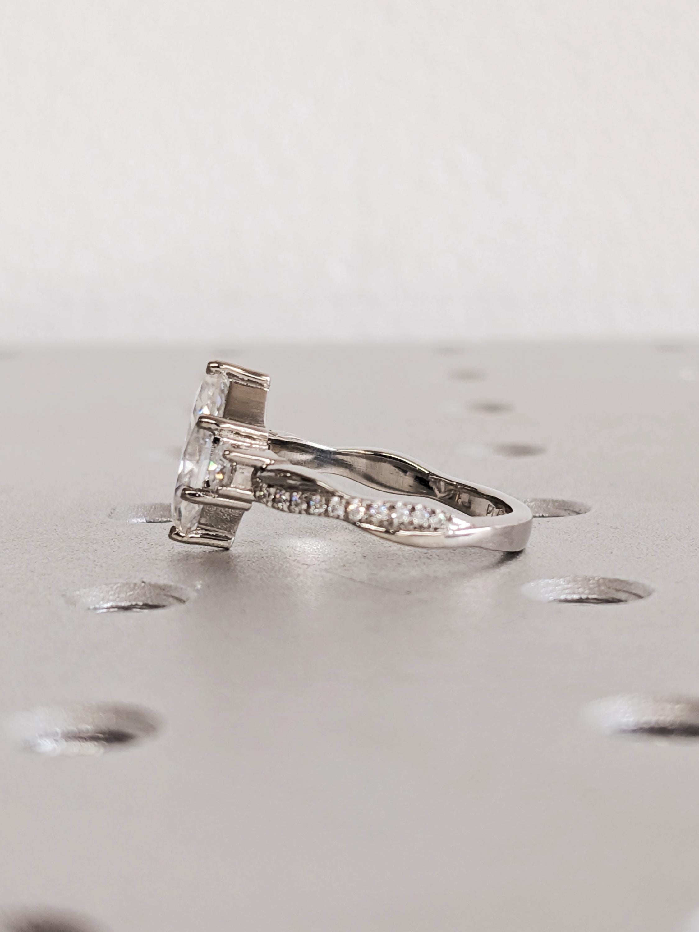 Platinum Marquise Cut Lab Diamond Spiral Engagement Ring, Three Stone Twisted Platinum Band, Women's Wedding Jewelry