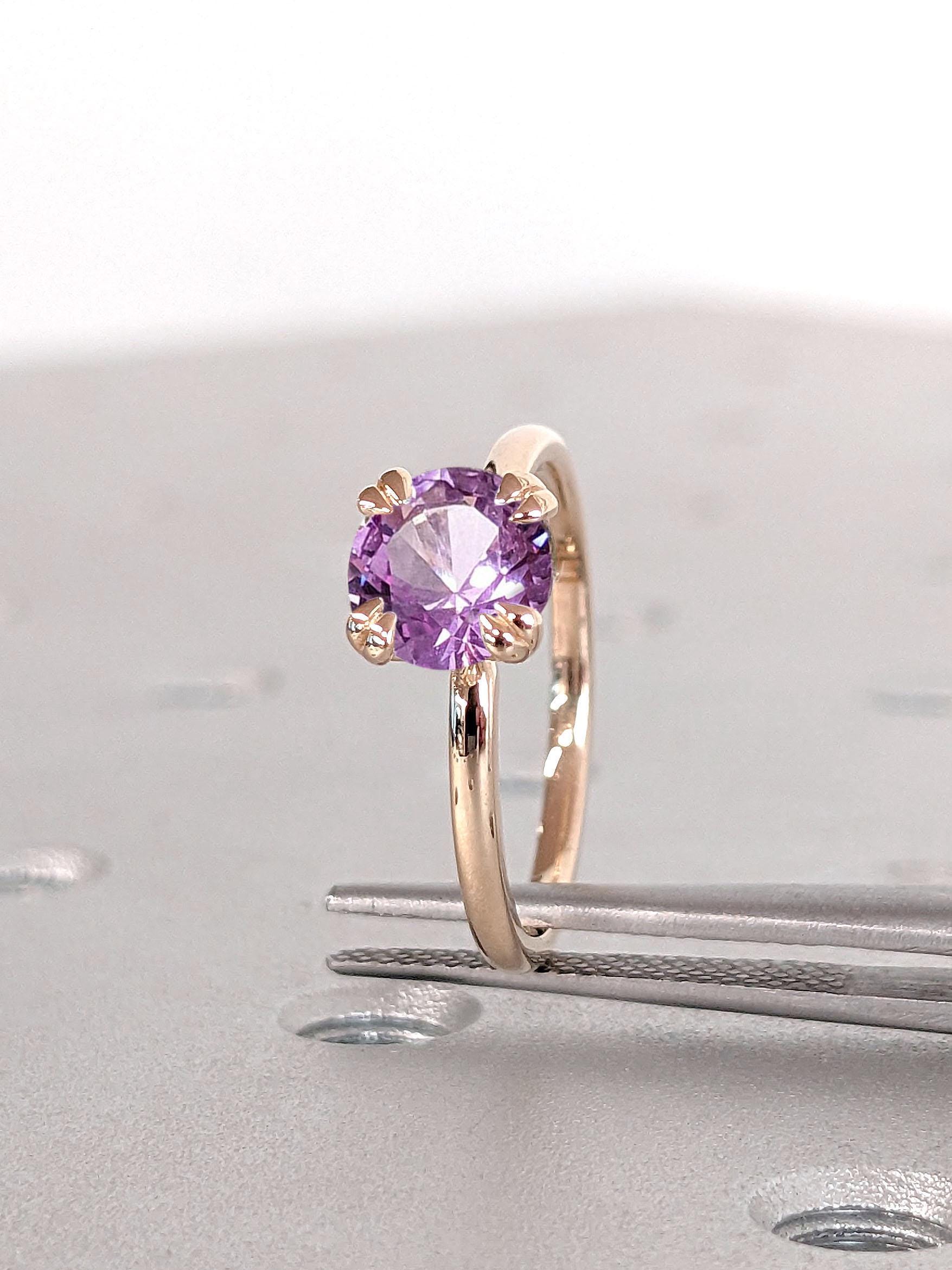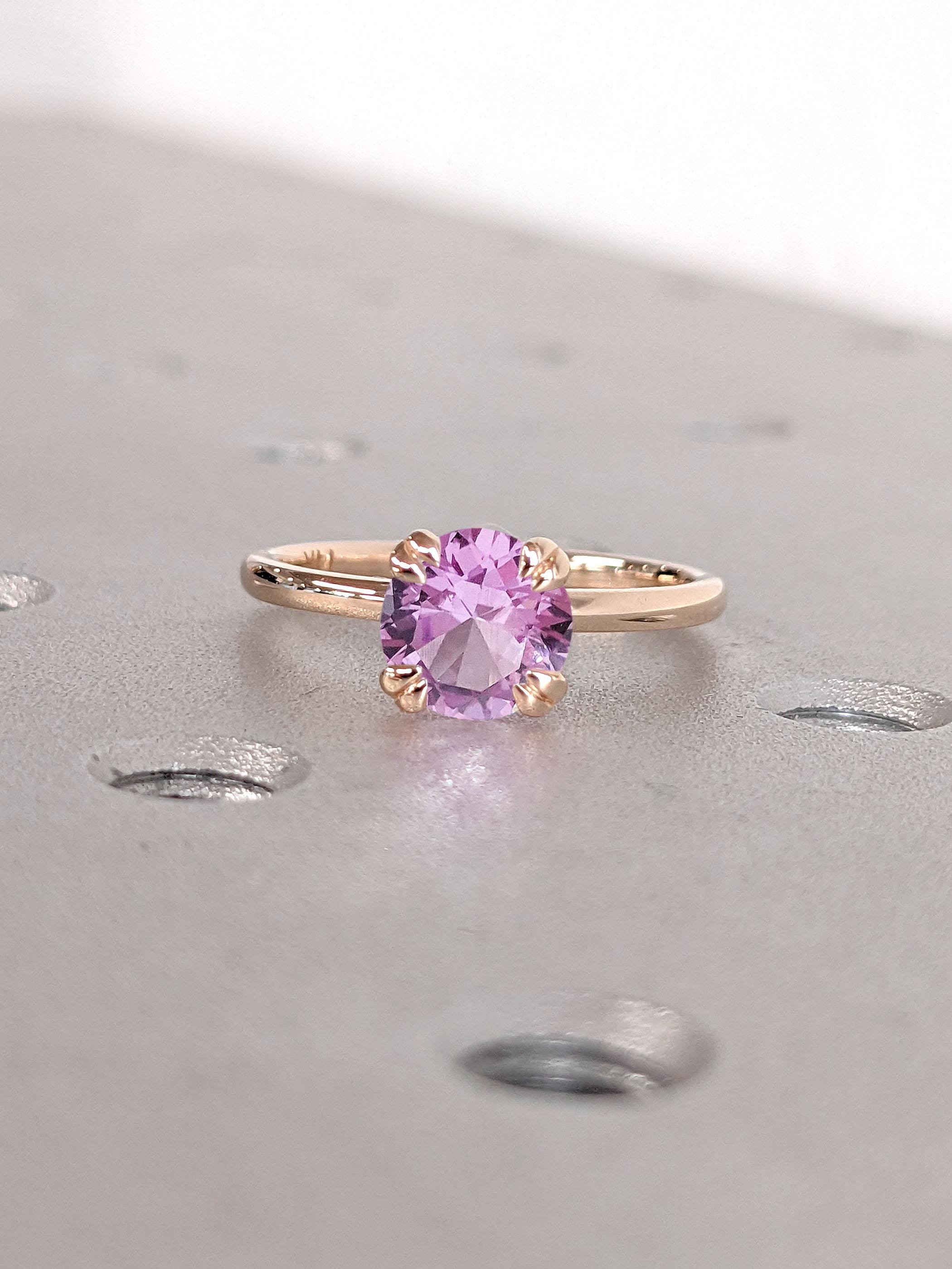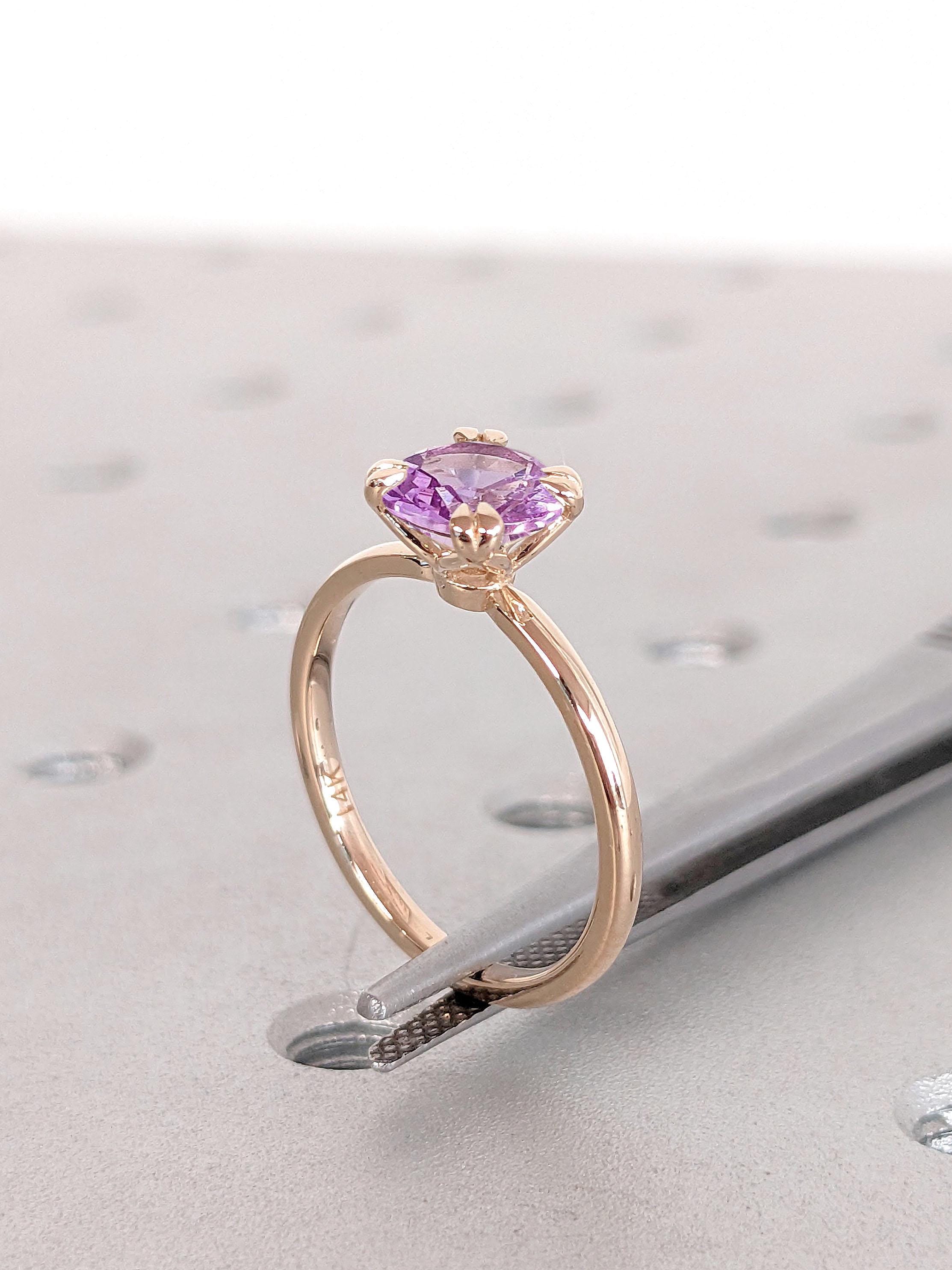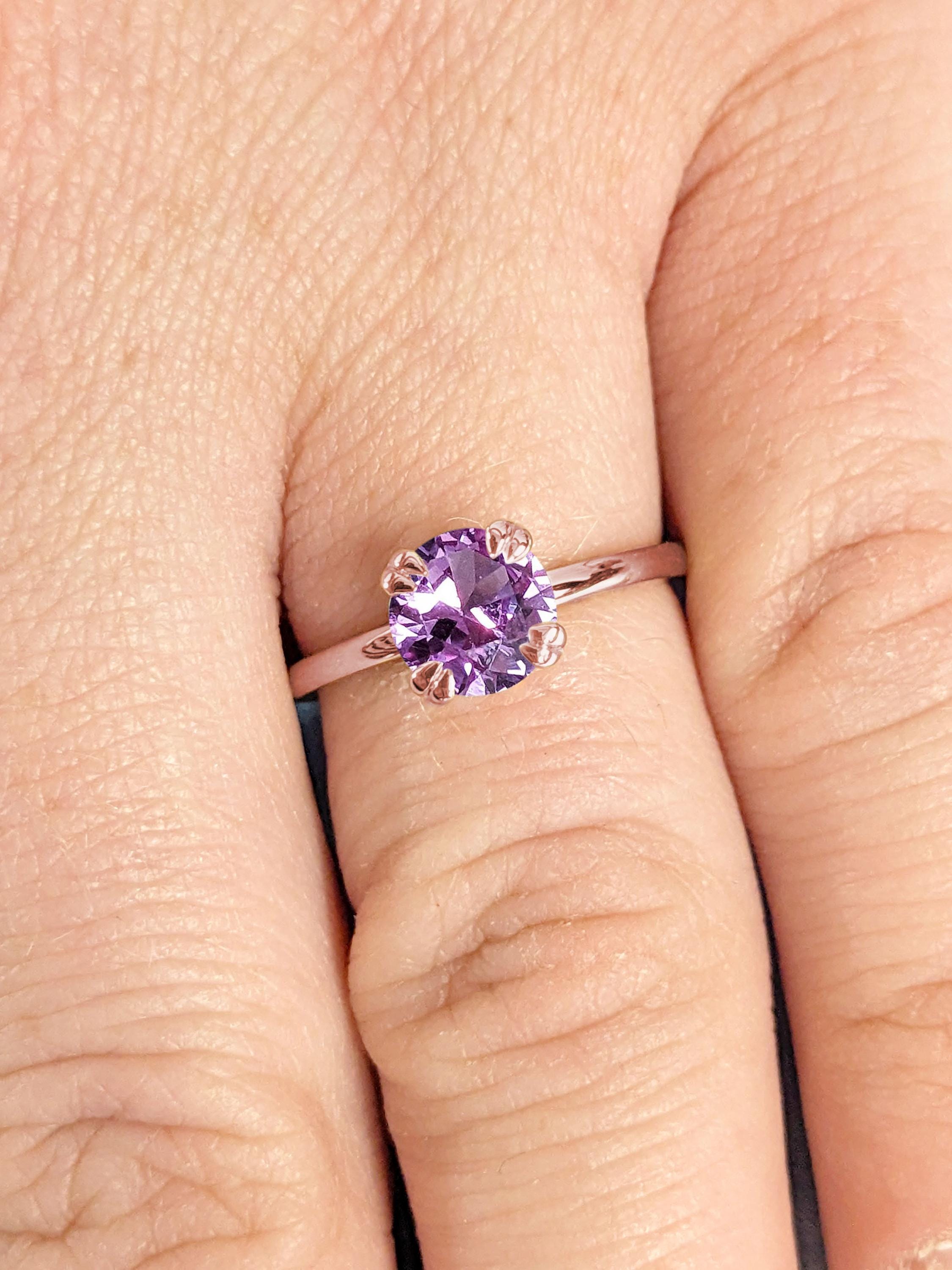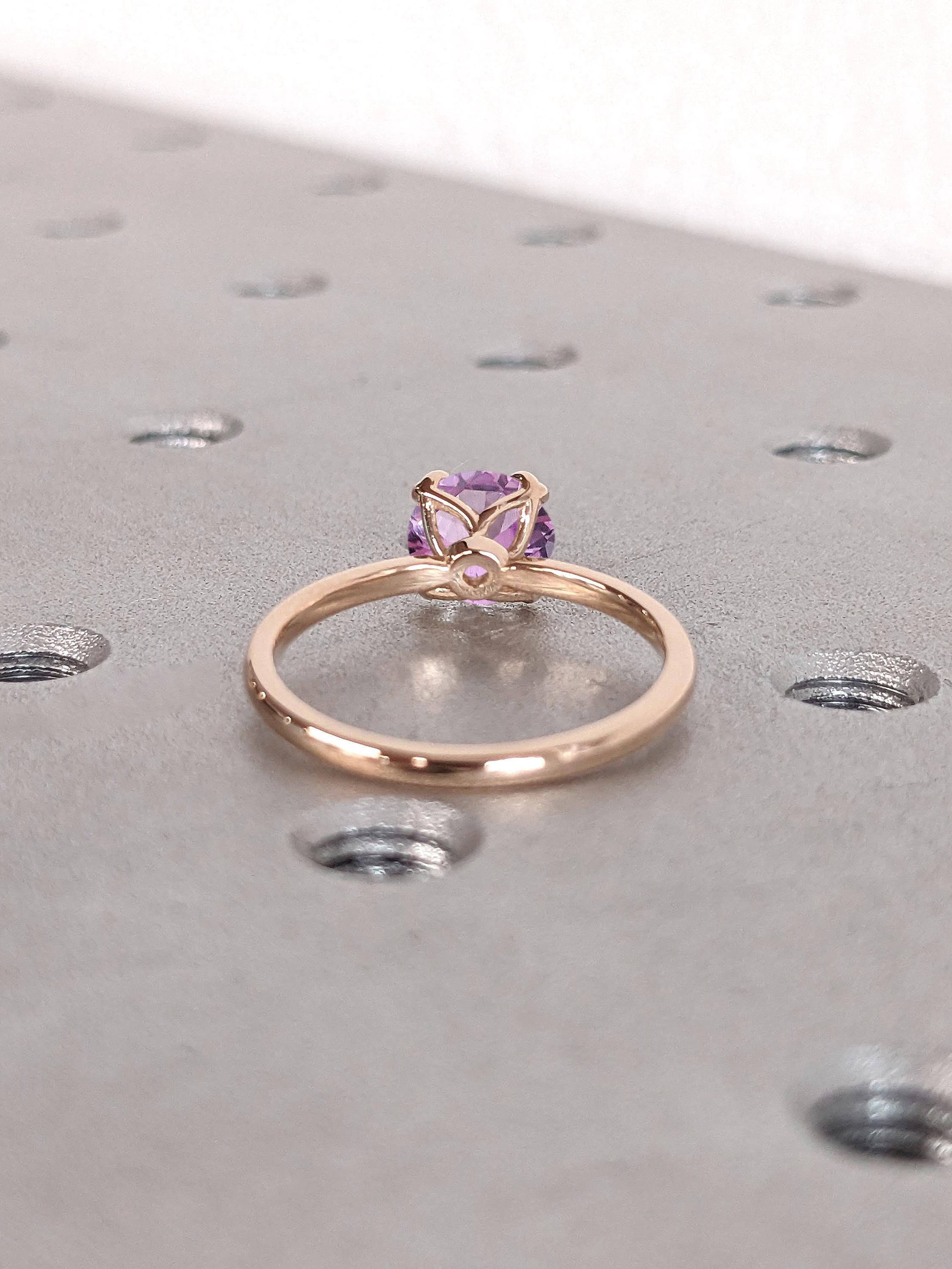 Purple Alexandrite Gemstone Ring | Solitaire Round Engagement Ring | Round Lab Alexandrite Wedding Ring for Her | Minimalist Thin Gold Ring