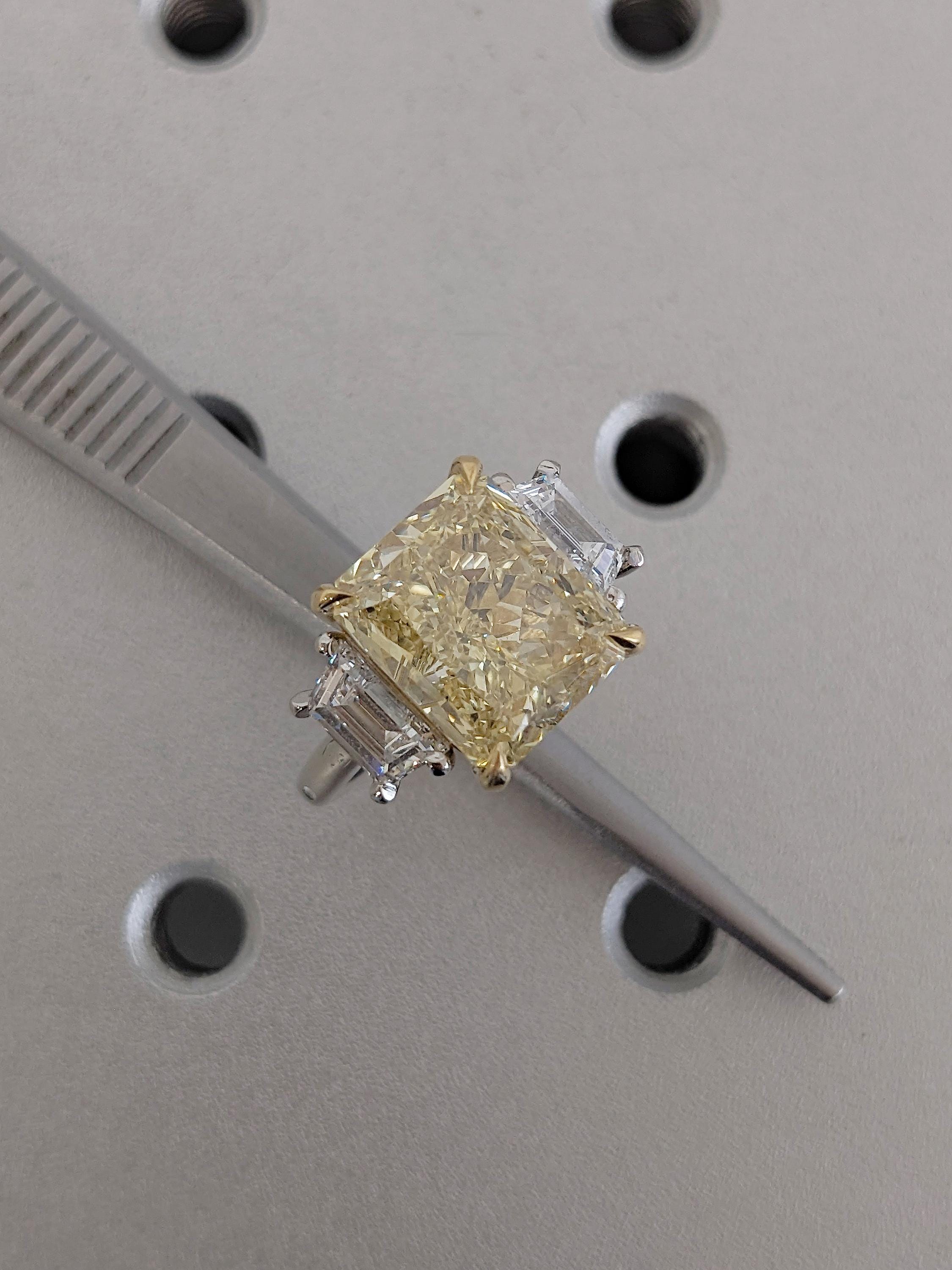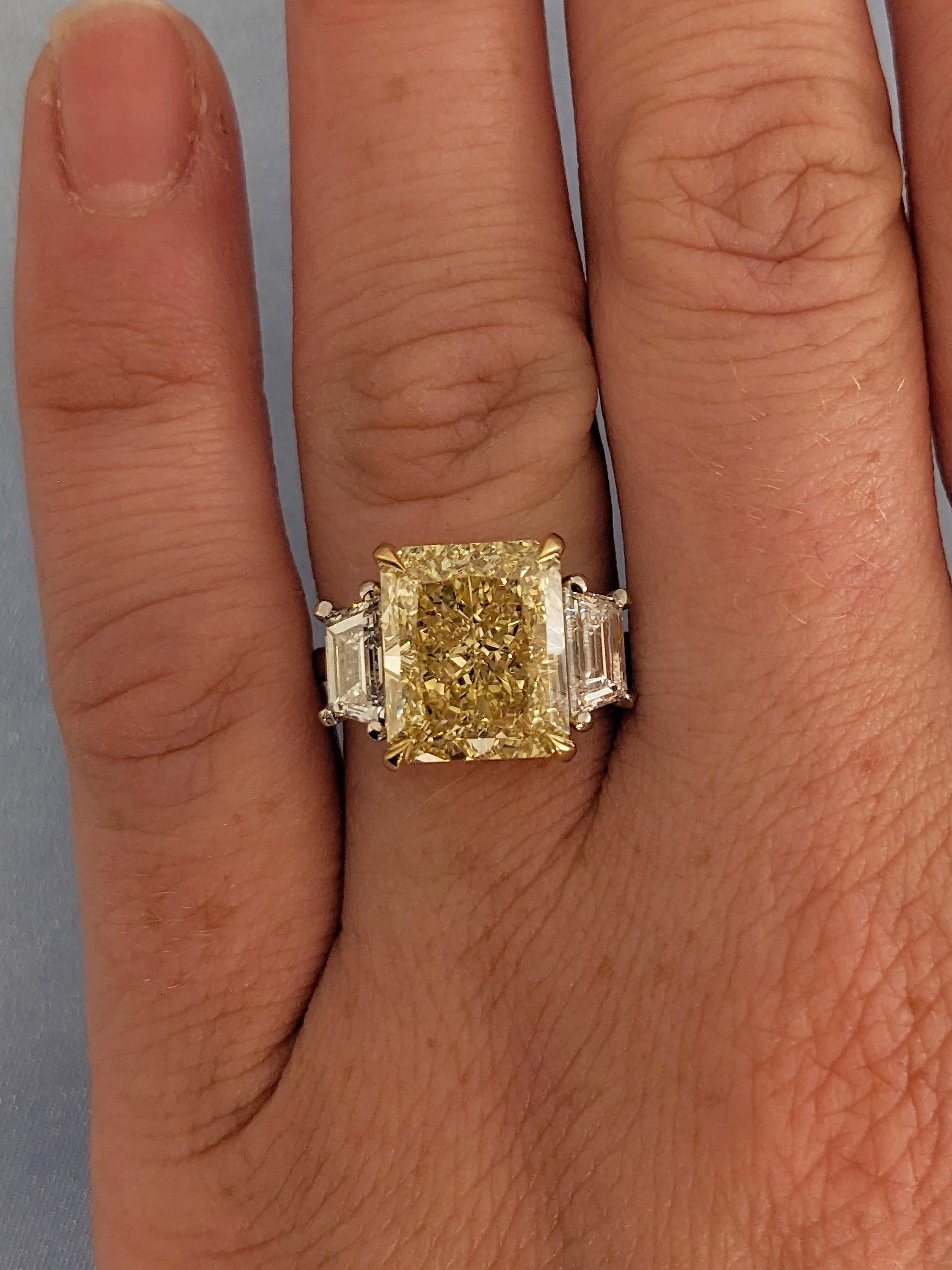 Radiant Cut Yellow Lab Diamond Ring, Platinum, Solid Gold Two Toned Ring