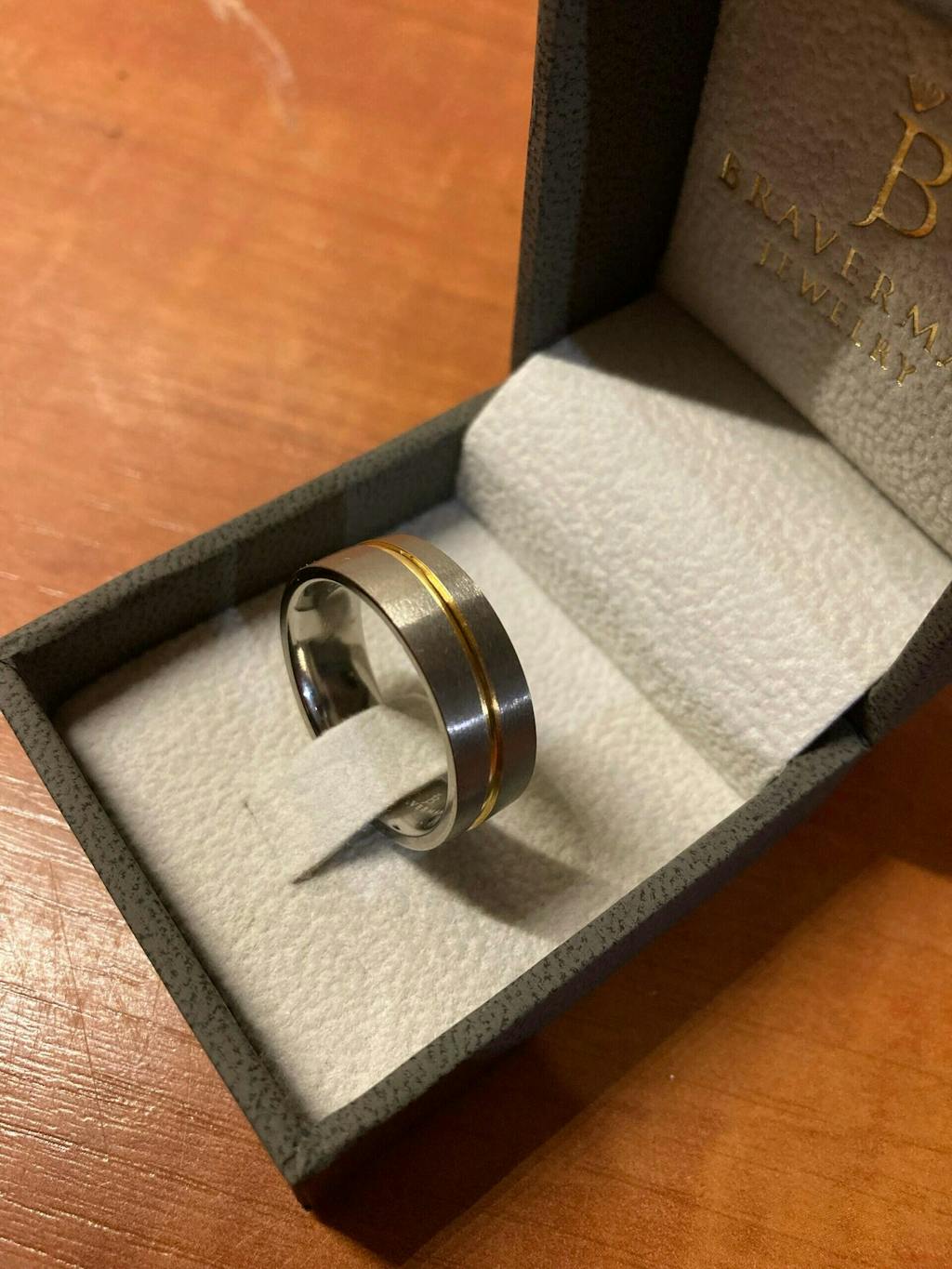 Titanium Brushed With Laser Groove Filled With Gold Ring 6mm FREE Laser Engraving