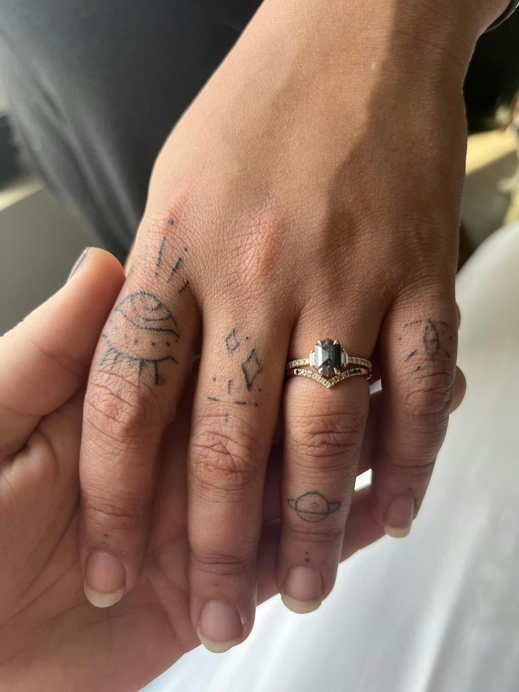 Raw Diamond Hexagon Baguette Diamond, Salt and Pepper, Unique Engagement Ring, Rose Cut Geometric Diamond Ring, 14k Gold, Custom Handmade