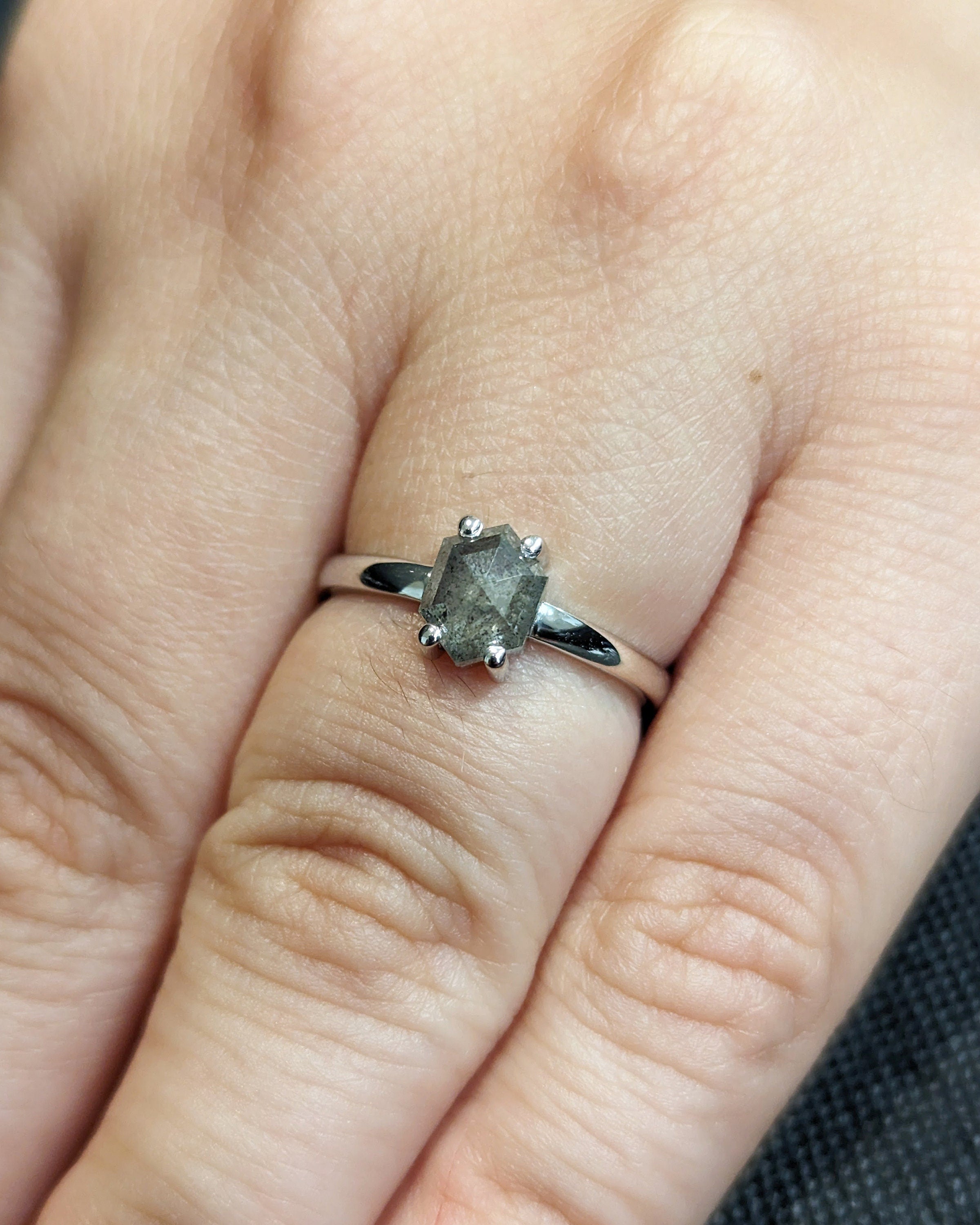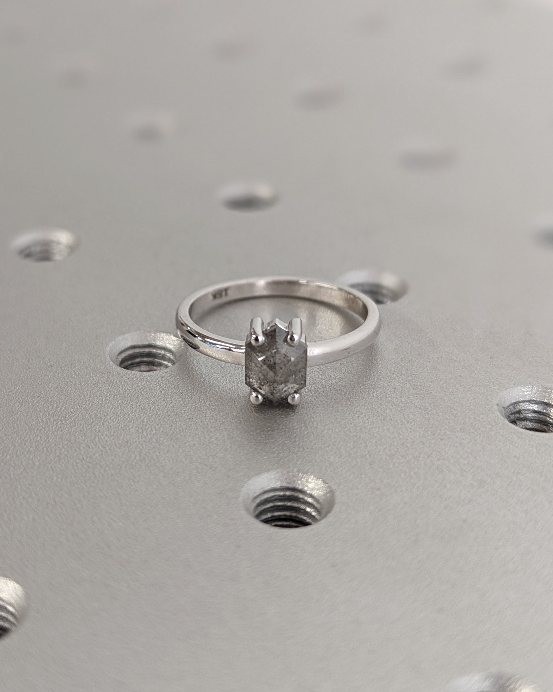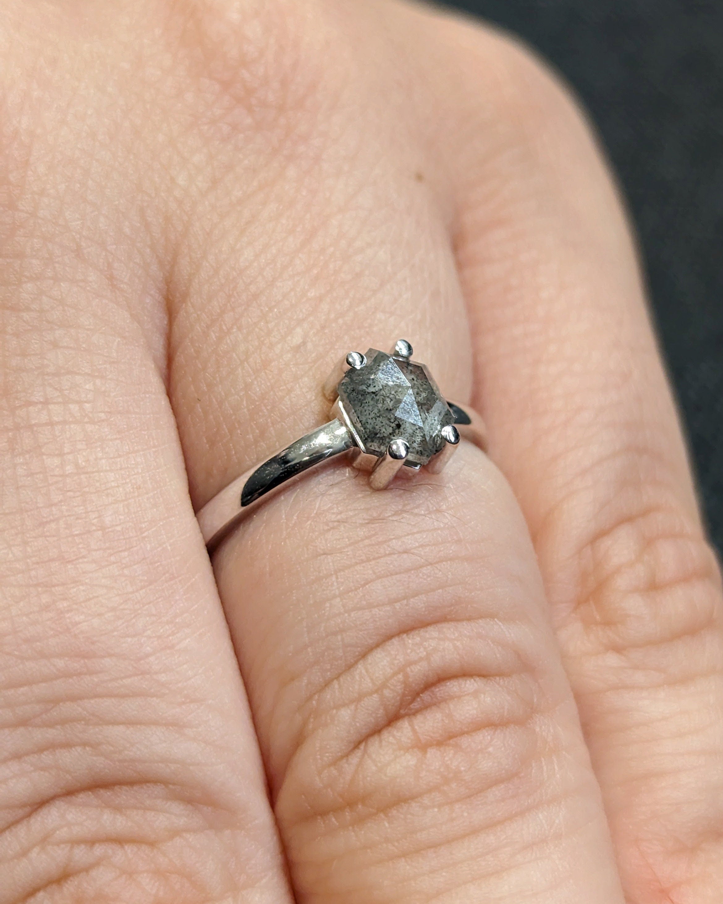 Raw Diamond Hexagon Diamond, Salt and Pepper, Unique Engagement Ring, Geometric Diamond Ring, 14k Gold, Custom Handmade, Classic Solitaire