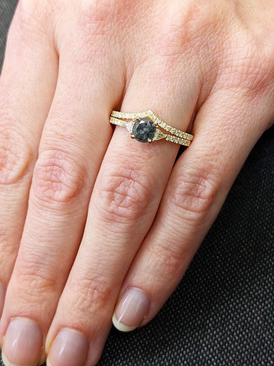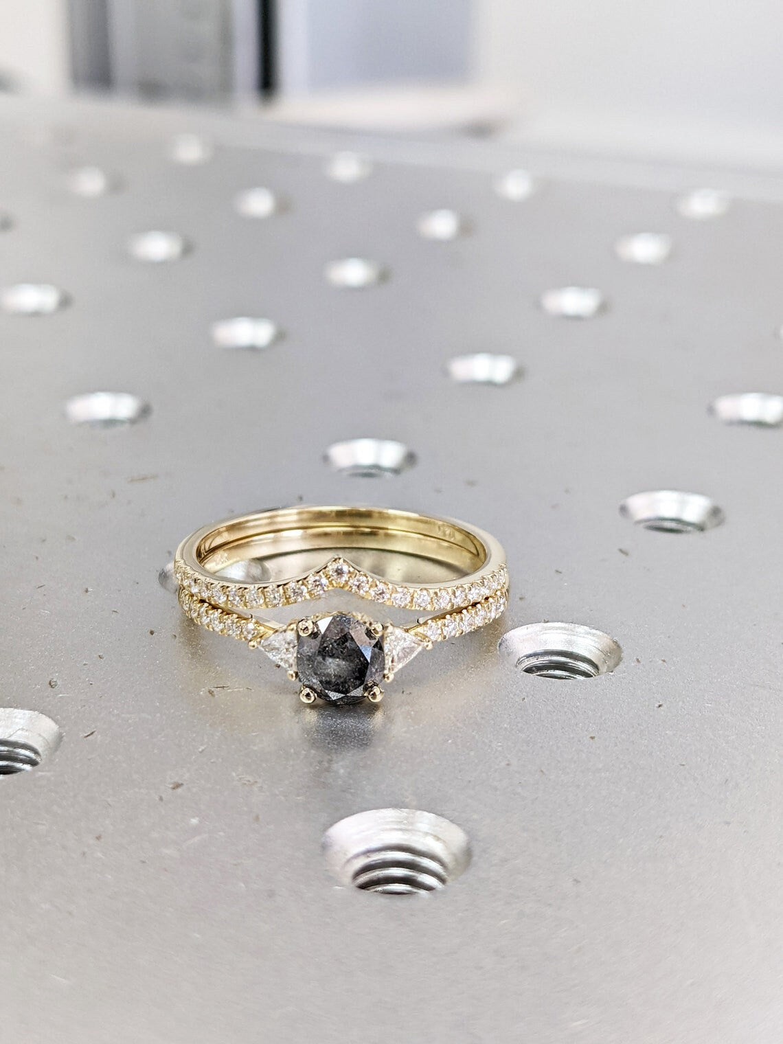 Raw Diamond Round Triangle Diamond, Salt and Pepper, Unique Engagement Ring, Rose Cut Geometric Diamond Ring, 14k Gold, Custom Handmade