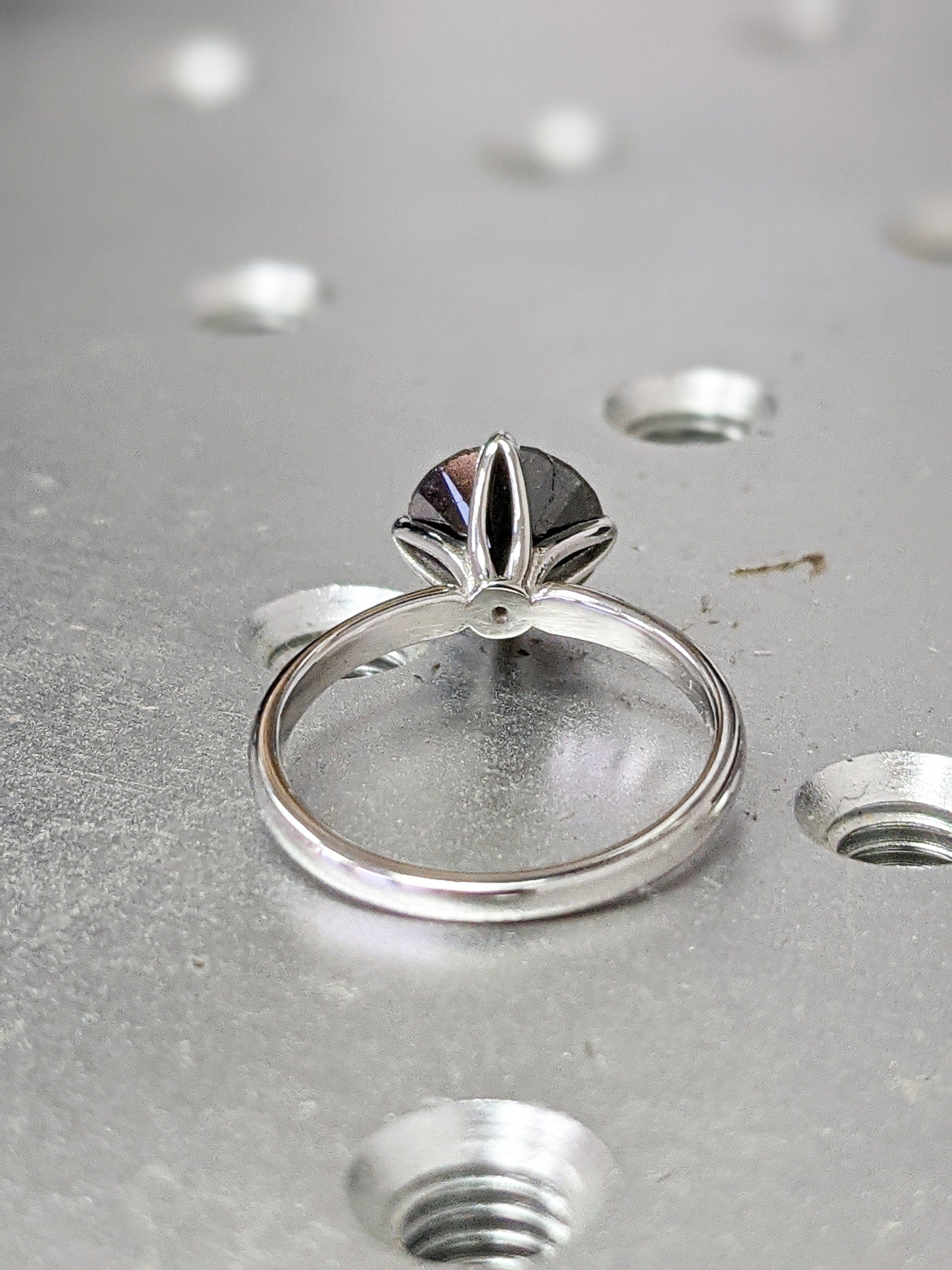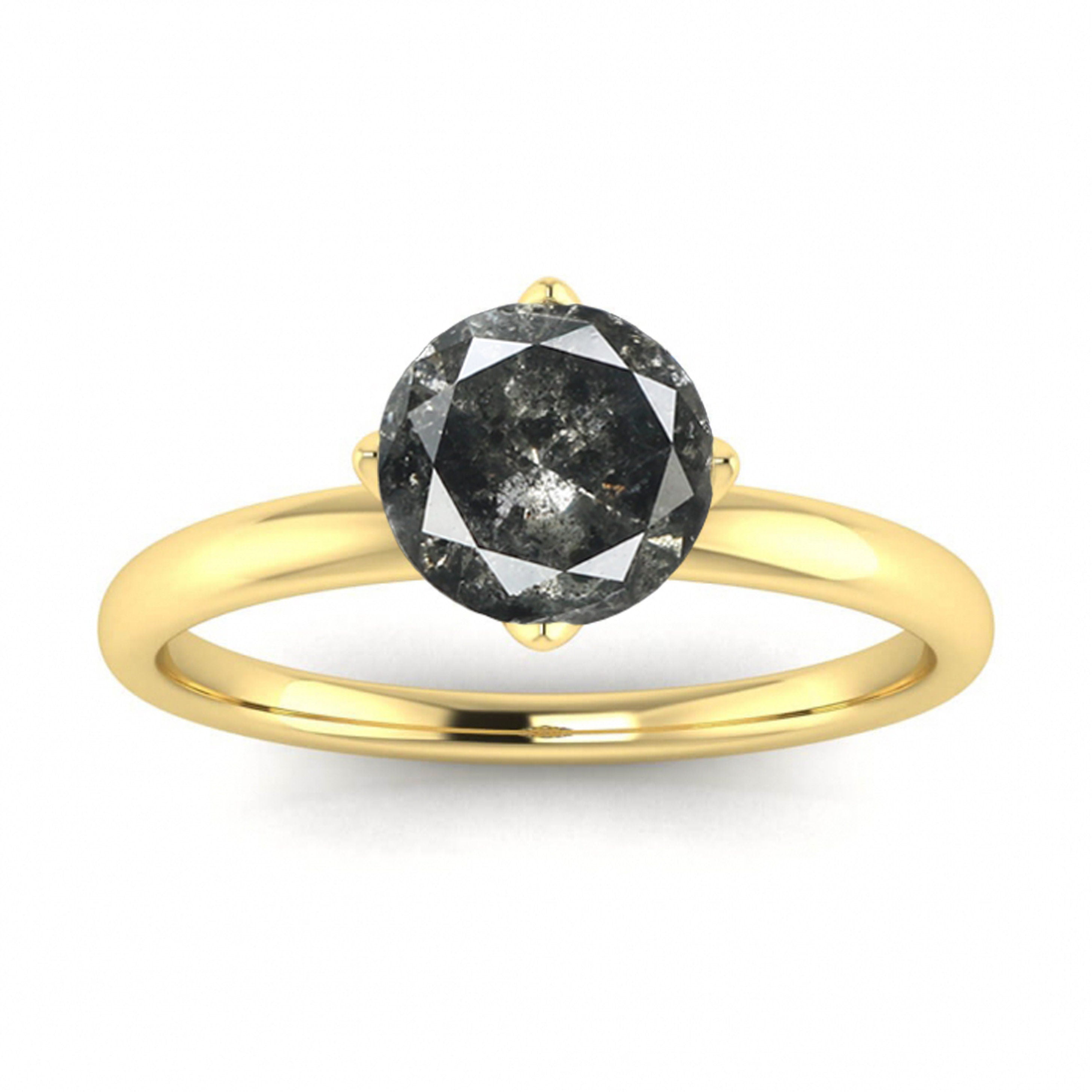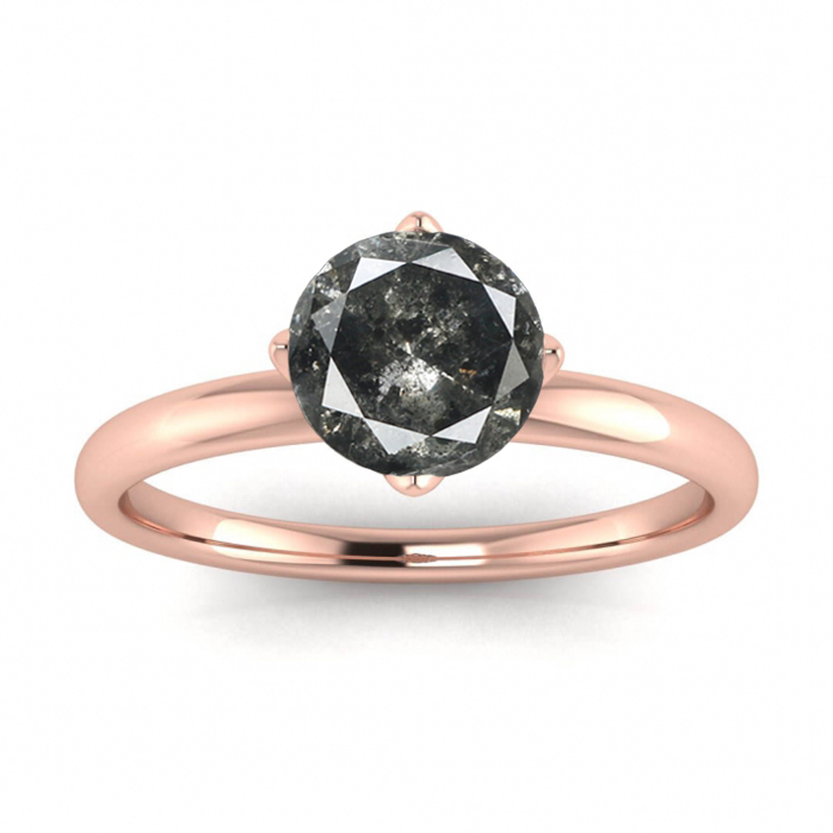 Raw Salt And Pepper Diamond Ring White Gold Solitaire Salt And Pepper Diamond Flower Ring, Delicate Bridal Set, Tulip Flower Setting, Ellis