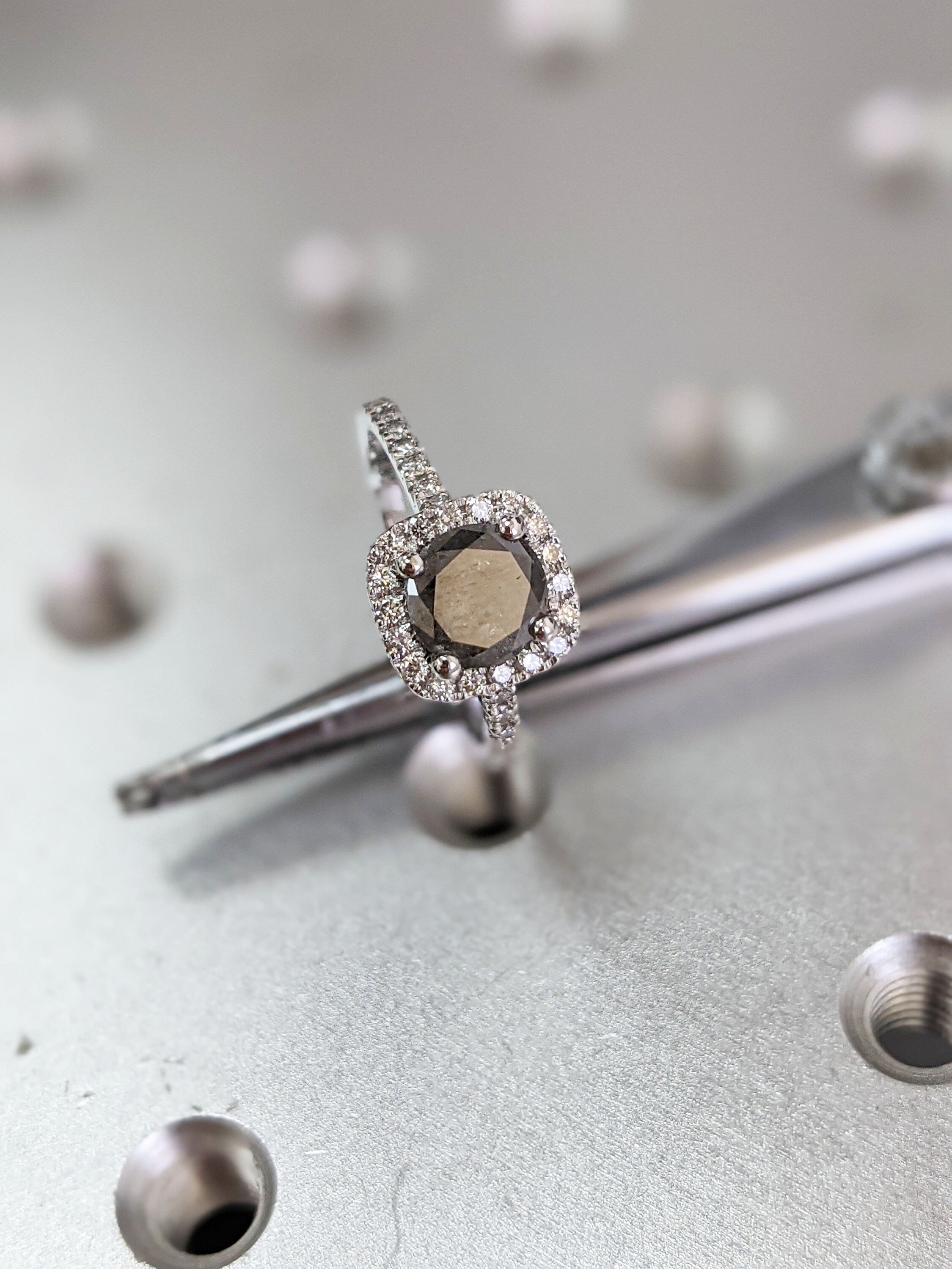 Raw Salt And Pepper Diamond Ring White Gold French Pave Salt And Pepper Diamond Halo Engagement Ring (1/3 Ct. Tw.)French Pave,Pave Halo,Nala