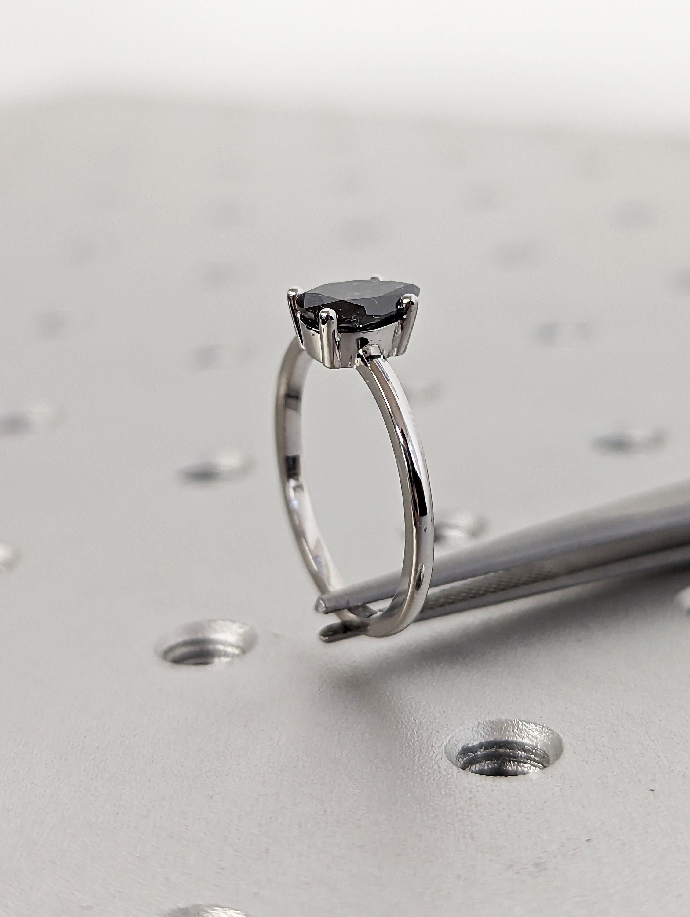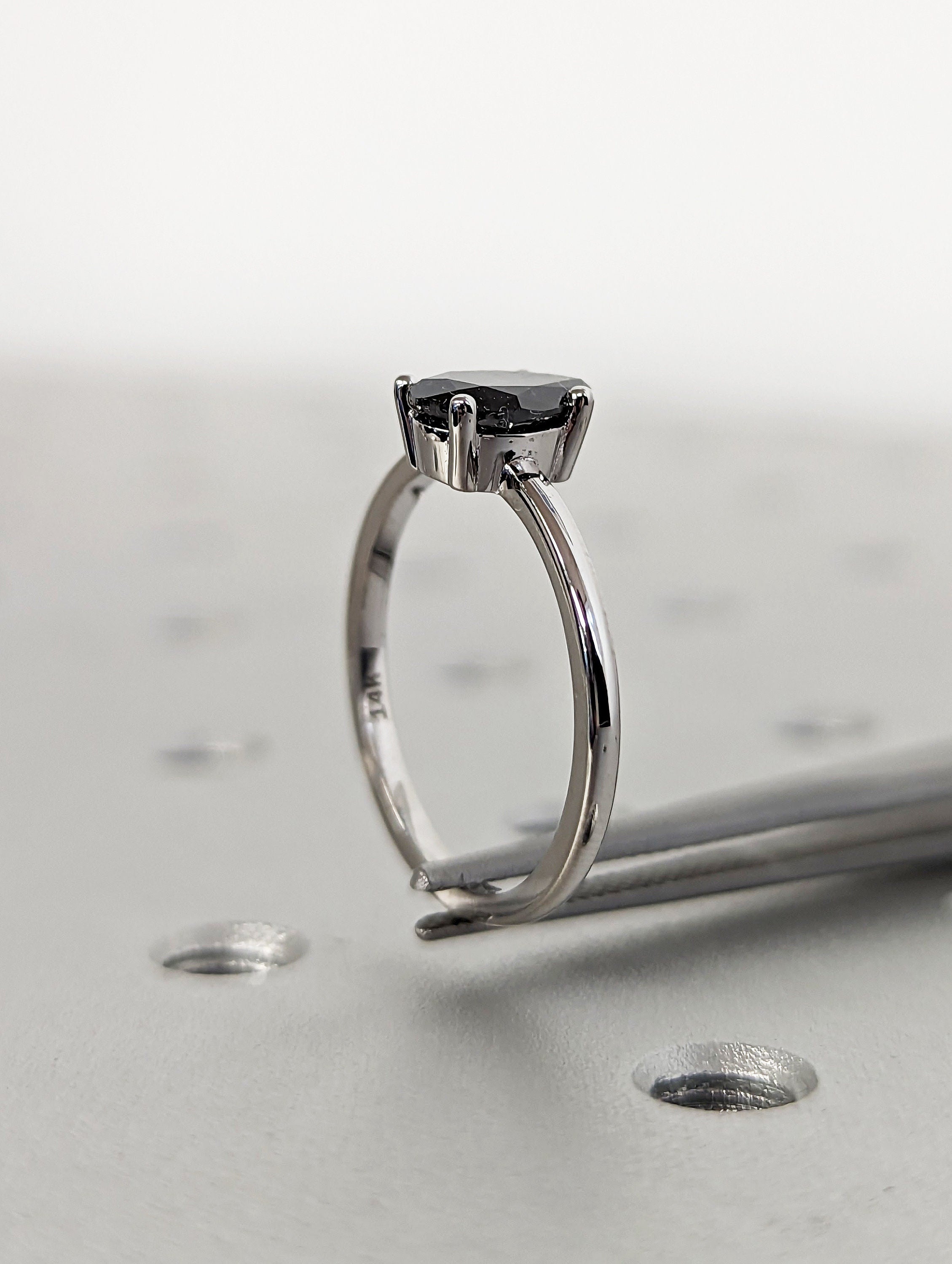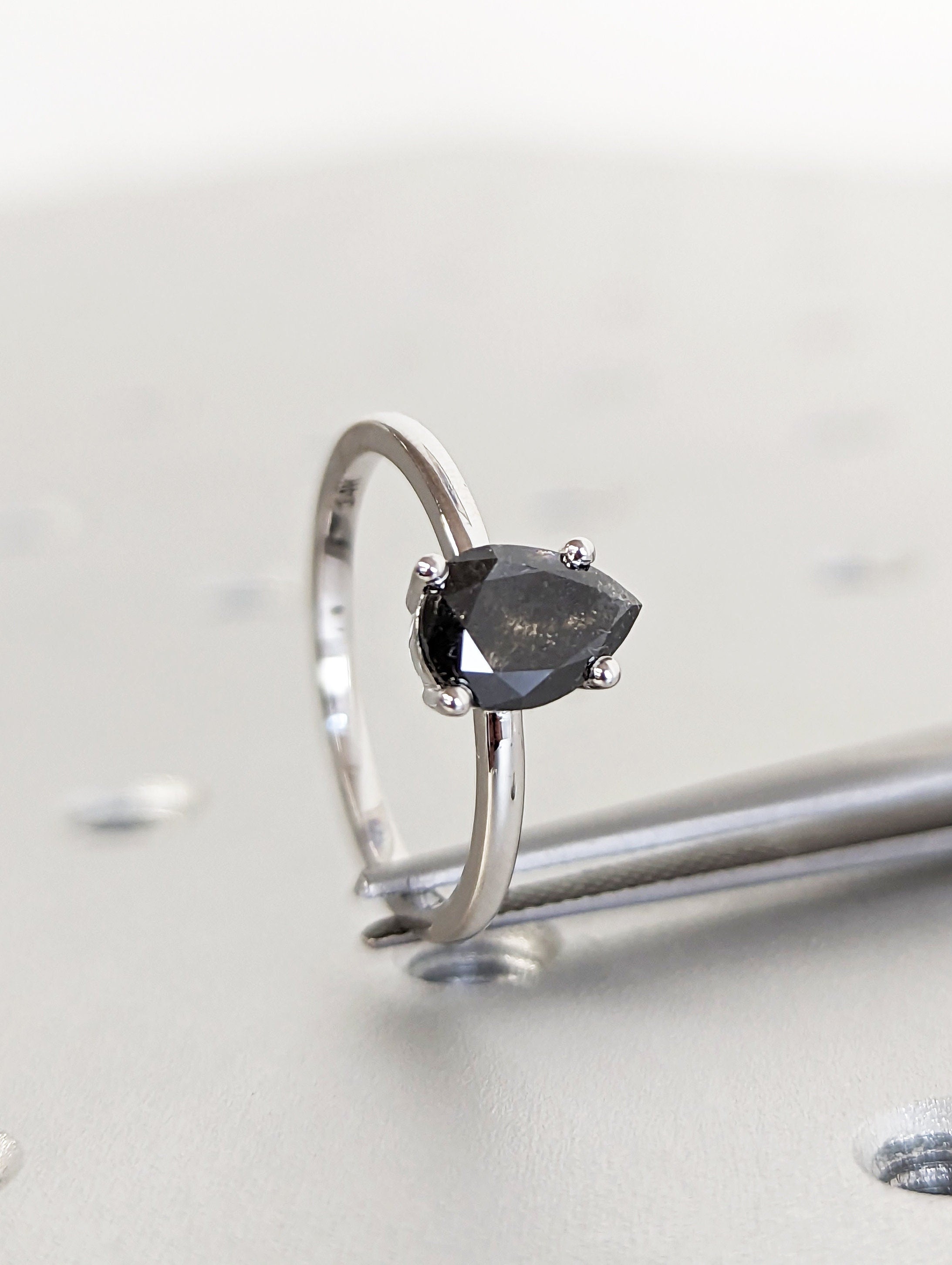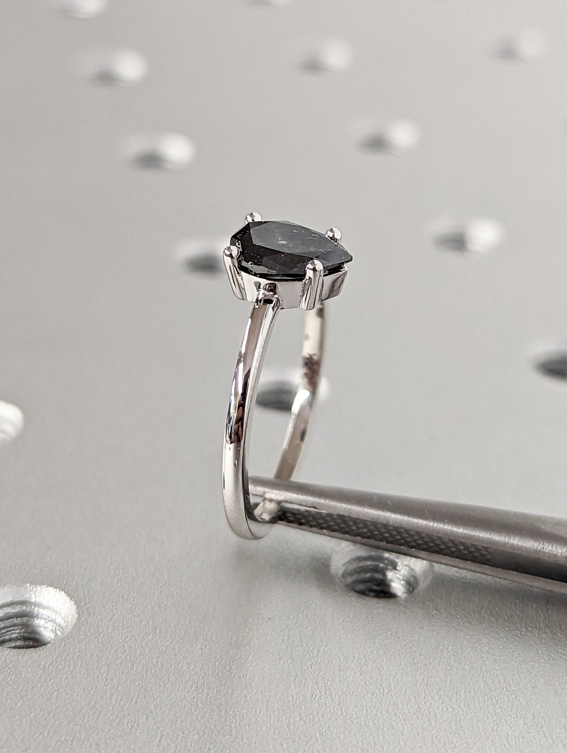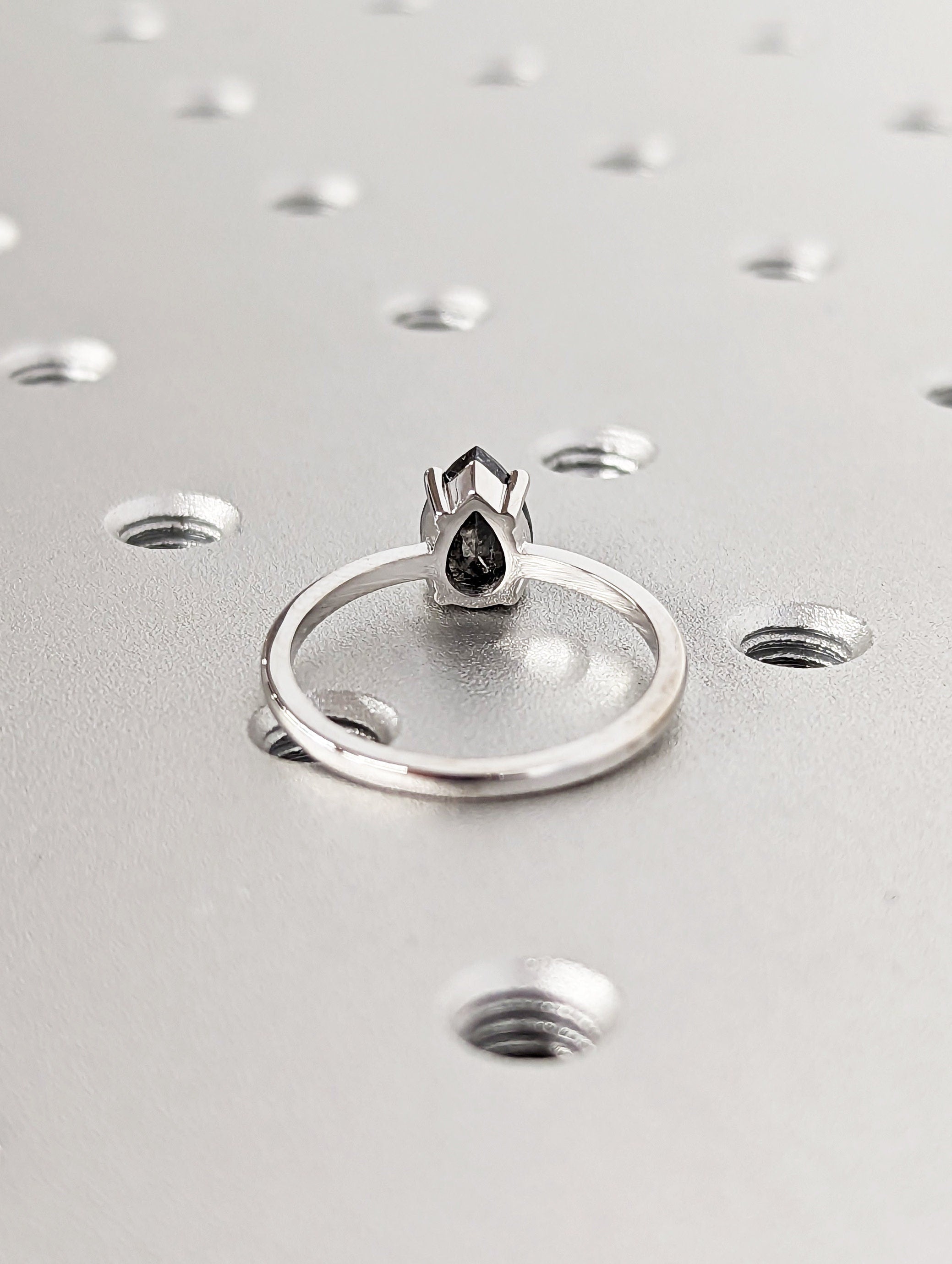 Raw Salt and Pepper Diamond, Rose Cut Pear Diamond Ring, Unique Engagement, Black, Gray Pear, 14k Yellow, Rose, White or Black Gold, Vintage