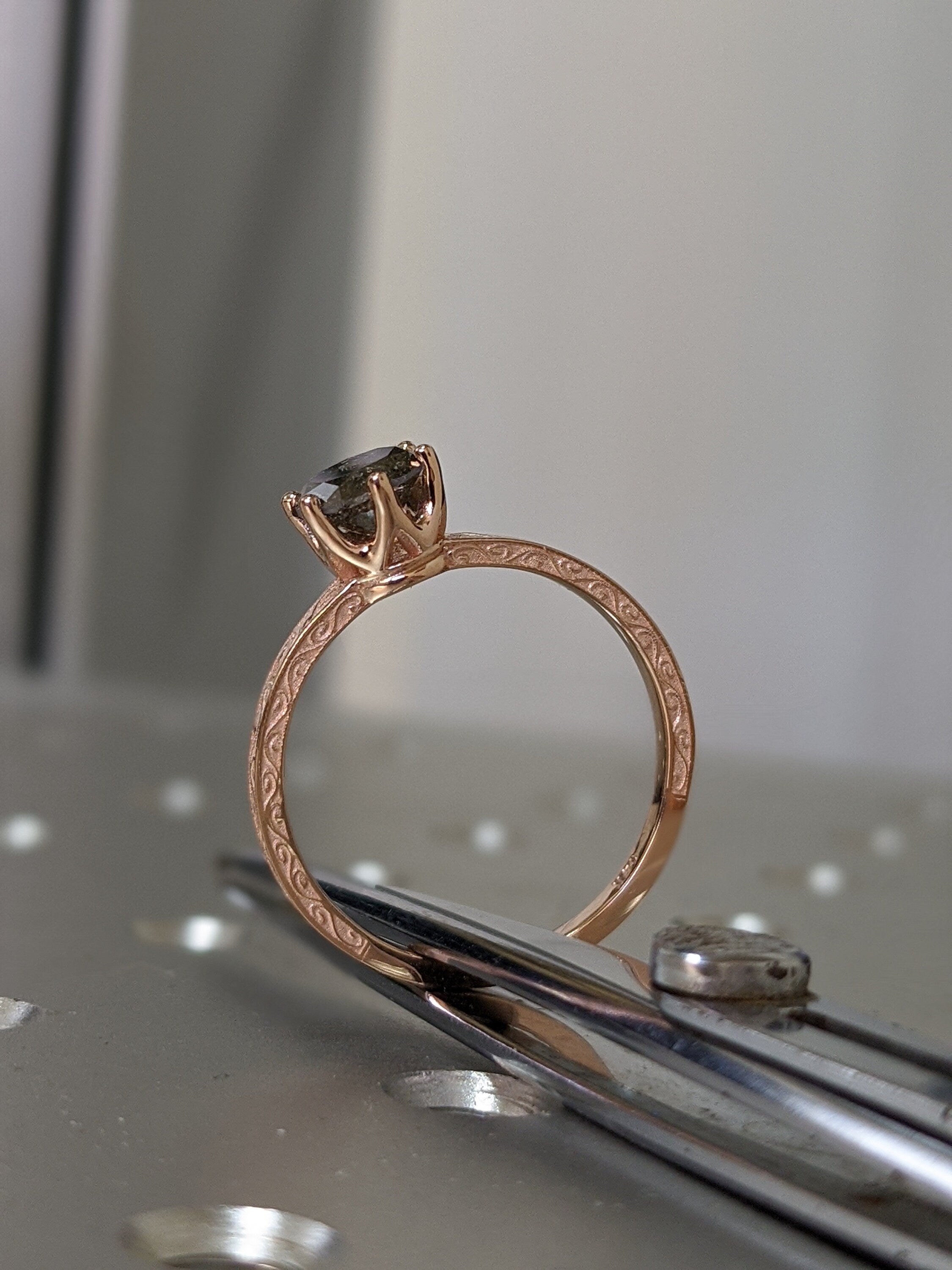 Rose Gold Raw Salt and Pepper Diamond /White /Yellow Gold Engagement Ring Art Deco 1920's Inspired Thin Petite Band 14k Unique Ring for Her